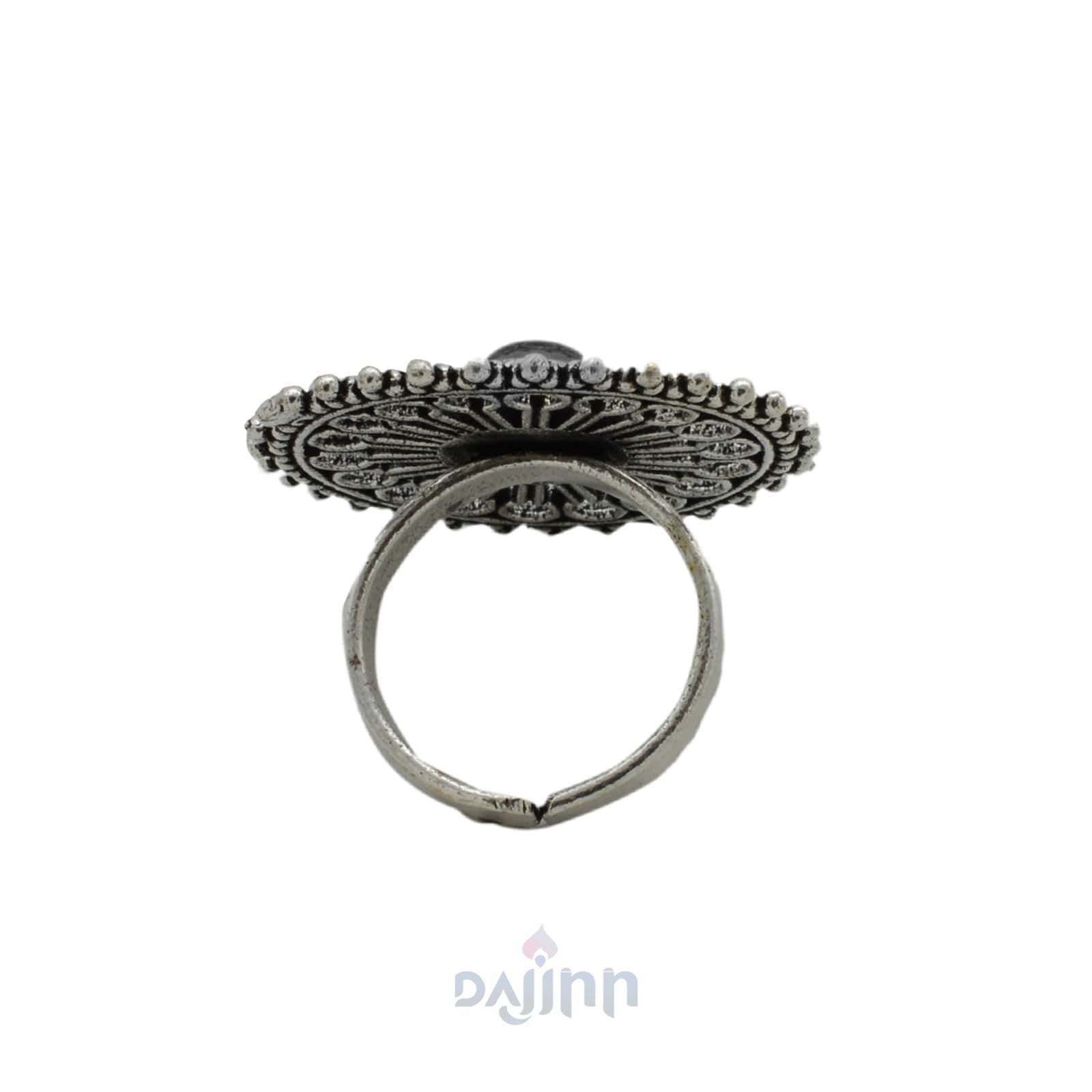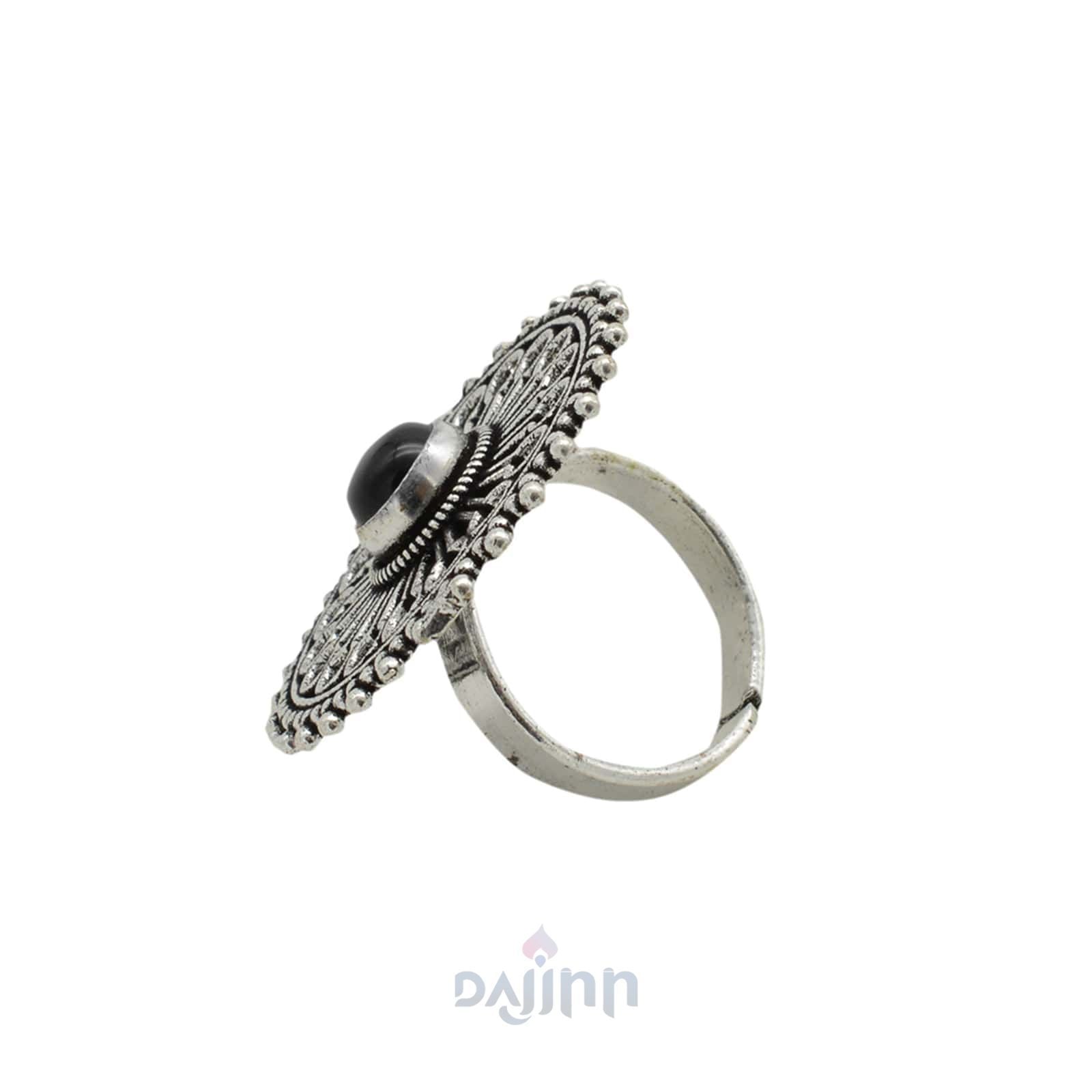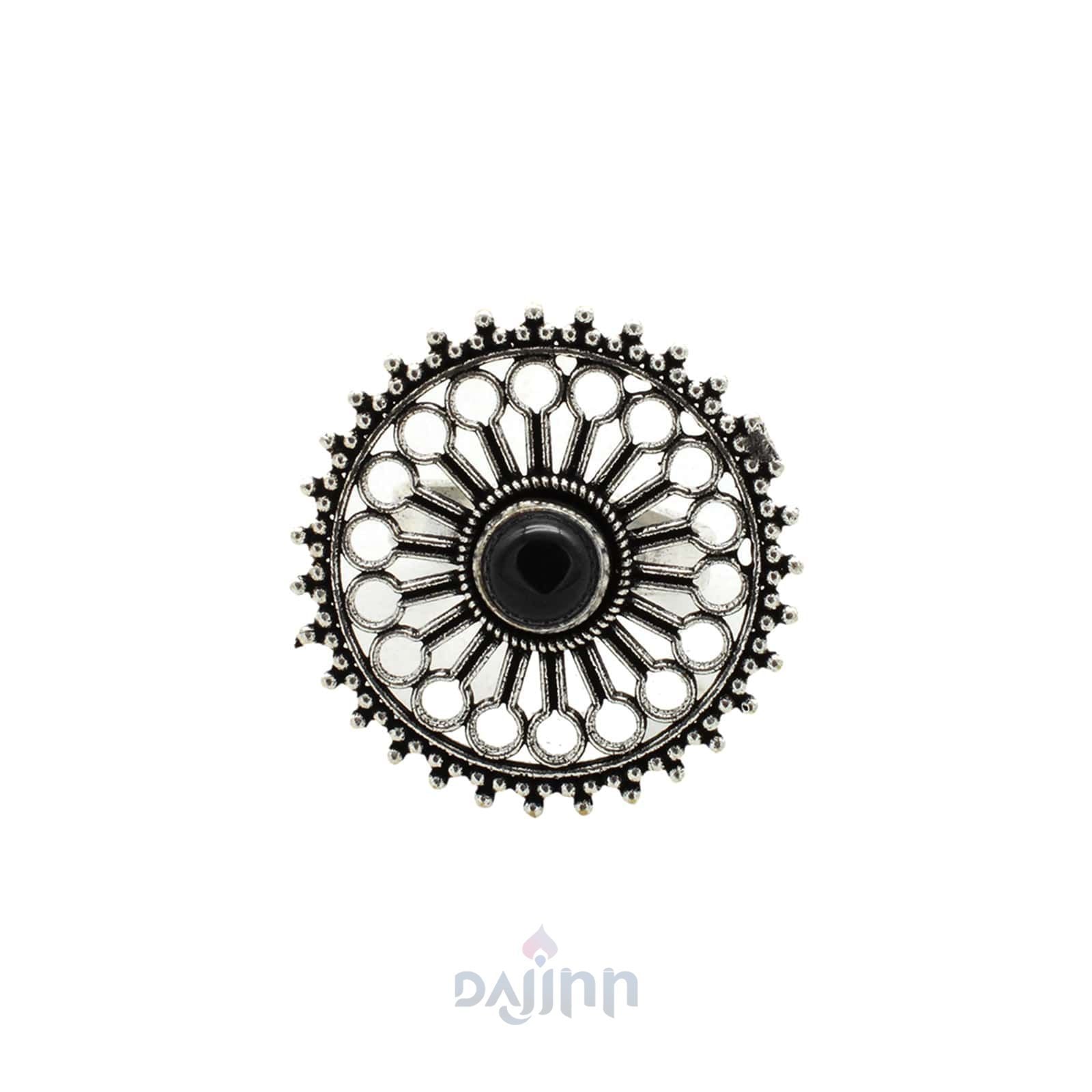 Aruna Black Silver Oxidized Ring is a simple ring that adds a touch of pretty with its floral motif that is imbibed with black stone. The ring is just the right size when you are looking for something elegant, polished, and pretty. Works wonderfully as an accessory that does not take over your outfit – sometimes that is just what you need.