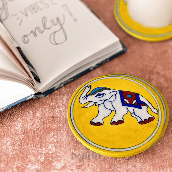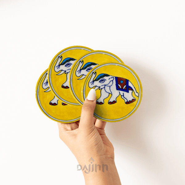 Includes: 6 Blue Pottery Coasters - 2 Light Blue, 2 Dark Blue, 2 Yellow