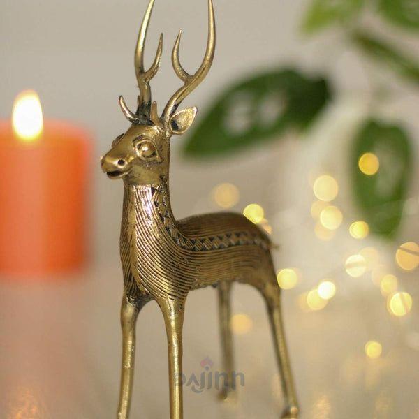 Handcrafted with love and precision by skilled artisans, this brass table decor features an enchanting pair of deer in both standing and sitting positions. The intricate detailing showcases the rich heritage of Dhokra art, adding a touch of rustic charm to any space.