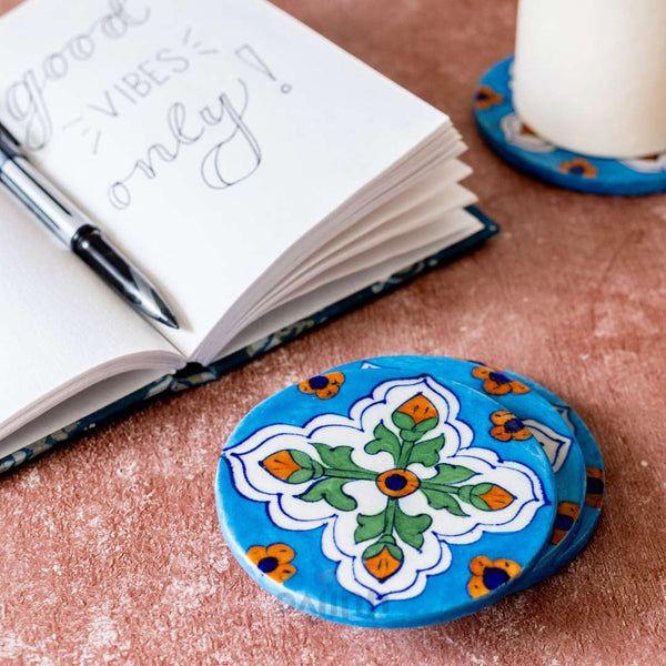 Includes: 4 Blue Pottery Coasters
