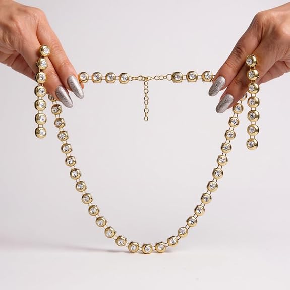 - Elegant Minimalist Necklace – Sleek gold-tone chain lined with glittering studs for timeless charm.