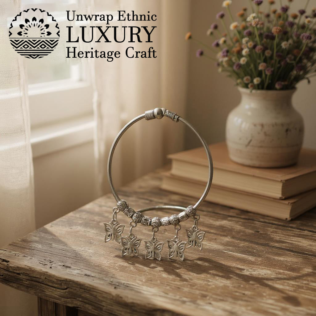 Dajinn Aarzoo Collection Oxidized Brass Elegant Finish Bracelet for Women & Girls | Traditional Ethnic Indian Charm Kada with Danglers | Adjustable Antique Style Jewellery (Butterfly Dreams Kada)