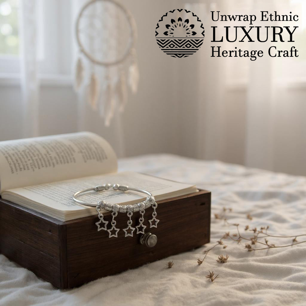 - 🪔 Traditional Design – Features handcrafted charm danglers (star, butterfly, flower, teardrop designs)