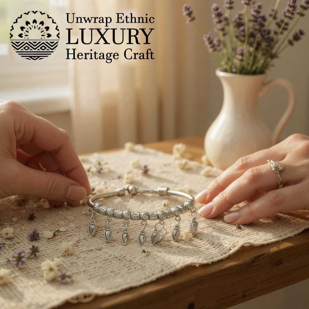 Whether you are gifting it 🎁 or wearing it yourself, this bracelet makes a statement of grace and heritage. Handcrafted with premium oxidized brass, finished in antique silver, it’s a must-have addition to your jewellery collection.