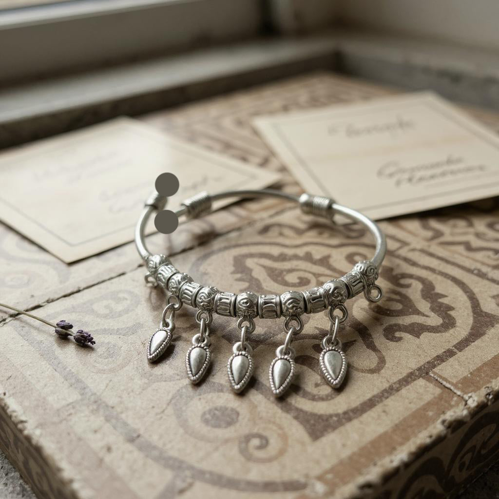 Dajinn Aarzoo Collection Oxidized Brass Elegant Finish Bracelet for Women & Girls | Traditional Ethnic Indian Charm Kada with Danglers | Adjustable Antique Style Jewellery (Teardrop Elegance Kada)