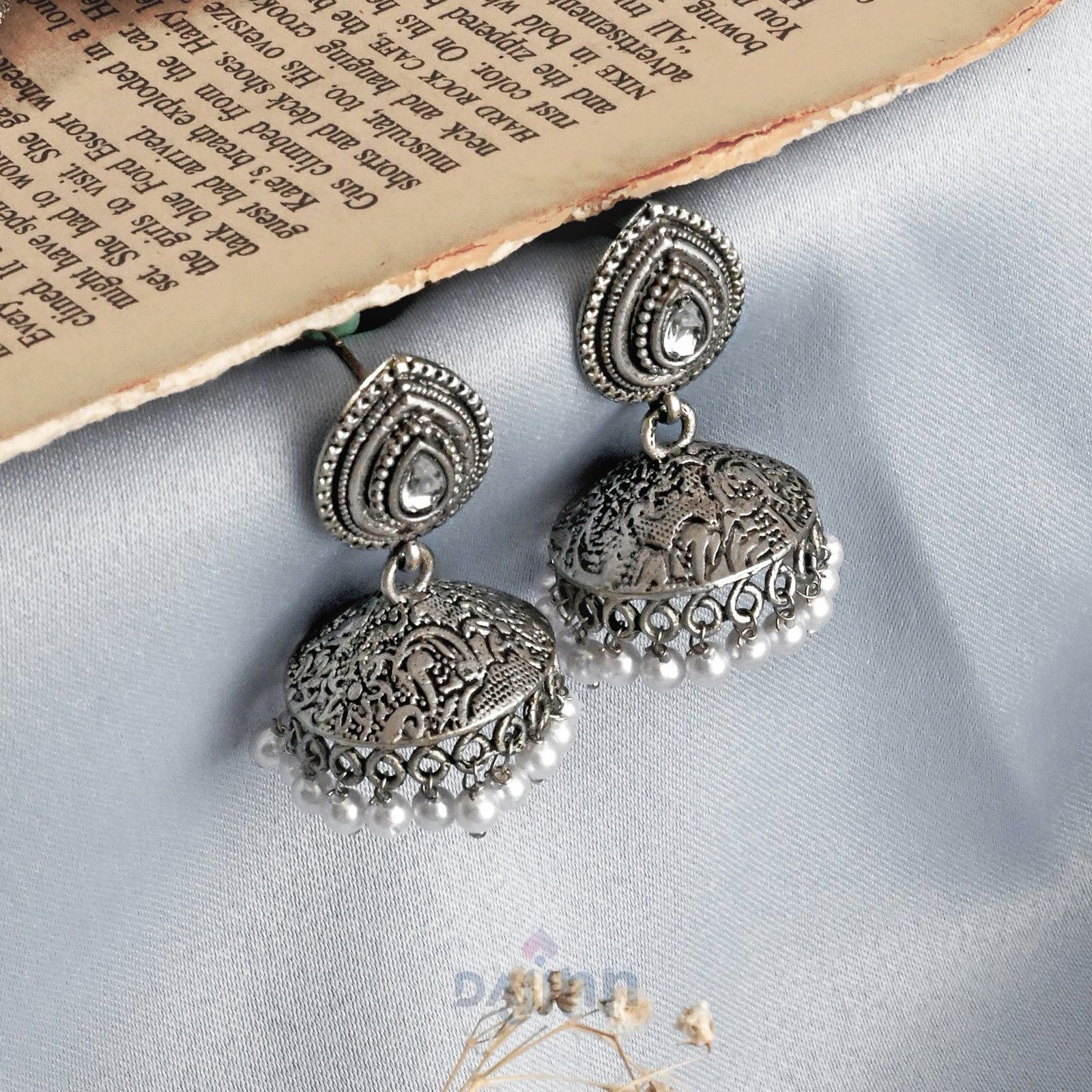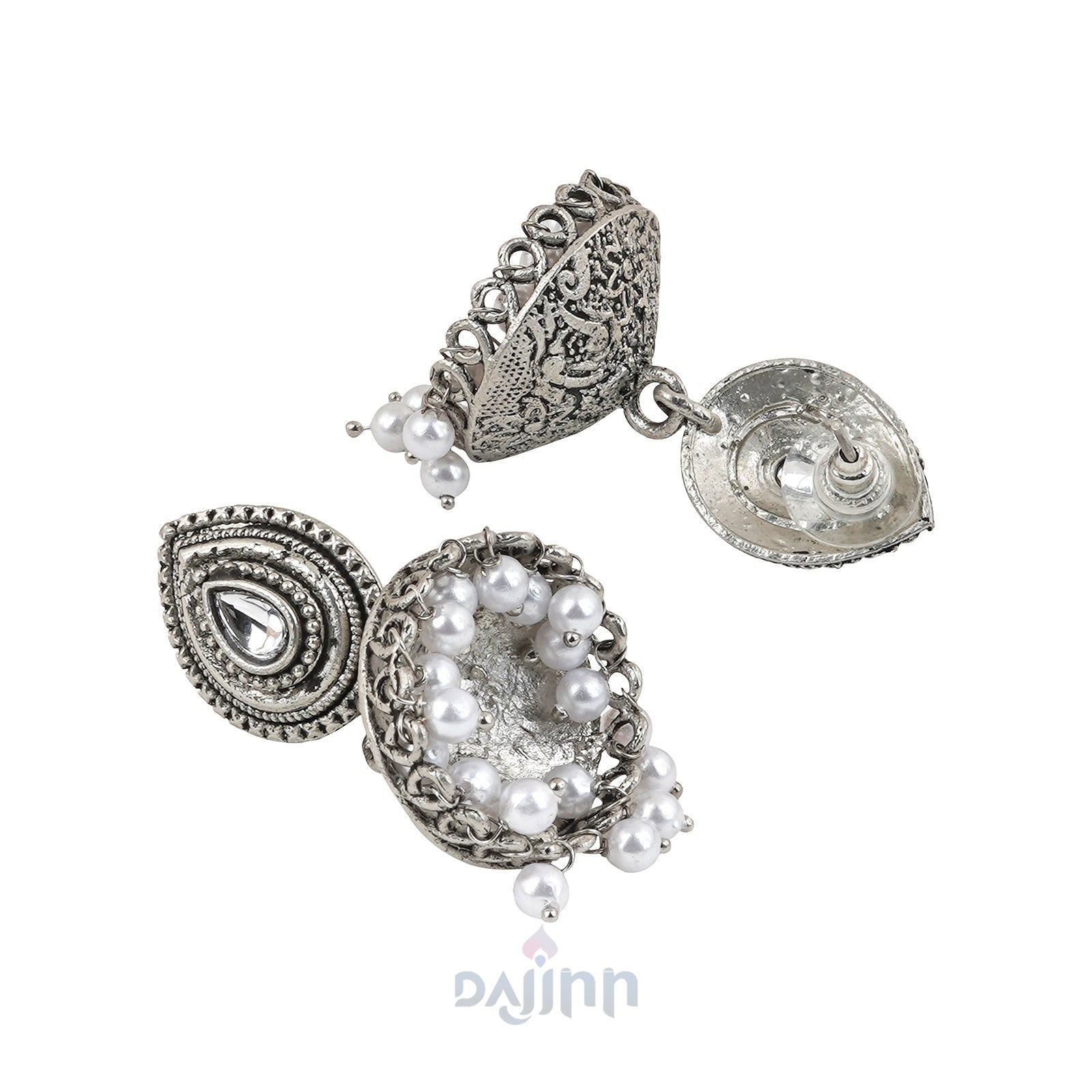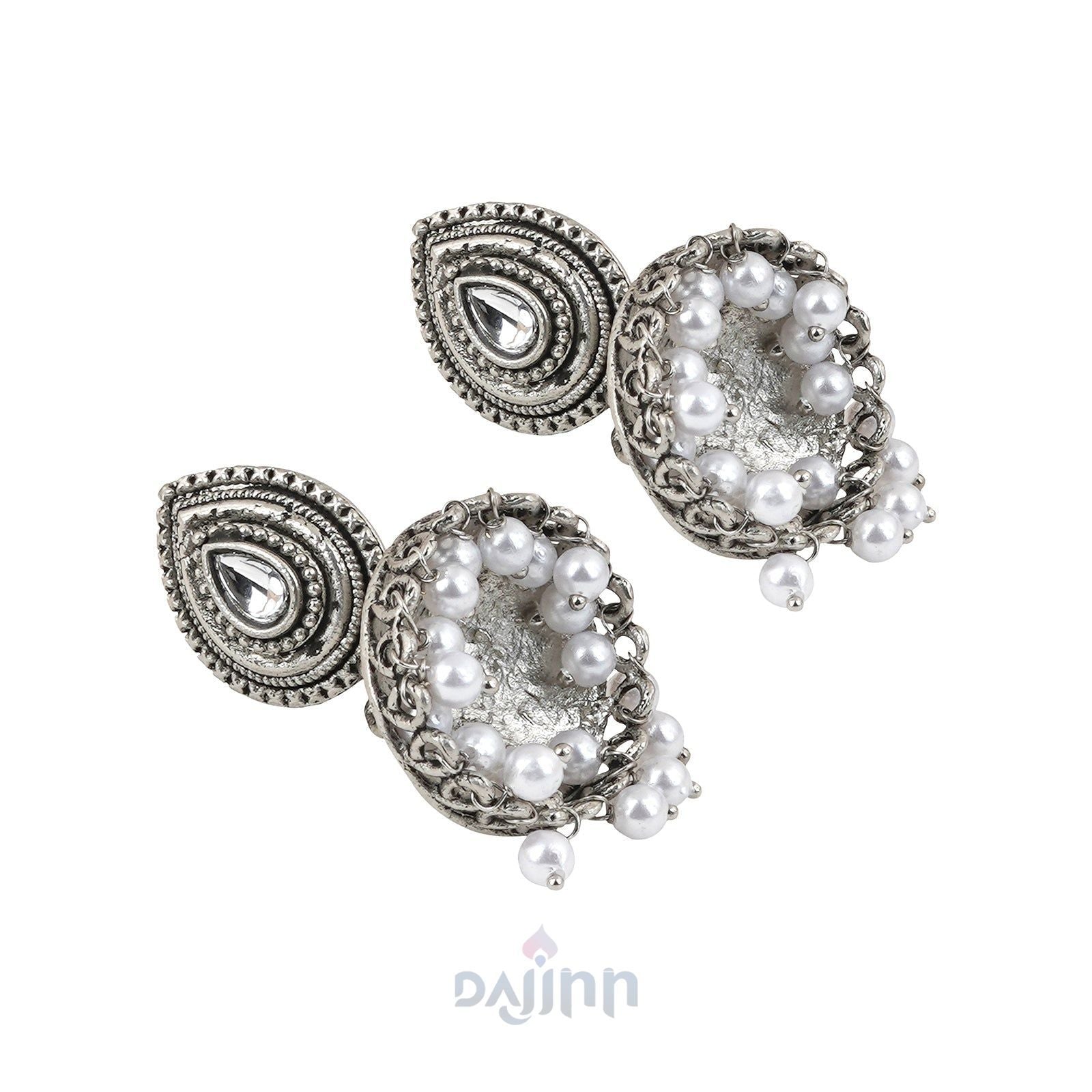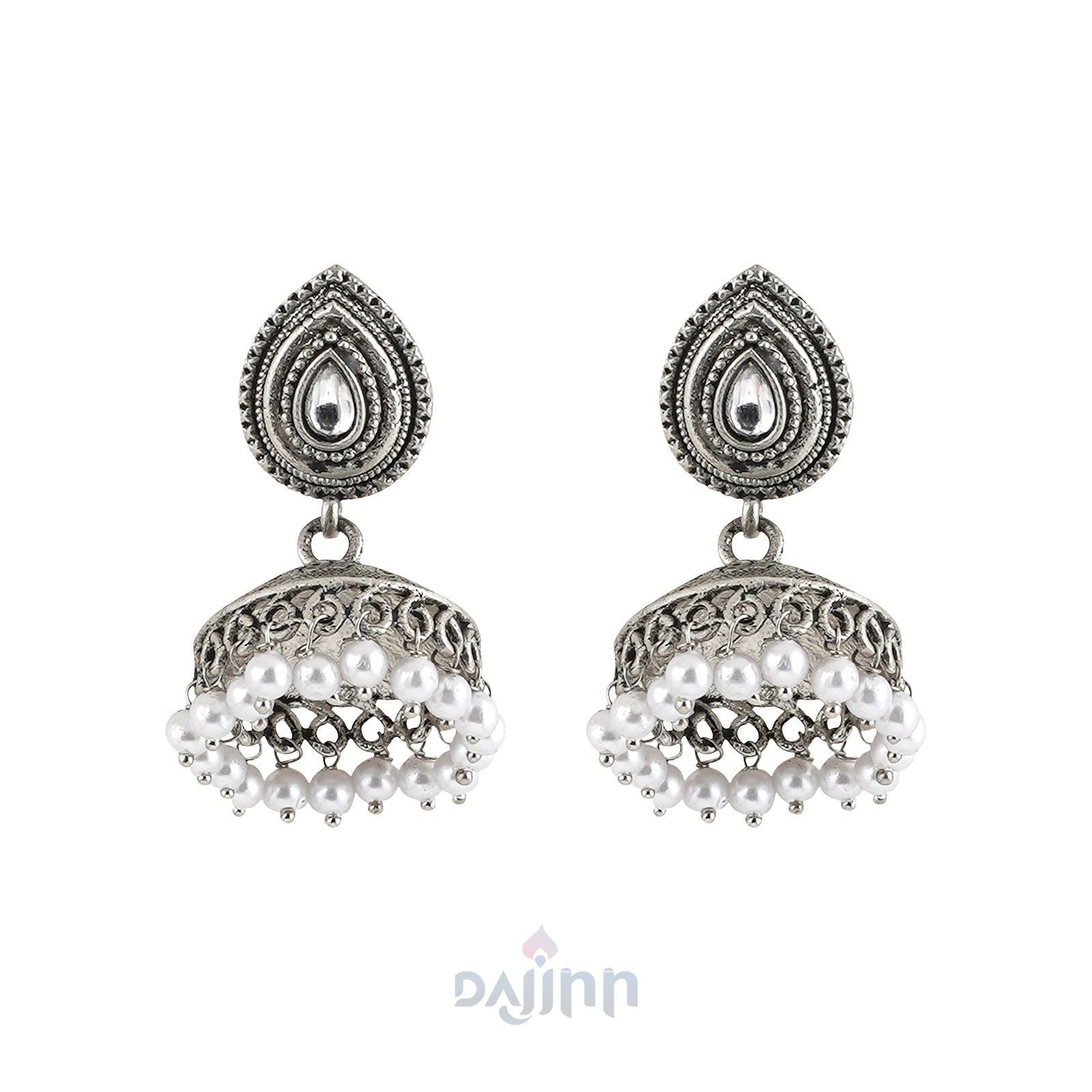 The Eesha white and magenta silver oxidised earrings promises to brighten your face instantly. The earrings include delicate floral designs with colours that give it vibrant personality. They give you an additional excuse to dress up this festive season.