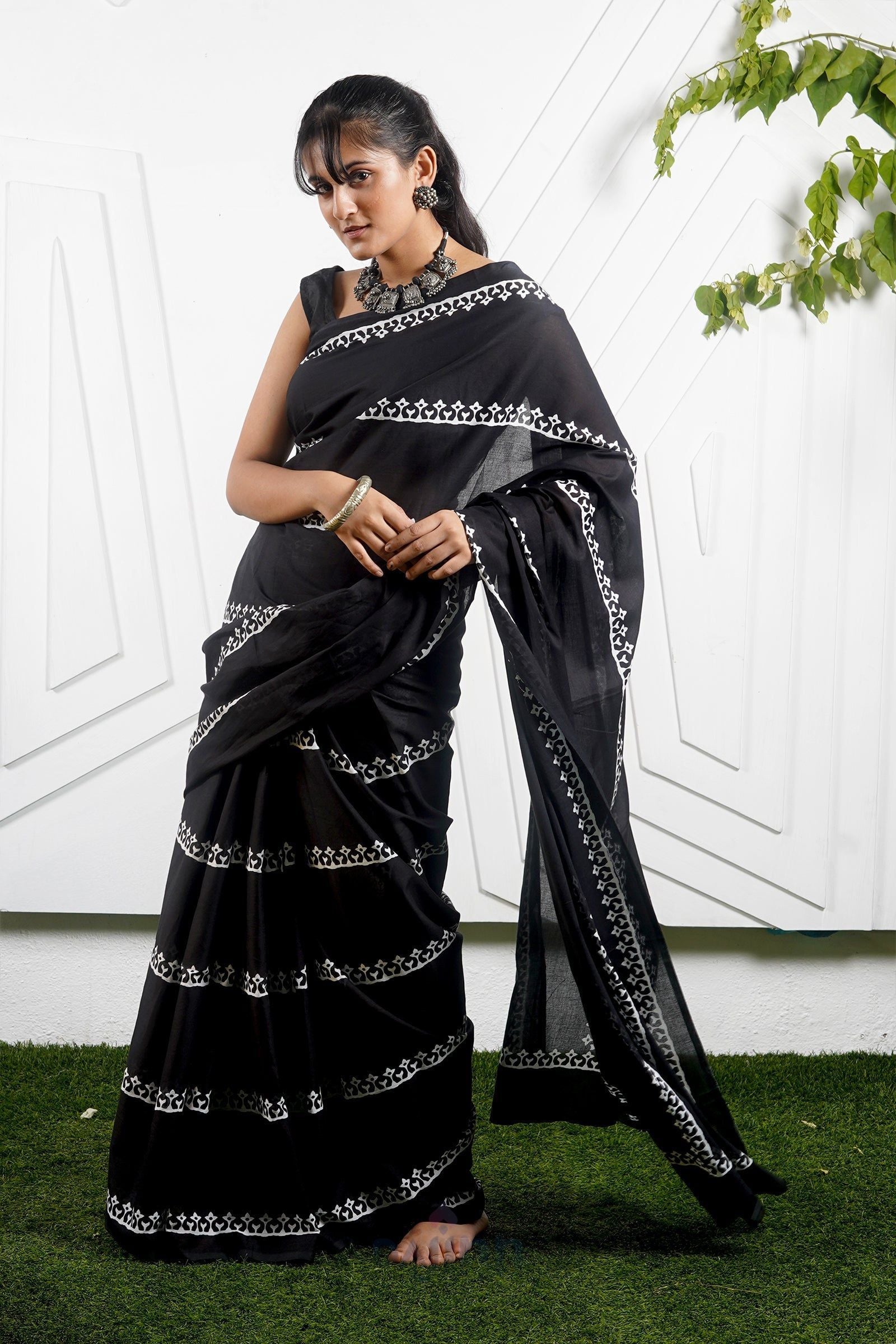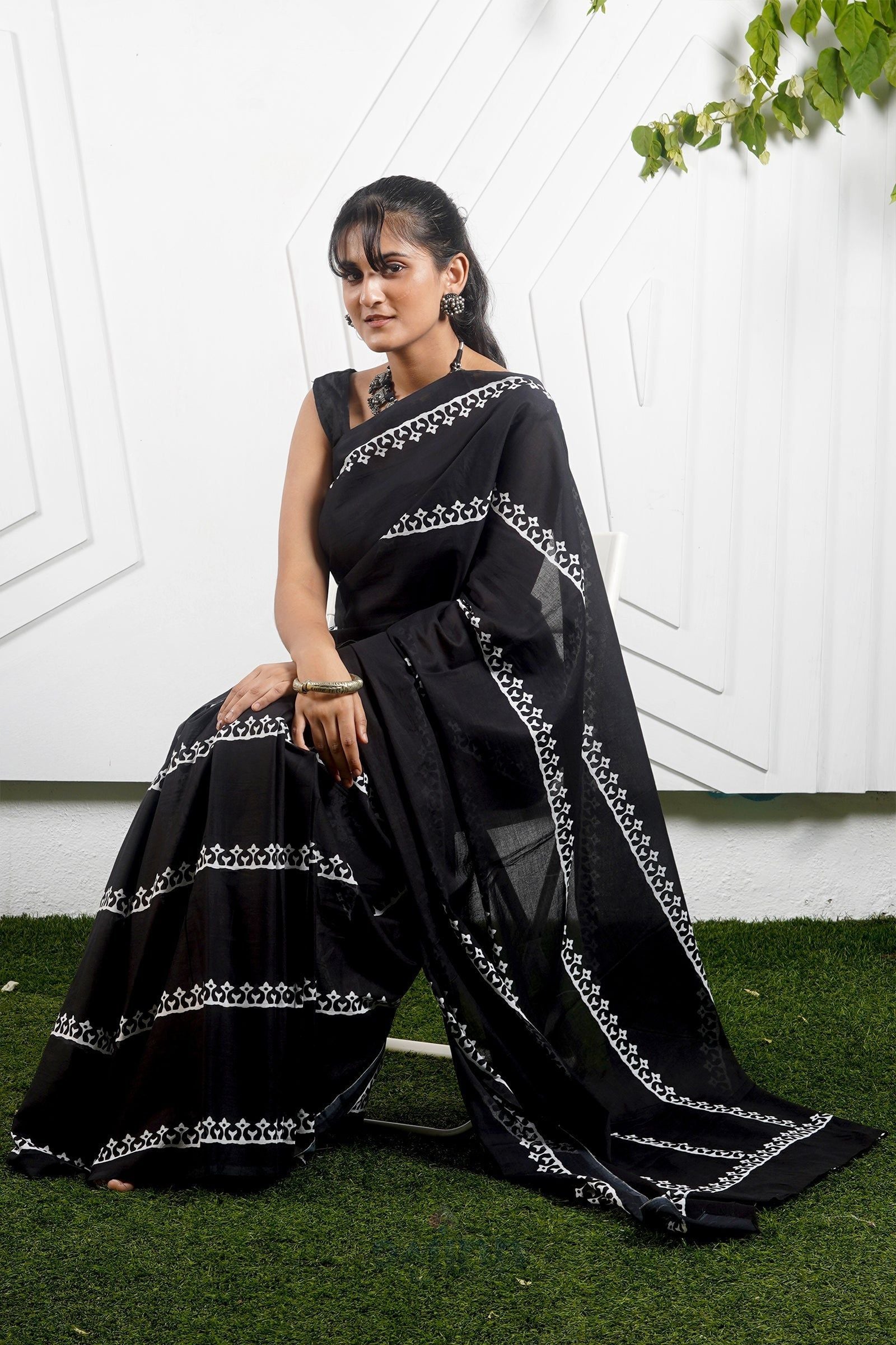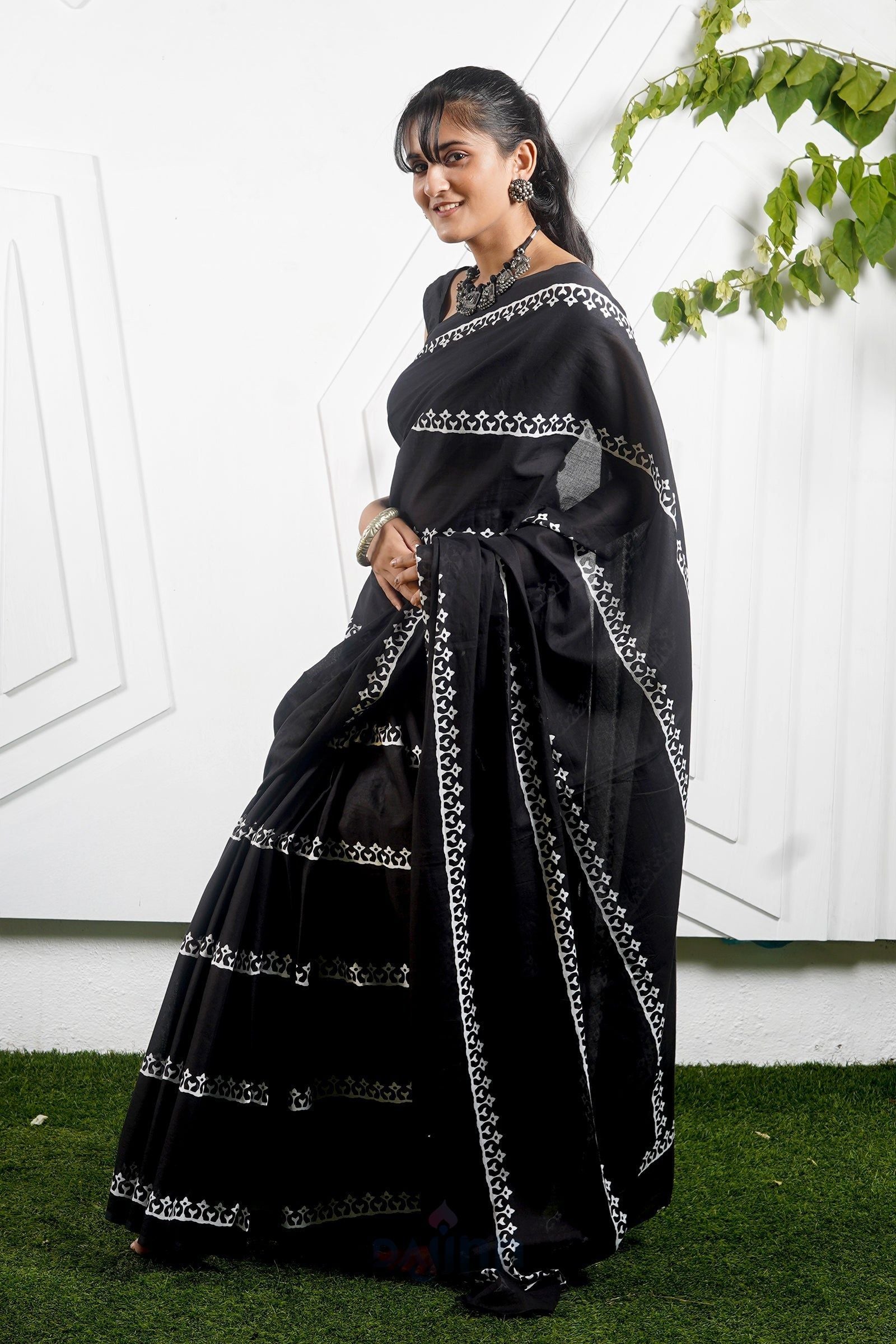 AYSR Boutique Chameli Black Print Mulmul Cotton Saree