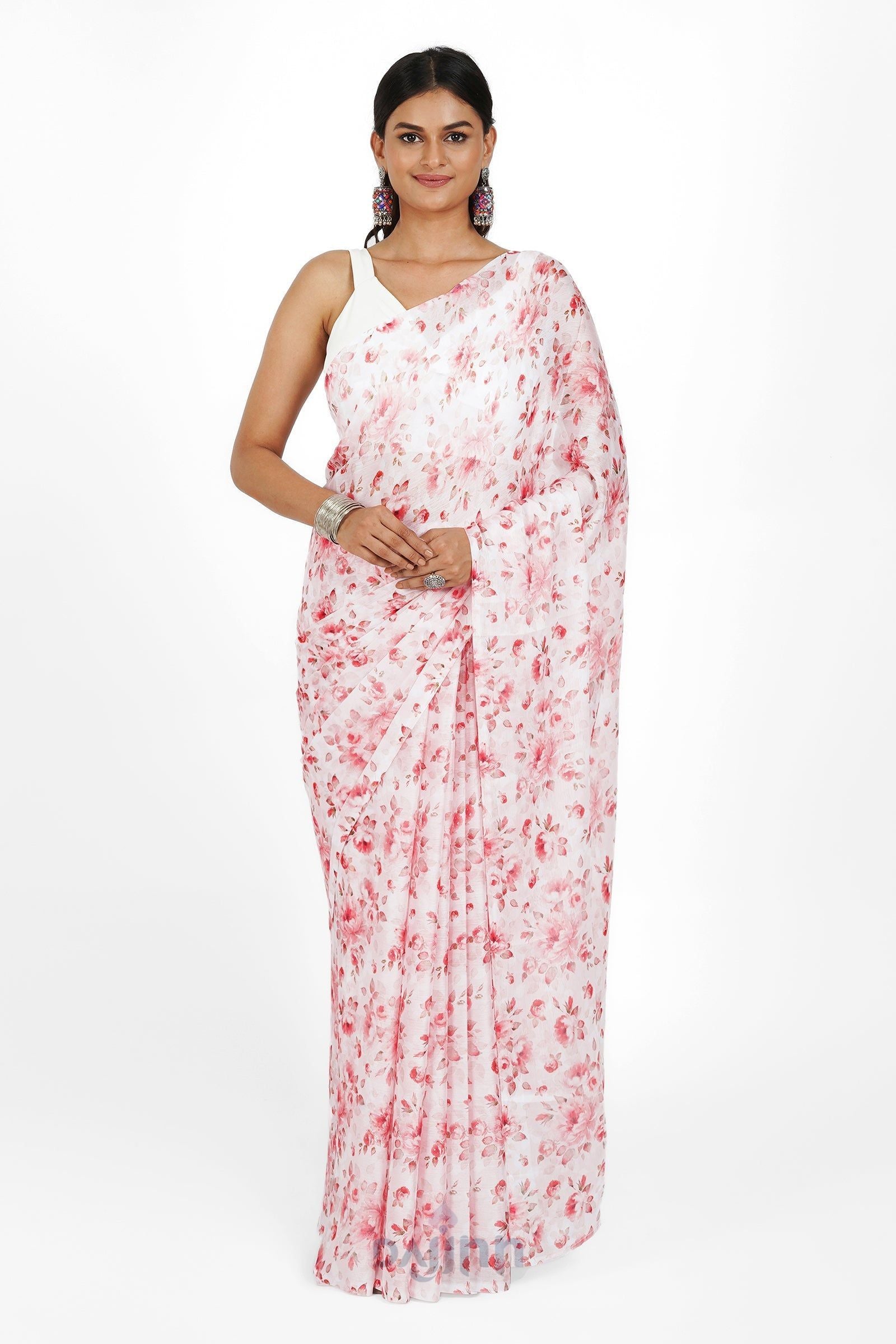 AYSR Boutique Crimson Petal Digital Print Chiffon Saree