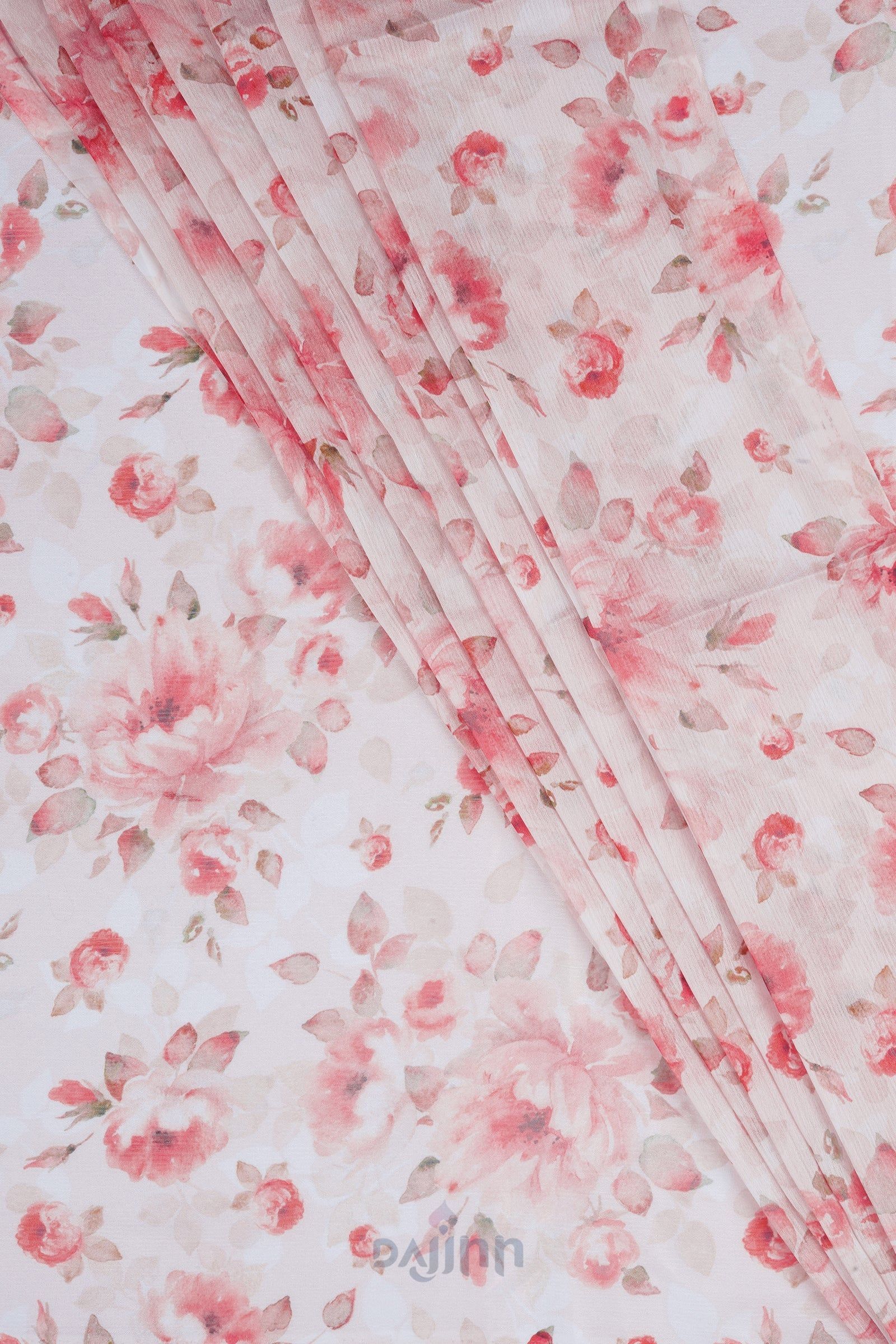 Embrace the boldness of the season with the Crimson Petal chiffon saree. This captivating digital print features a cascade of crimson petals, making a statement wherever you go. Perfect for those who love to stand out and celebrate with a touch of fiery elegance.