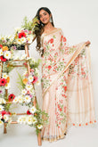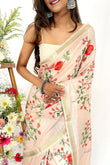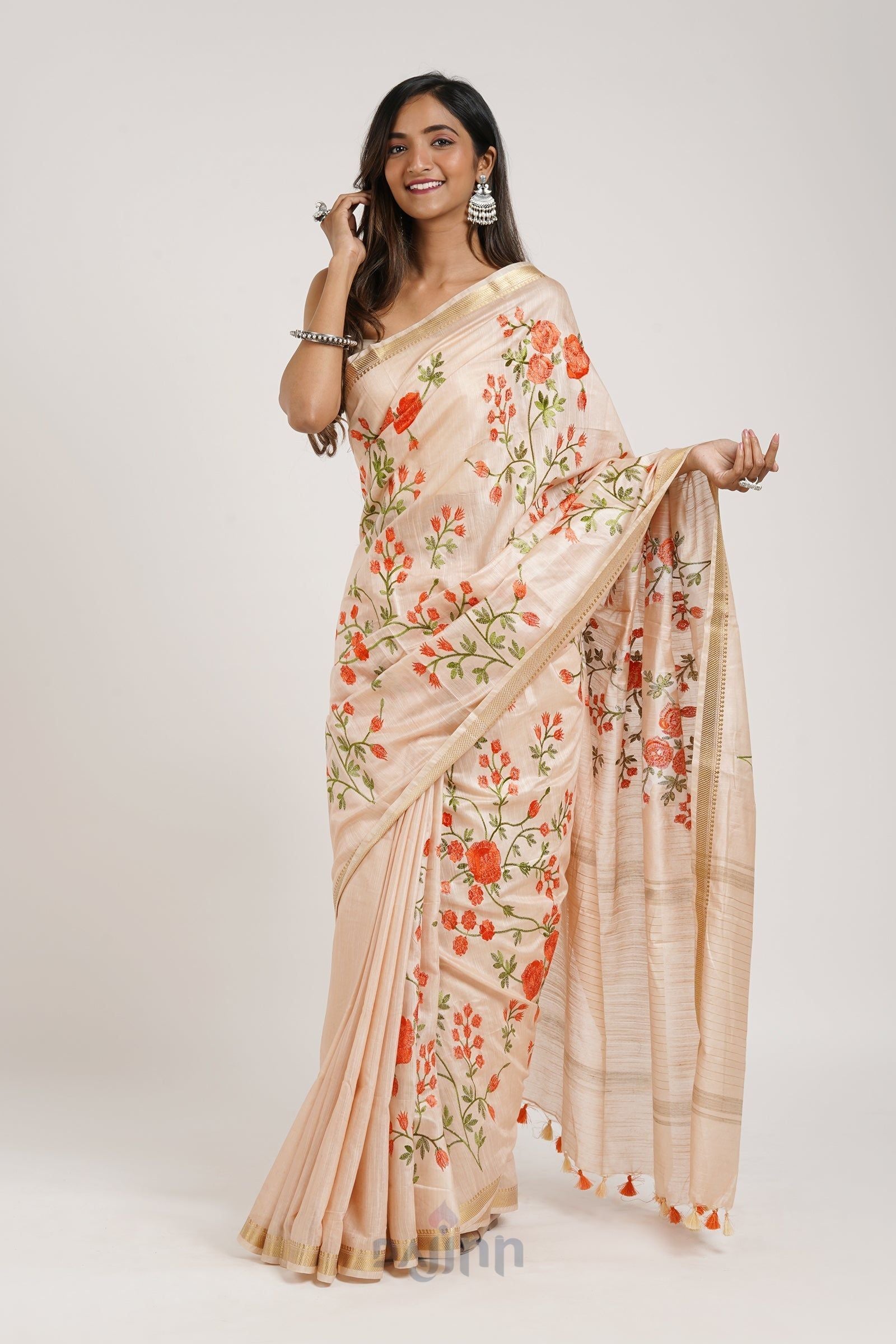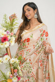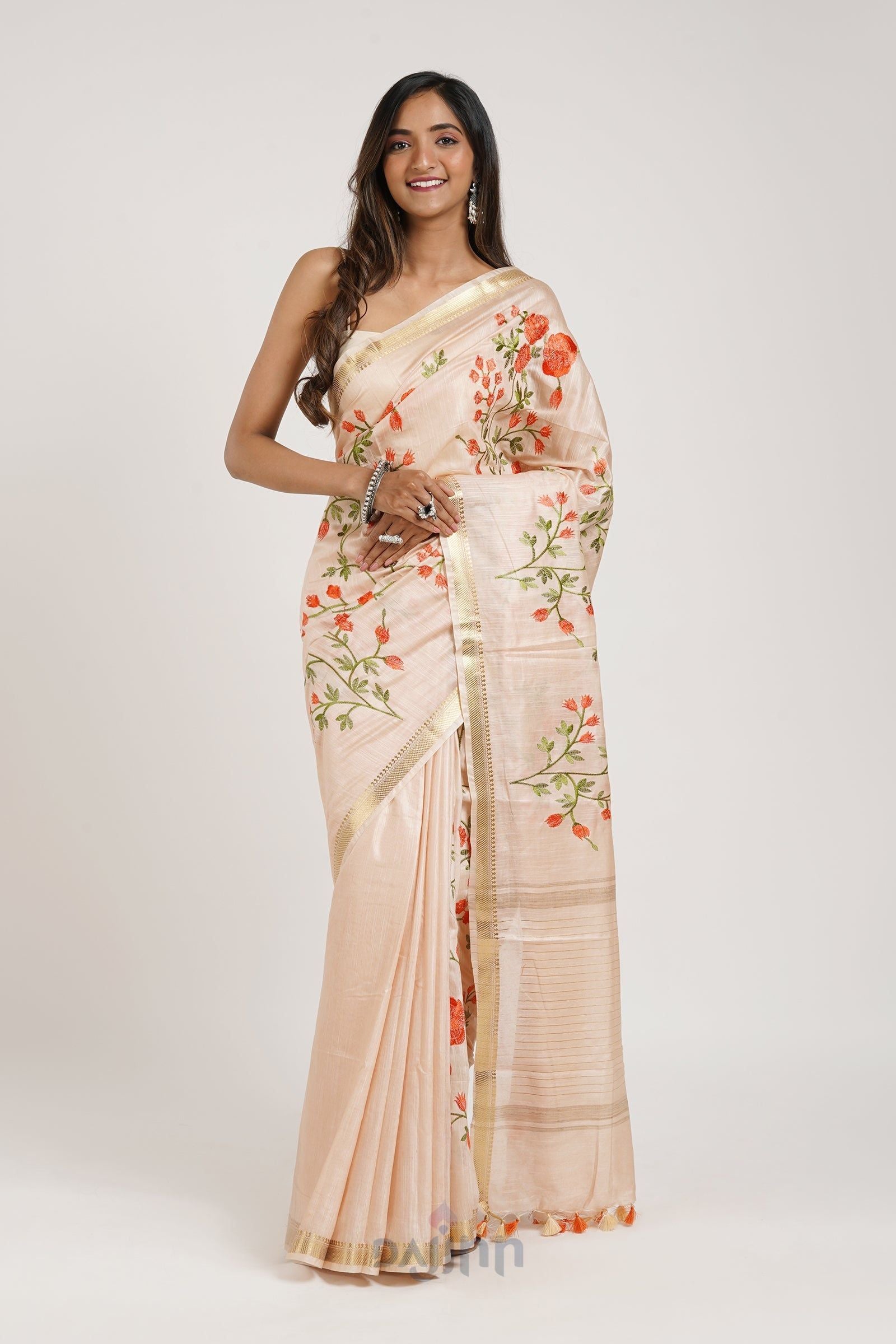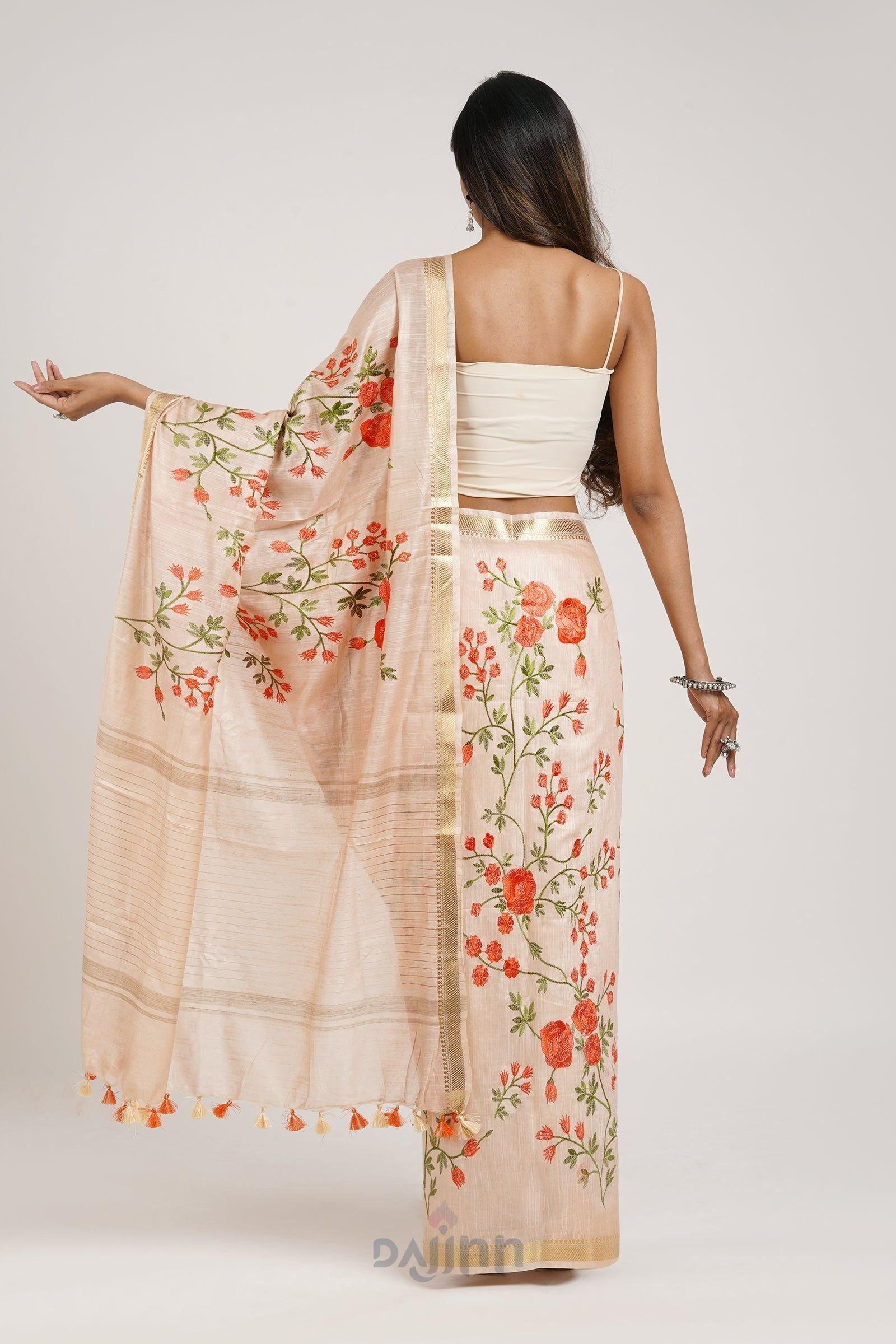 AYSR Boutique Gulrang Cream and Pink Silk Linen Saree with Blouse Piece