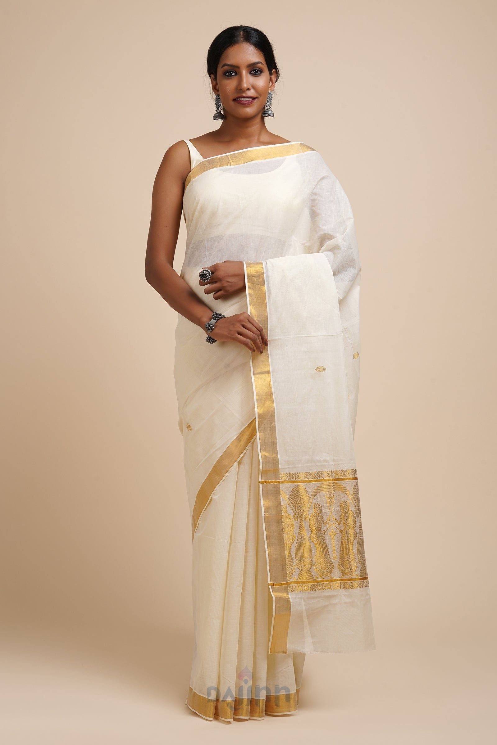 AYSR Boutique Kalleshwari White and Gold Kerala Cotton Kasavu Saree