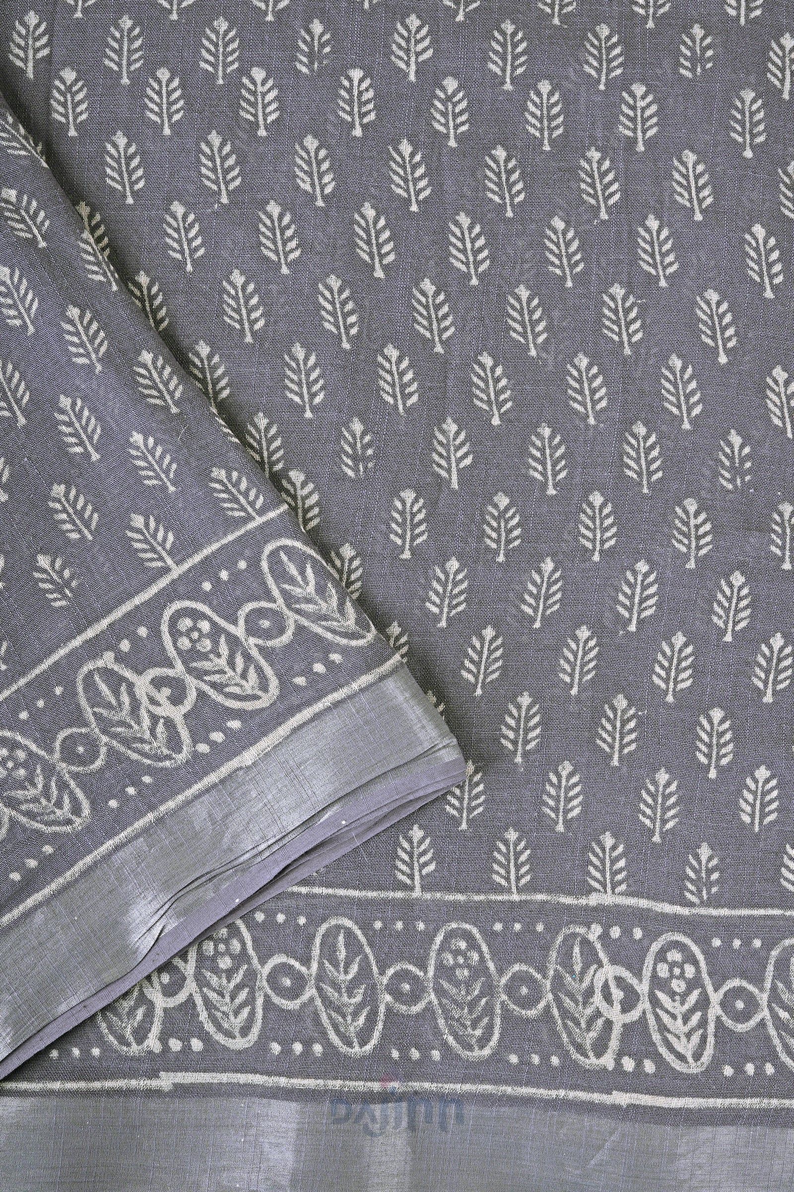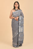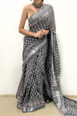 AYSR Boutique Kaynat Grey Linen Saree with Blouse Piece