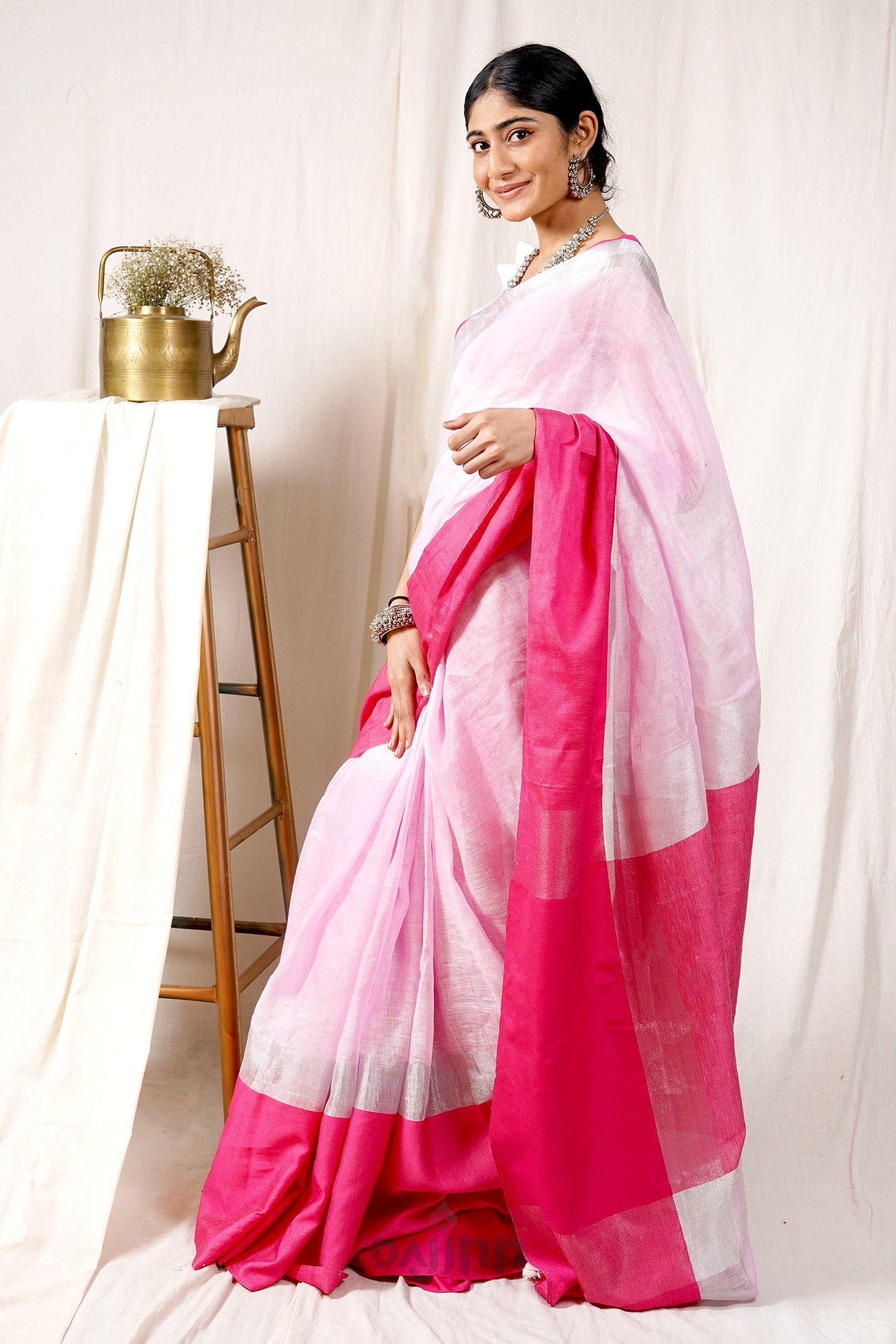 | PRODUCT 1 | AYSR Boutique Pink Champagne Linen Mahapar Saree |