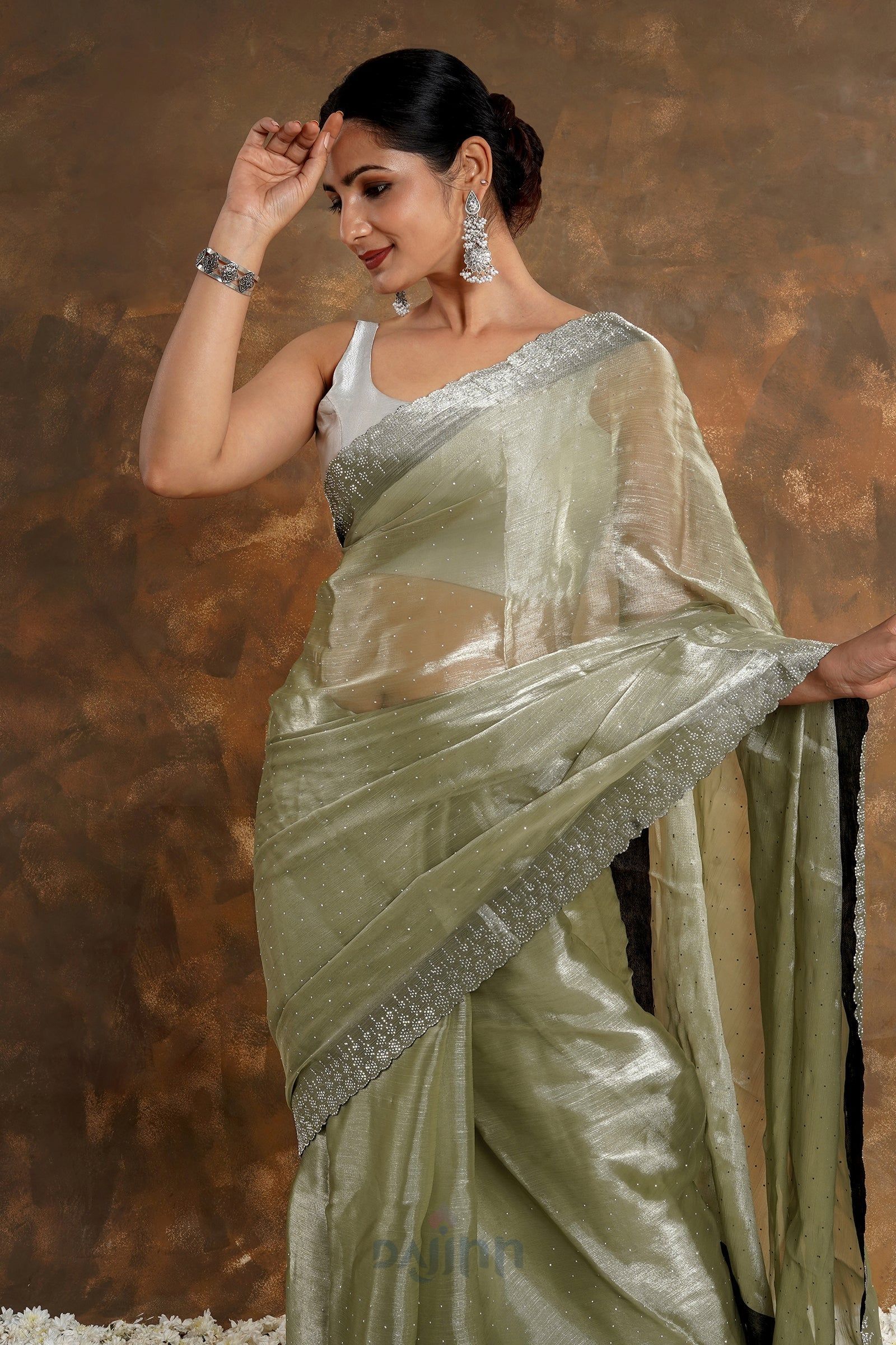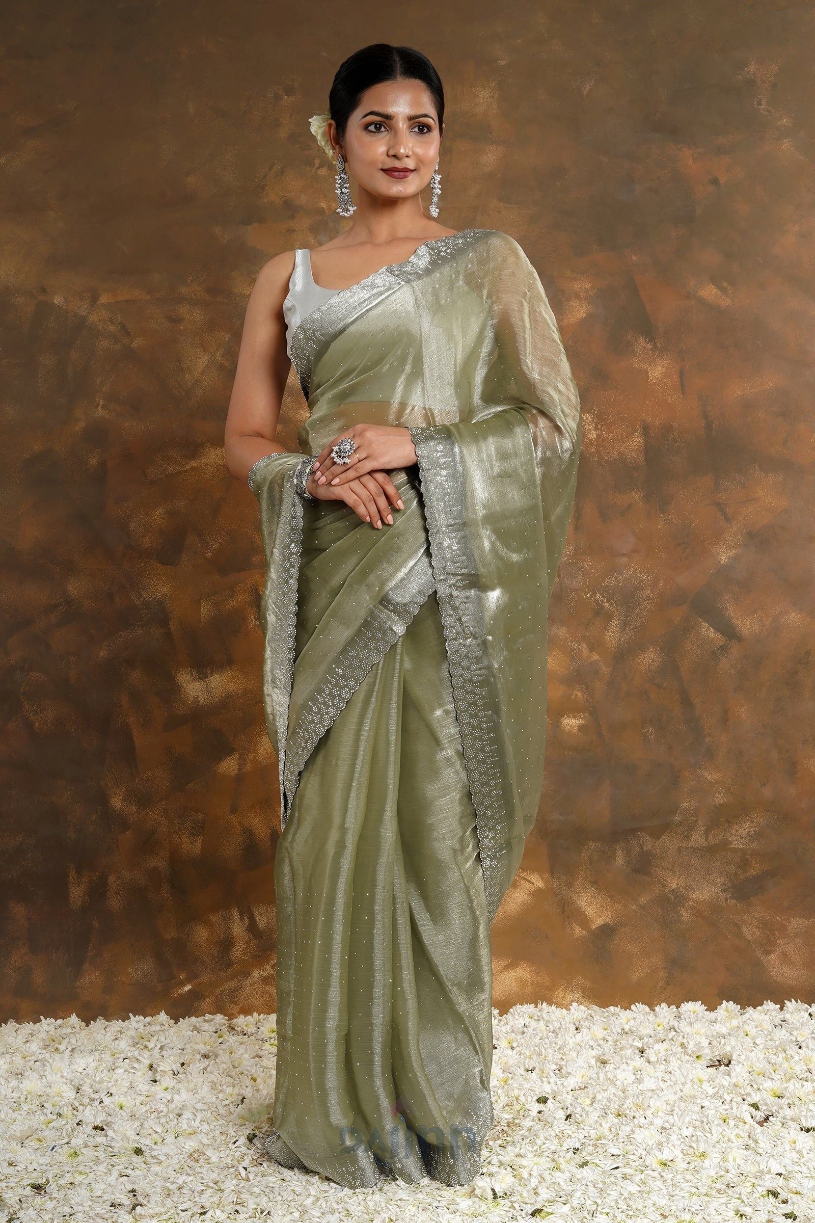AYSR Boutique Olive Oasis Tissue Saree