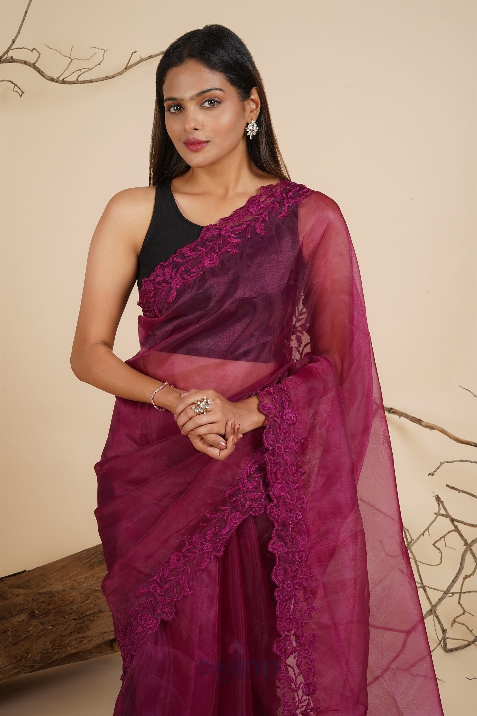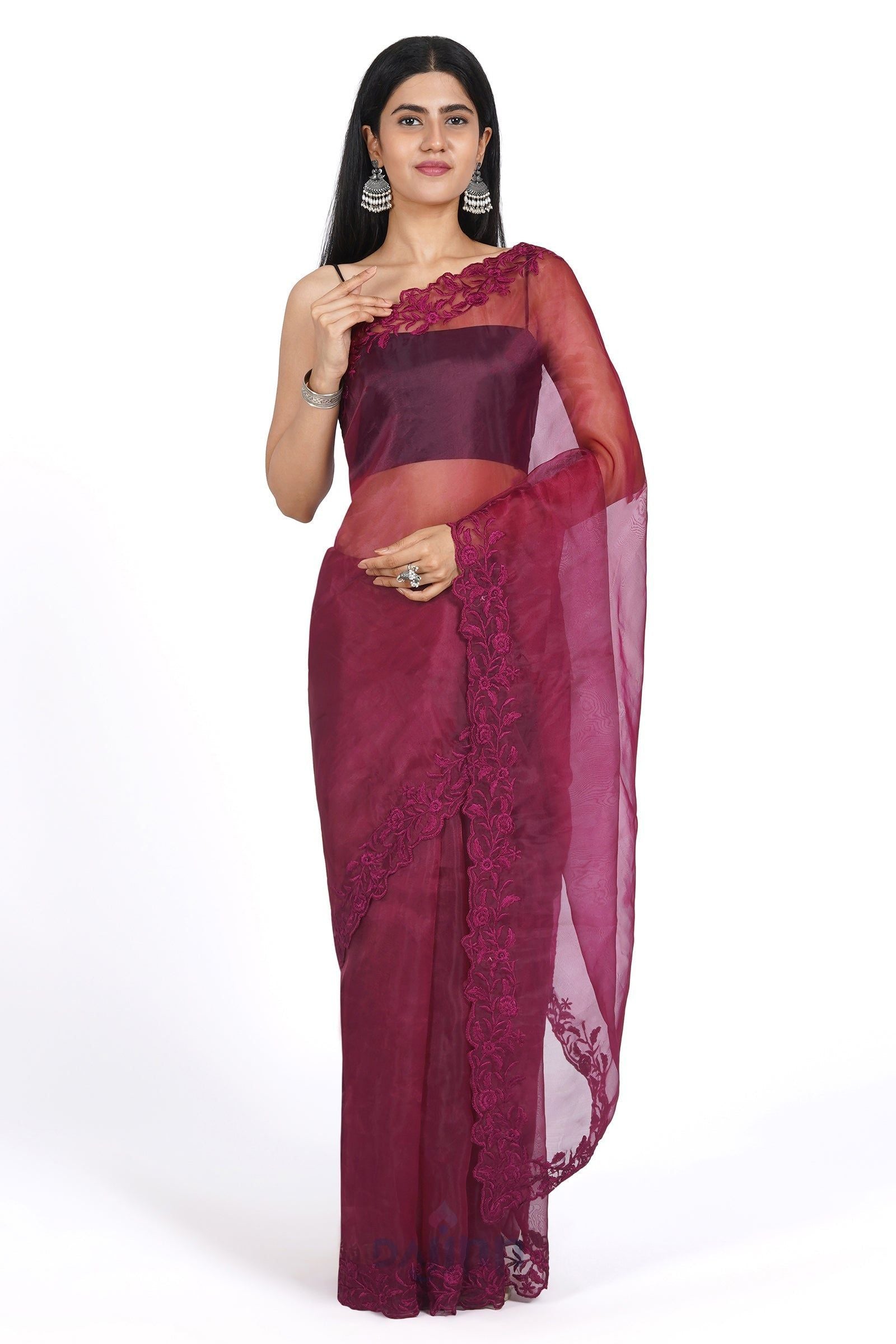 Elevate your elegance with our exquisite AYSR Boutique Petal Perfume Organza Saree, crafted with sheer finesse and delicate textures, offering a perfect blend of tradition and modernity. Pair with statement jewelry for a timeless and sophisticated look.
