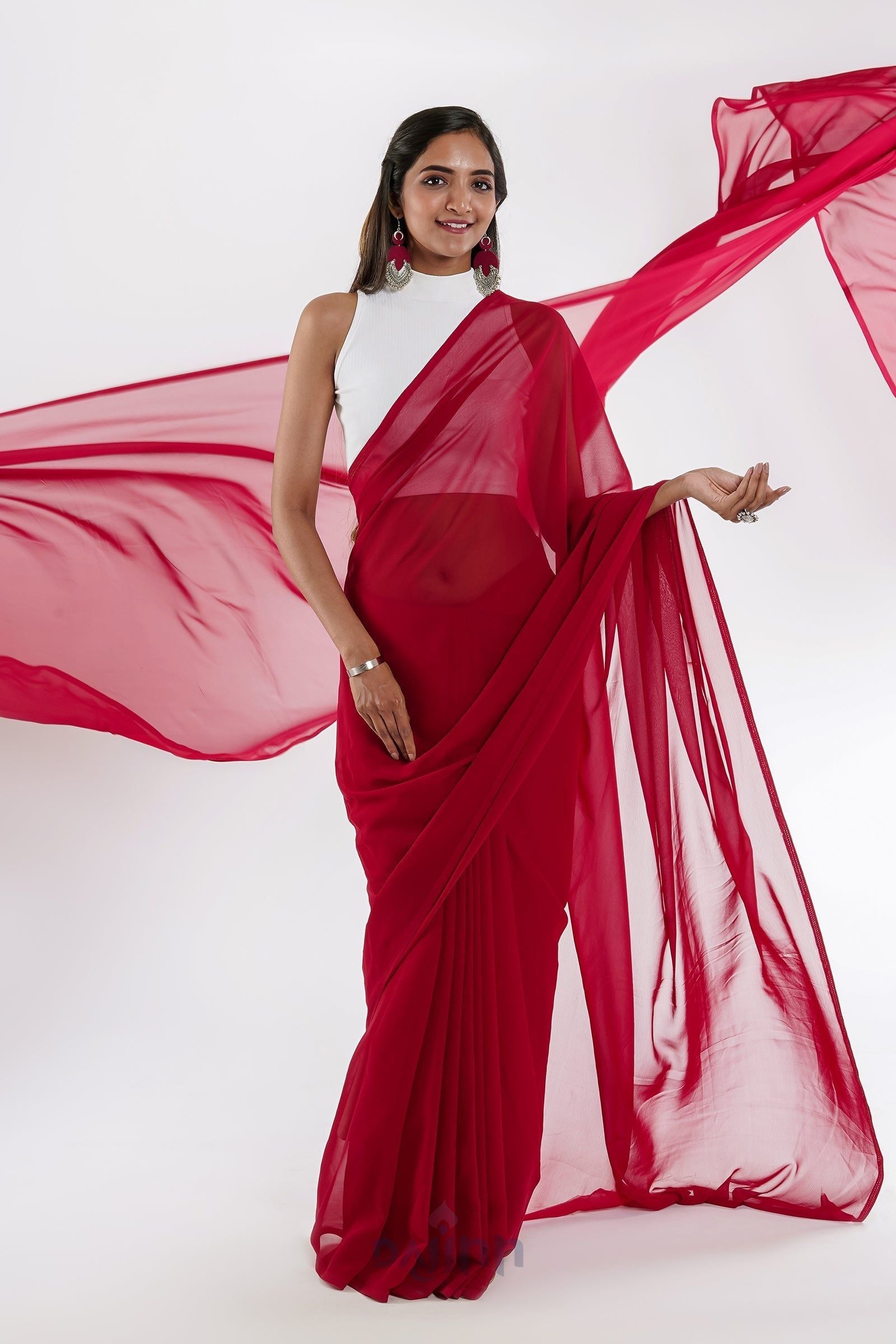 Transcend simplicity with our AYSR Boutique Savita Georgette Saree, offering a palette for personalized grace. Pair it with meticulously crafted blouses and striking jewelry for a chic and distinctive ensemble that exudes effortless style.