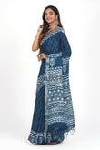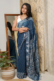 Disclaimer | The pictures are clicked under studio lighting. Color may vary slightly from the image due to your screen brightness or color saturation for which subtle variations must be acknowledged. Since most of our sarees are hand woven and hand printed, there might be slight irregularities or unevenness in the weave, pattern, print or selvedge of a saree. This is a Dabu Print Saree and there are chances for a little bit of dust remnants to come out in the first wash due to the process involved in Dabu printing. Characteristic imperfections associated with hand printing may be observed in certain sarees which results from the human involvement in the process and is a hallmark of handcrafted products. |
