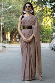 A saree that will give you a tasteful look! The pretty colour adds beauty and elegance to the look. Style this with dainty jewellery for a fun look!
