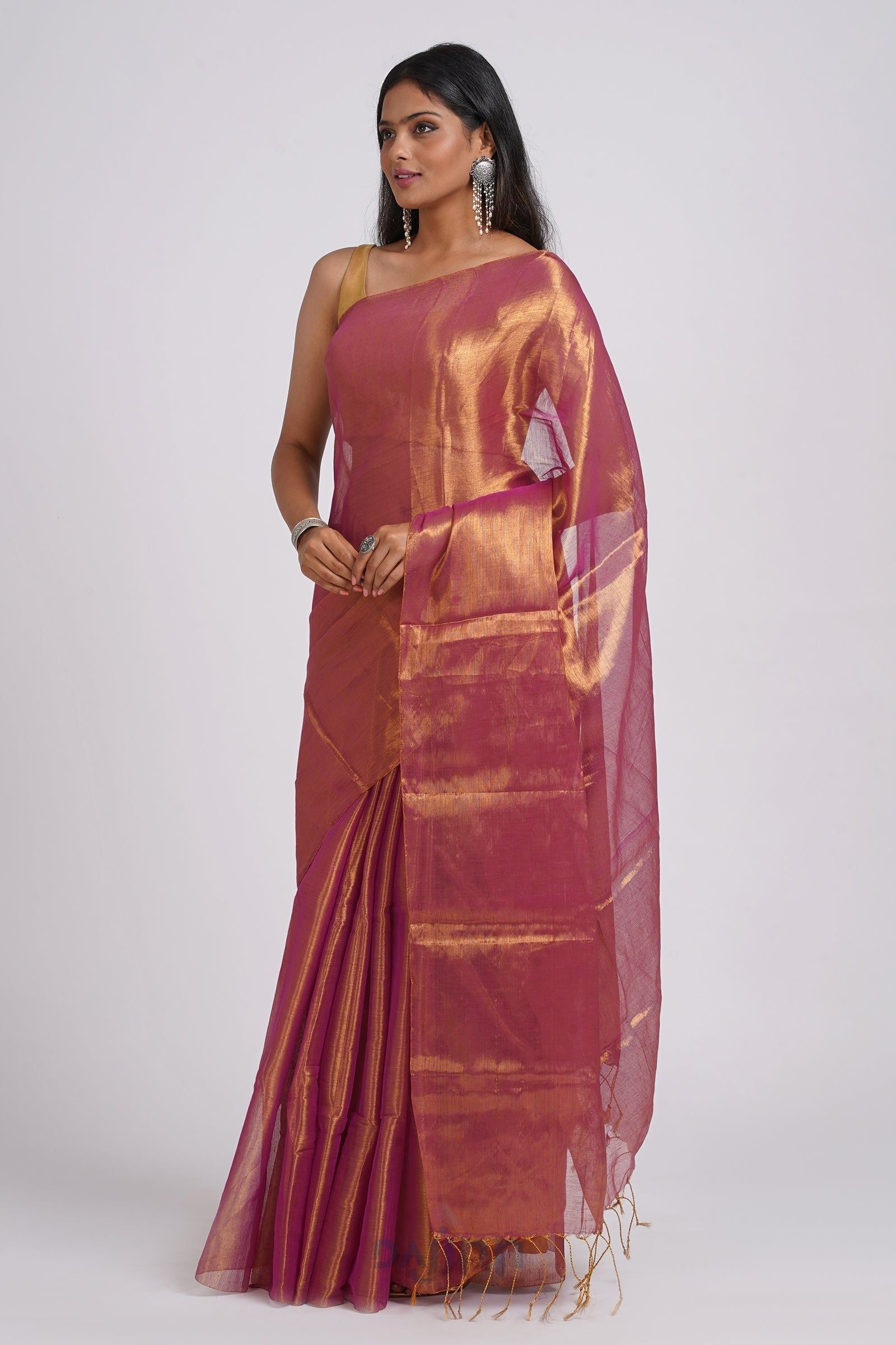 Unveil your inner diva with our AYSR Boutique Trishika Magenta Tissue Saree. The fabric's ethereal blend of texture and sheen makes it a top choice for any occasion. Pair with vintage jewelry and a classic updo to exude timeless grace and enchantment. Elevate your style with this embodiment of sheer sophistication.