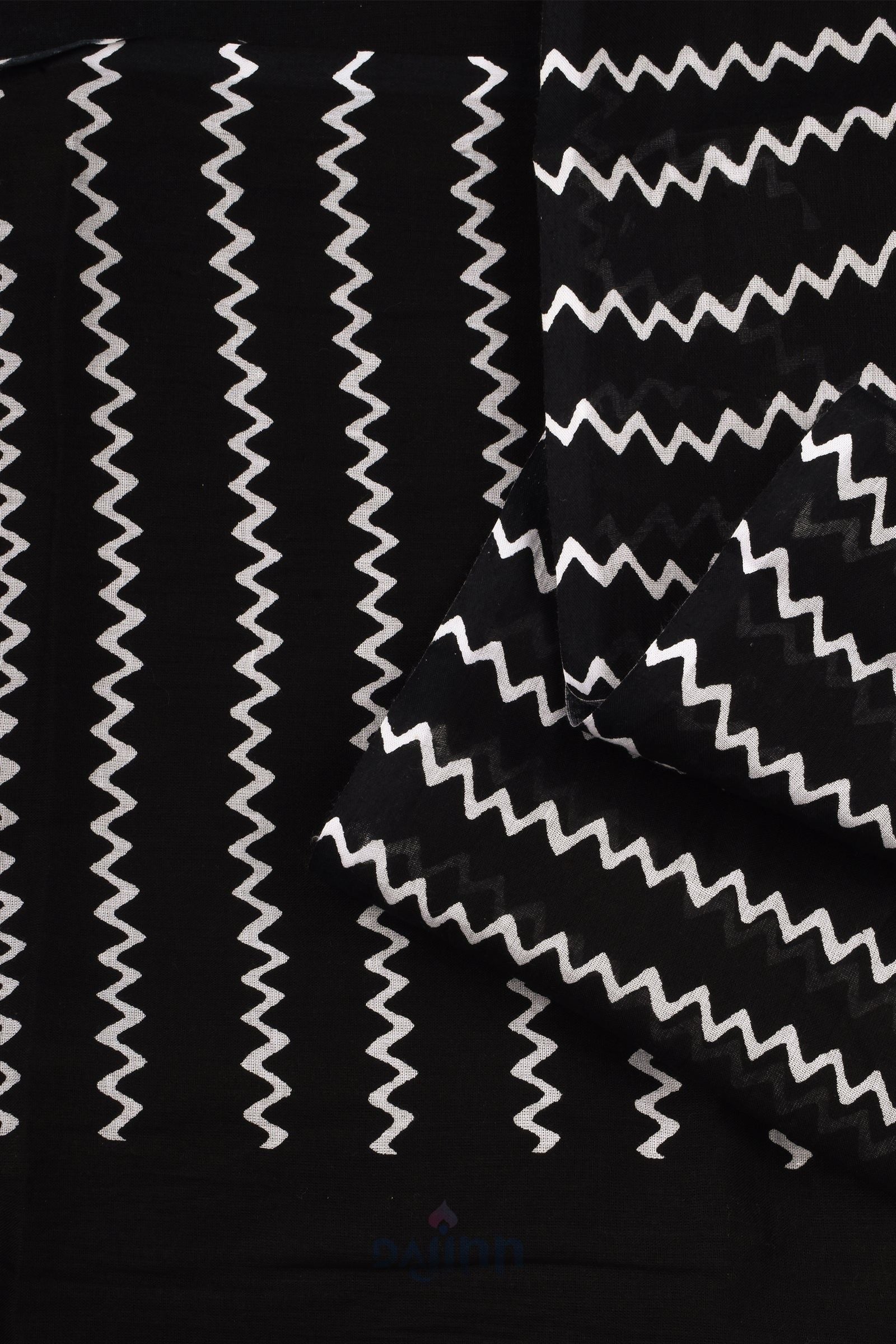 AYSR Boutique Urmika Black Block Print Cotton Saree With Blouse Piece
