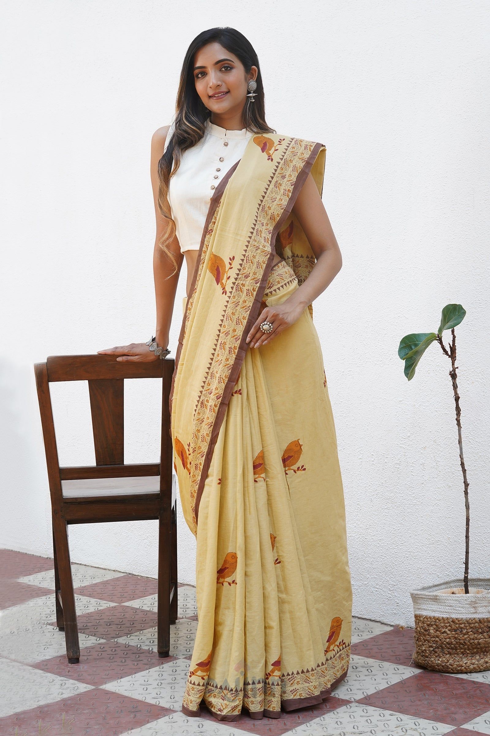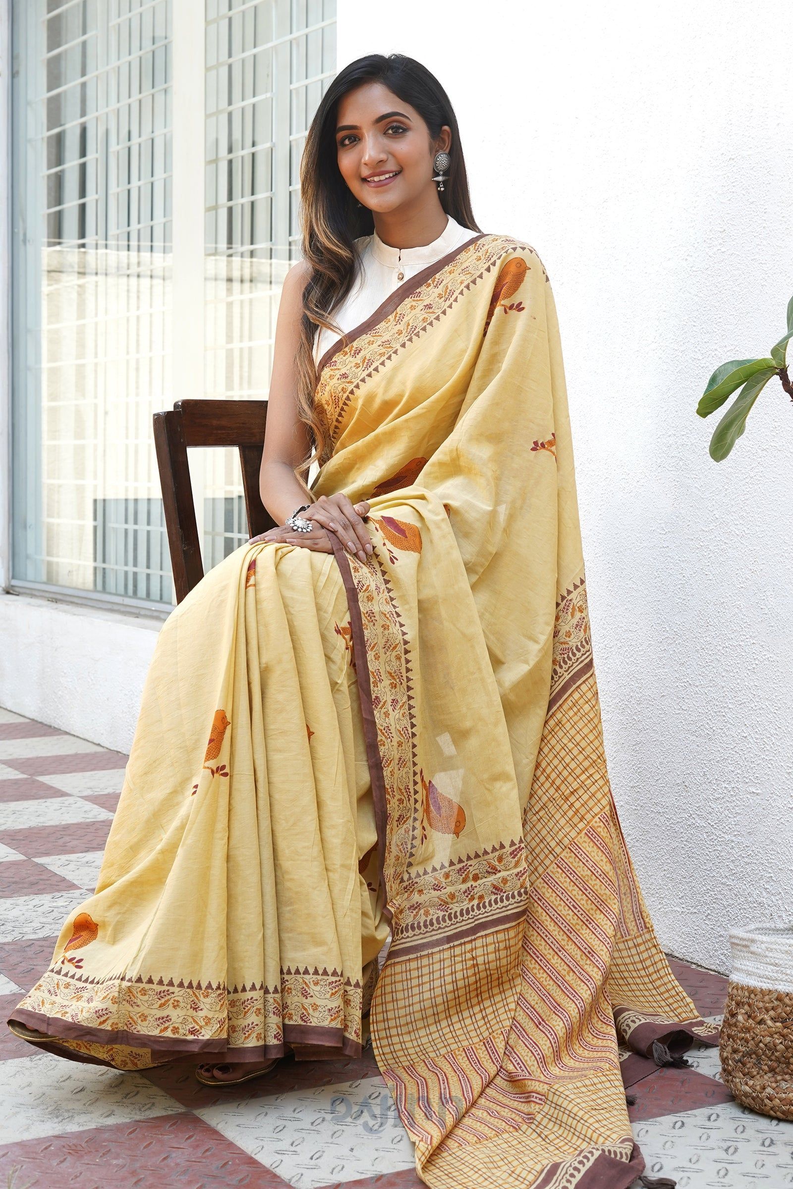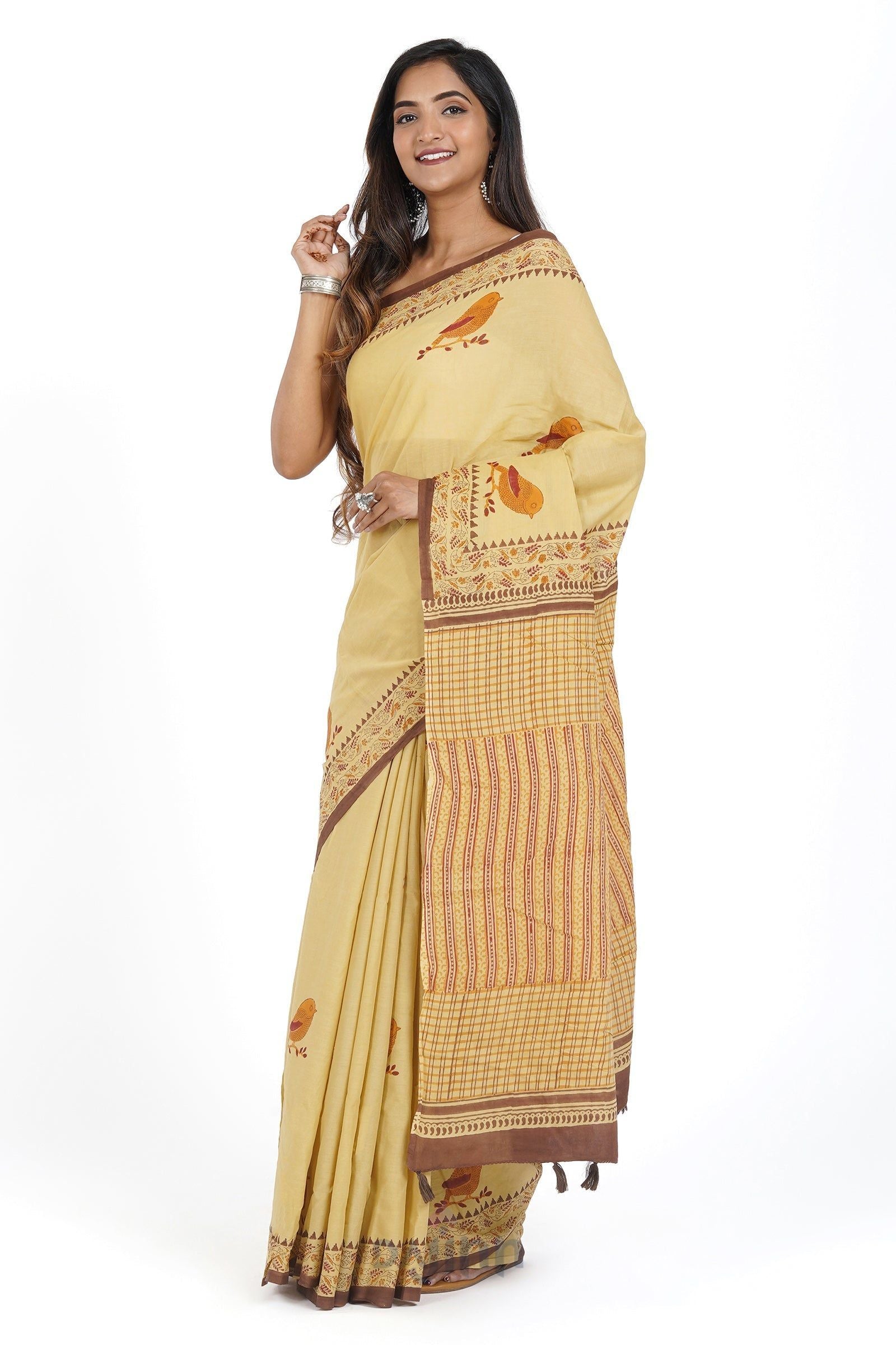 Disclaimer | The pictures are clicked under studio lighting. Color may vary slightly from the image due to your screen brightness or color saturation for which subtle variations must be acknowledged. Since most of our sarees are handwoven, there might be slight irregularities or unevenness in the weave, pattern or selvedge of a saree. Characteristic imperfections associated with hand printing may be observed in certain sarees which results from the human involvement in the process and is a hallmark of handcrafted products |