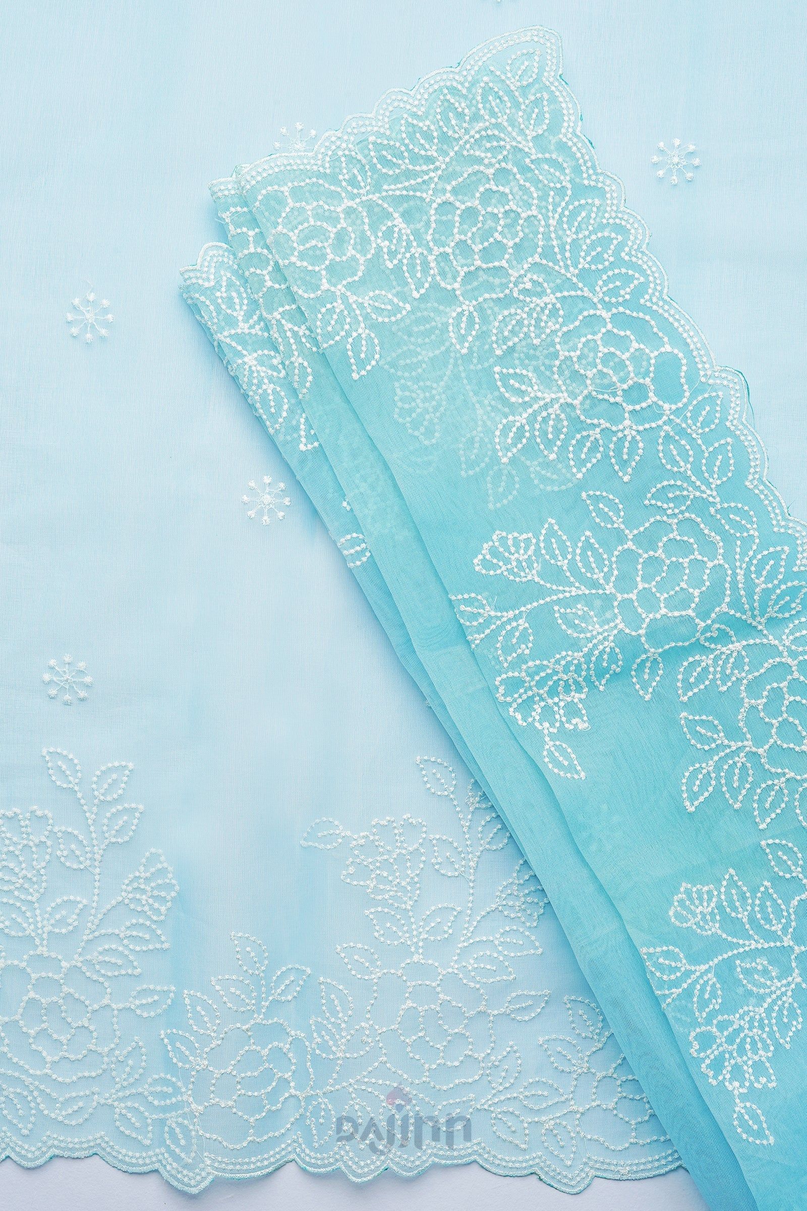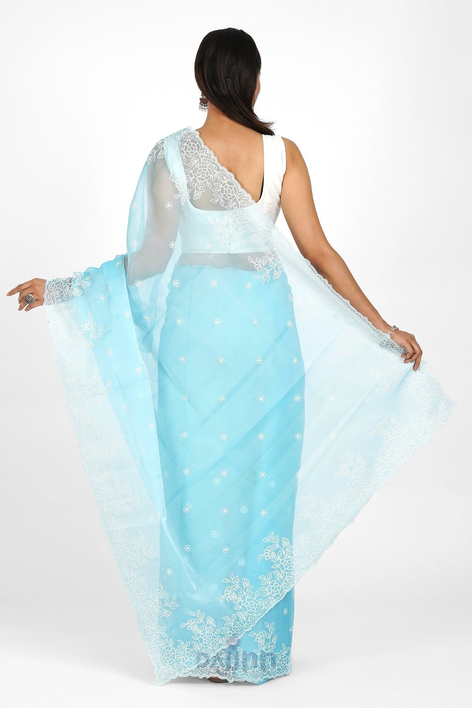 Step into refined elegance with our exquisite AYSR Boutique Vrishti Embroidered Organza Saree—a harmonious fusion of intricate craftsmanship and ethereal charm, tailored for special occasions that call for sophistication and grace.