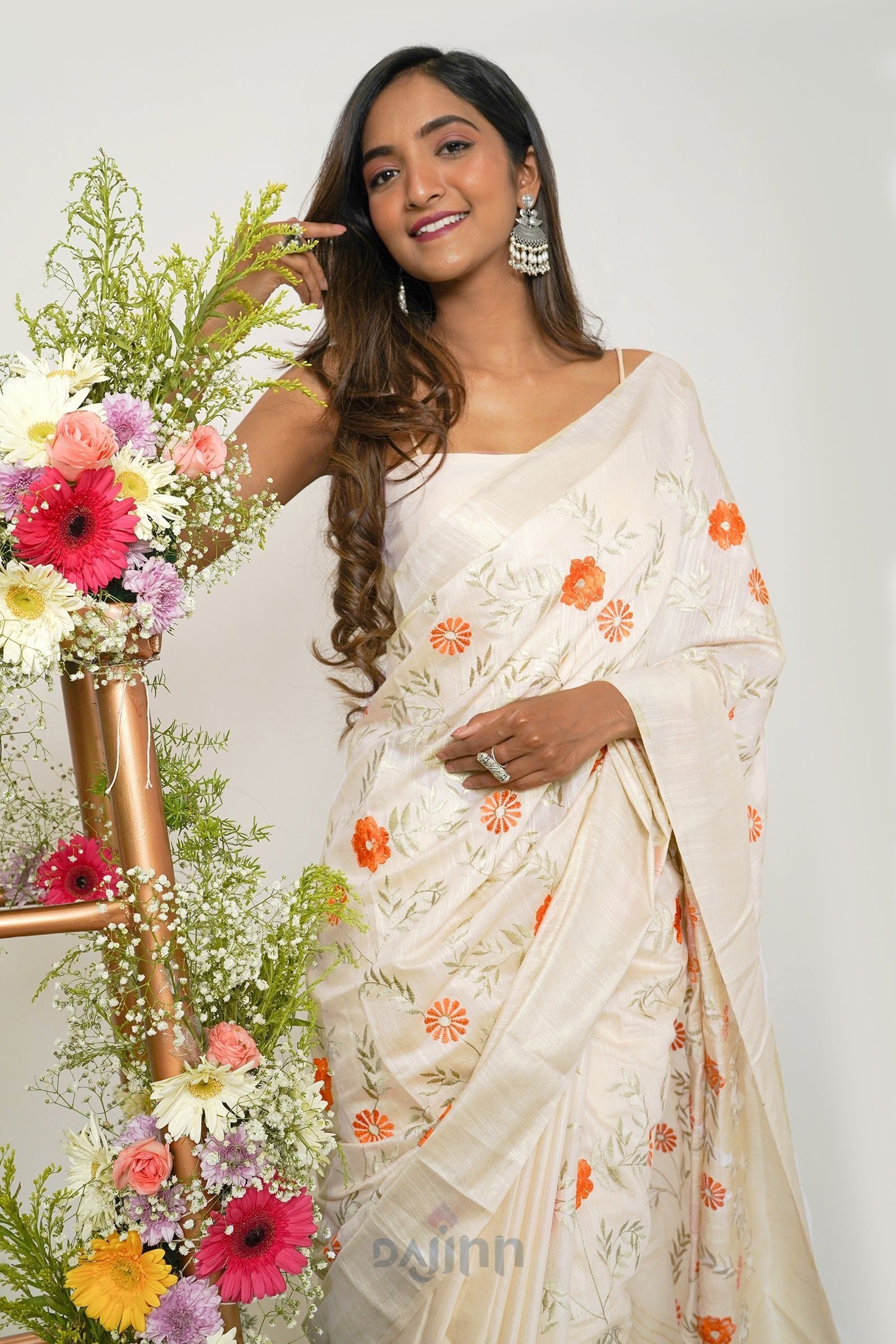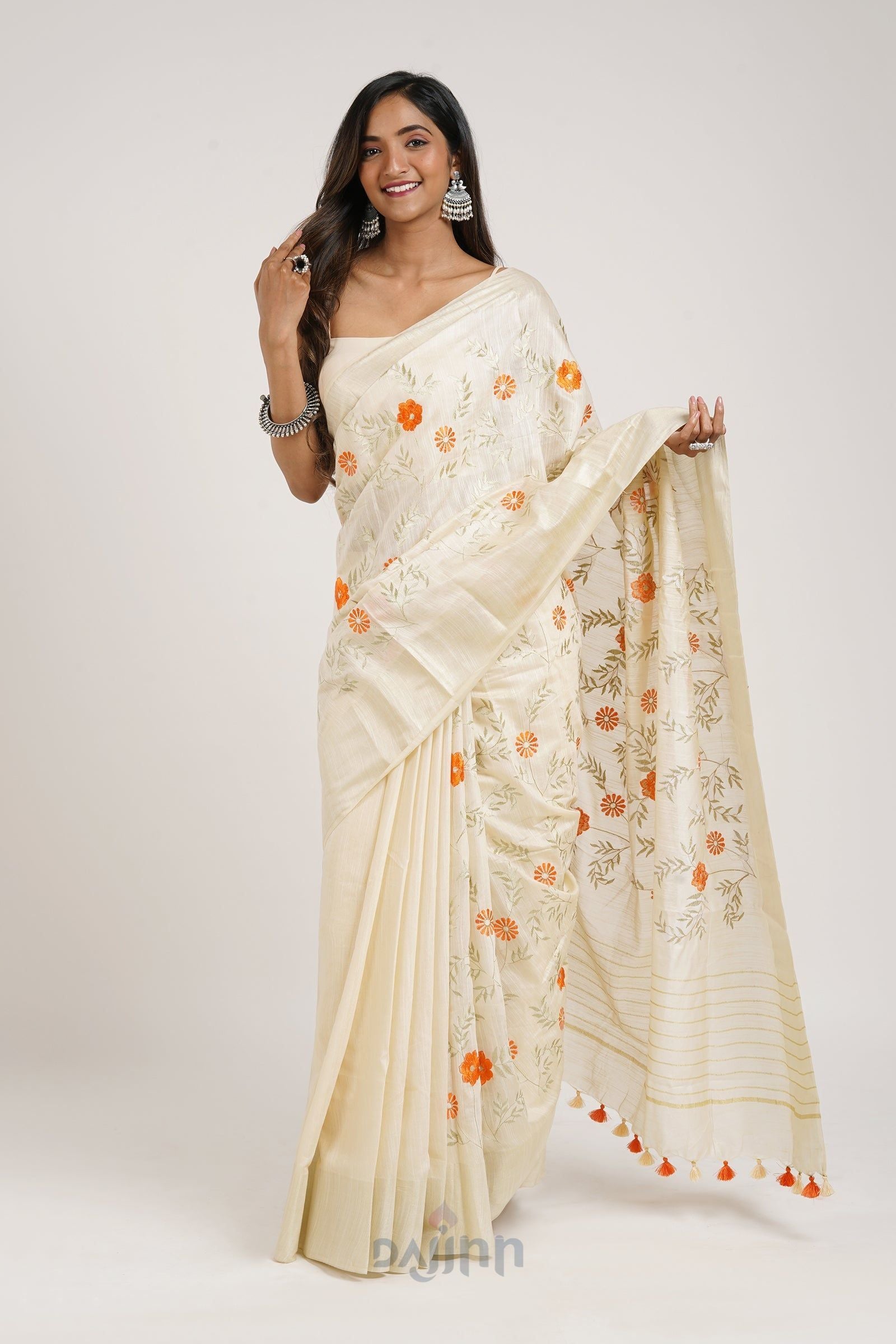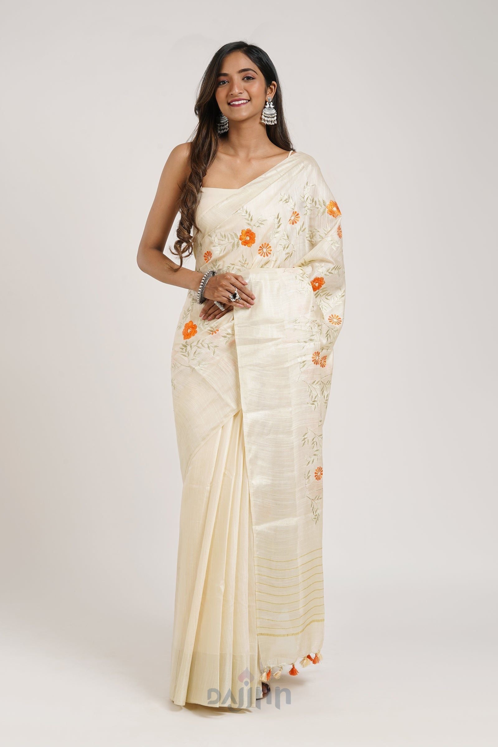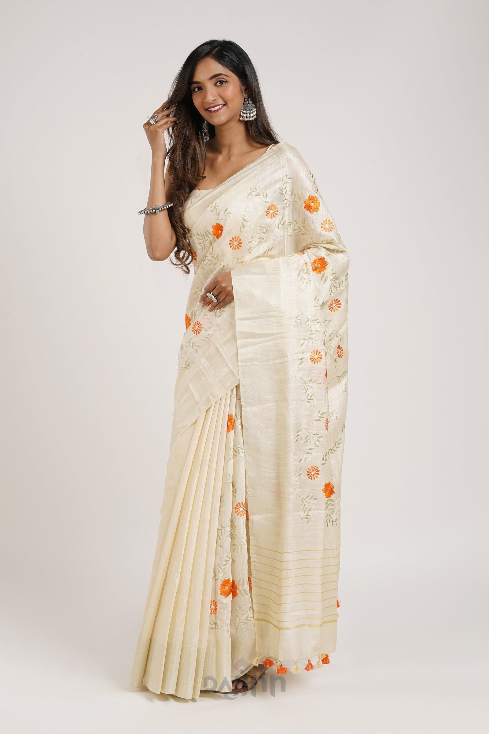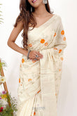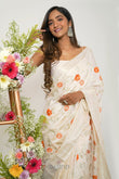 AYSR Boutique Yamira Off White Pure Silk Linen Saree with Blouse Piece