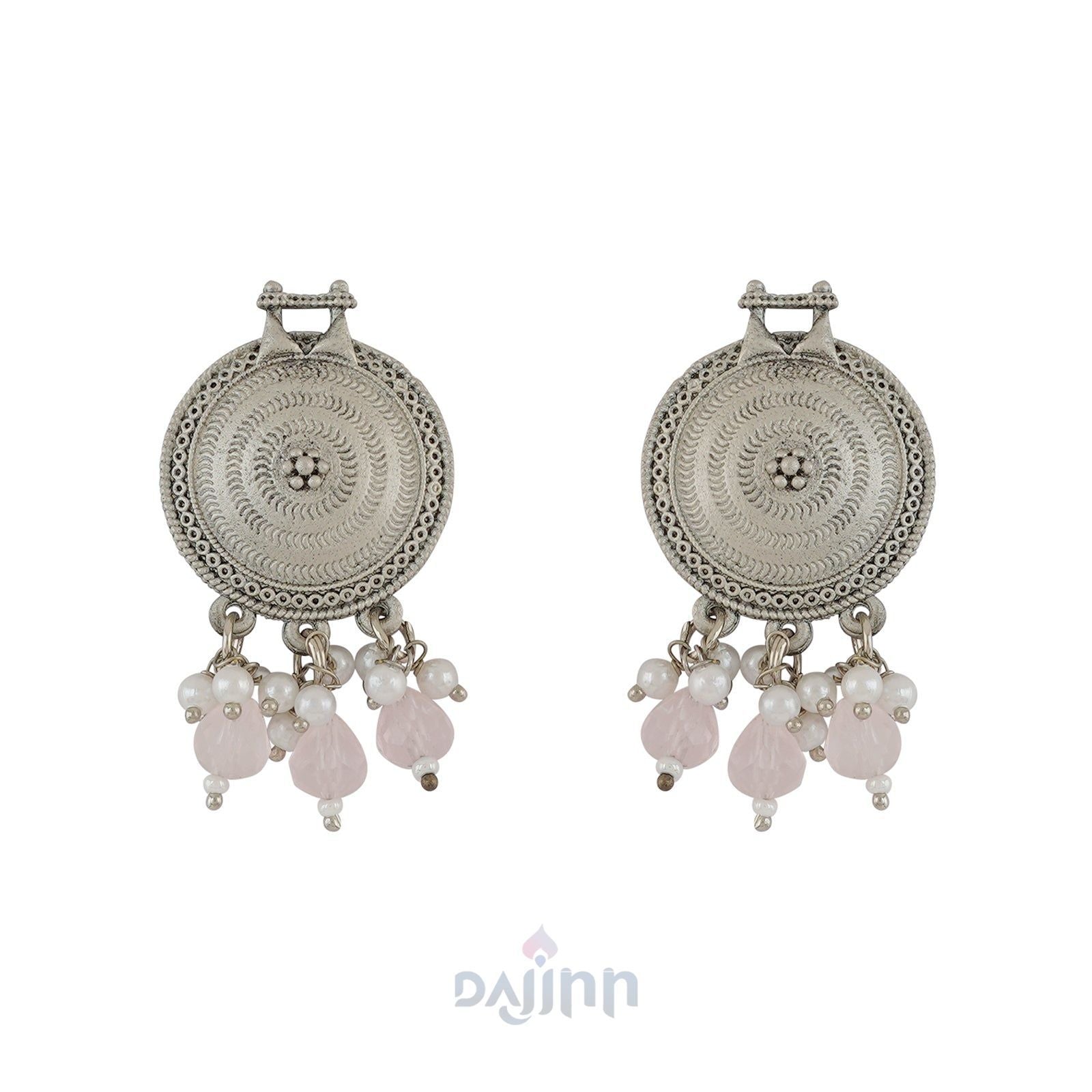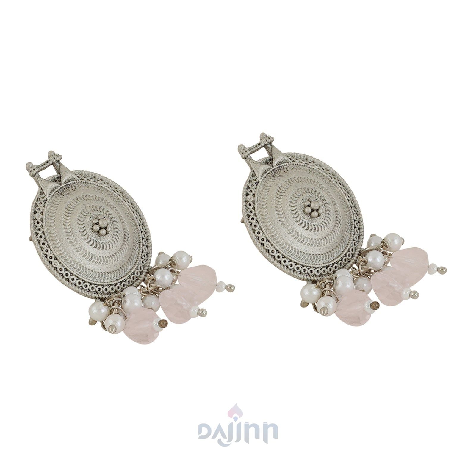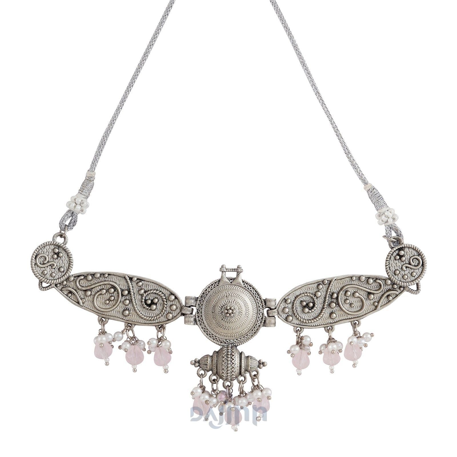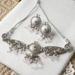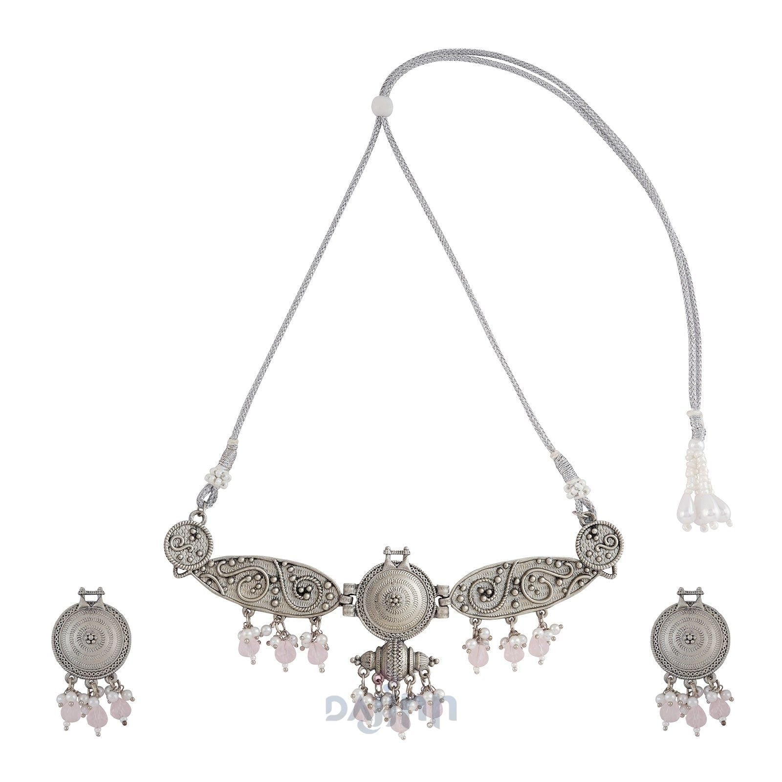 Dajinn Cera Silver Oxidised Pastel Pink Necklace Set
