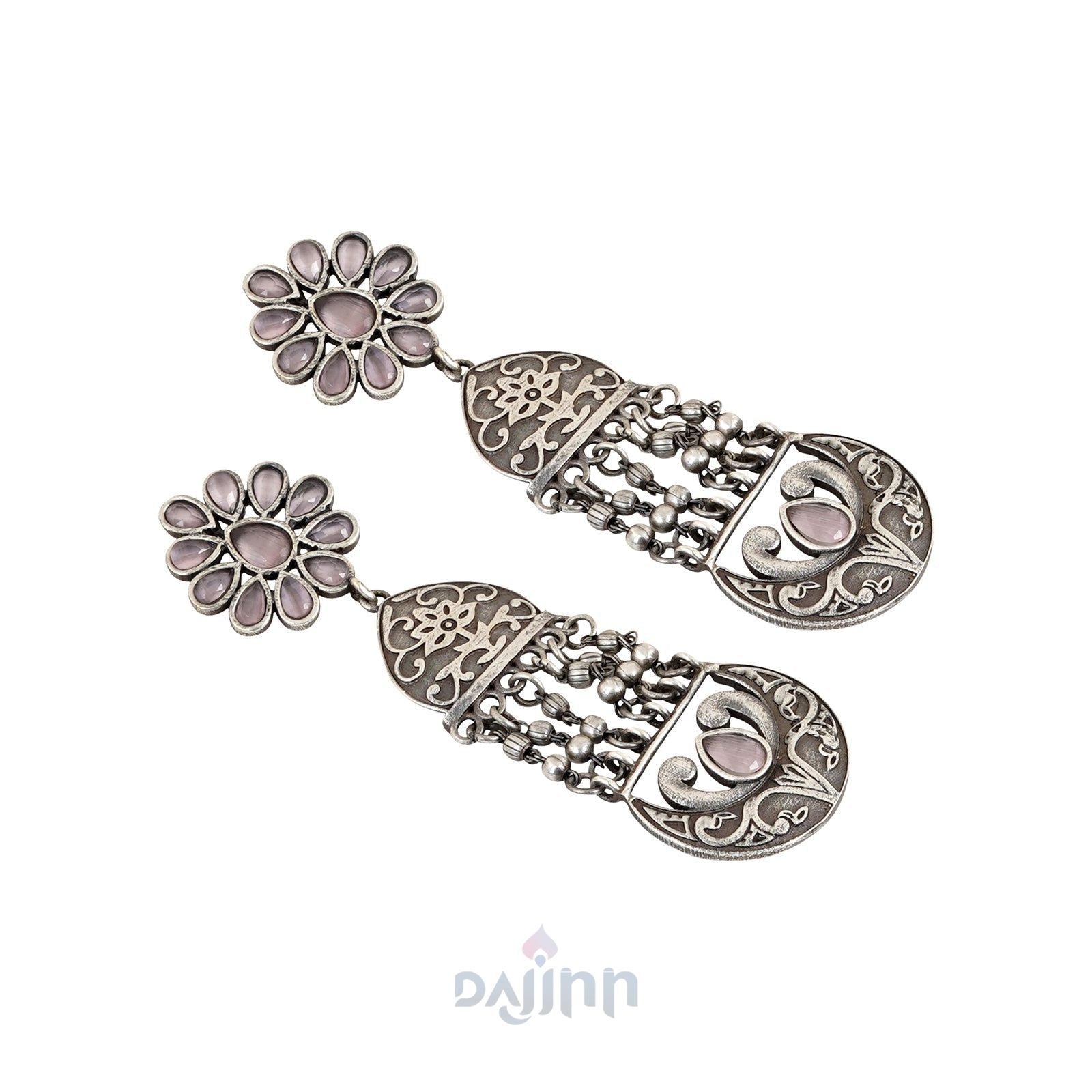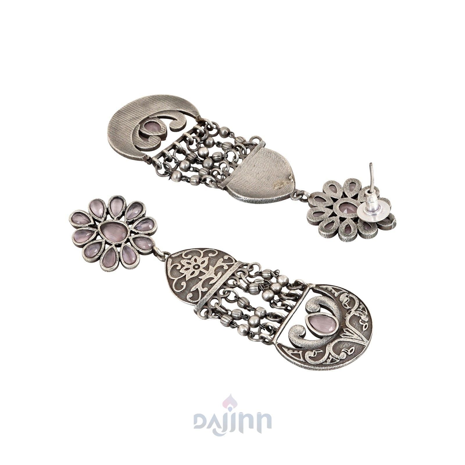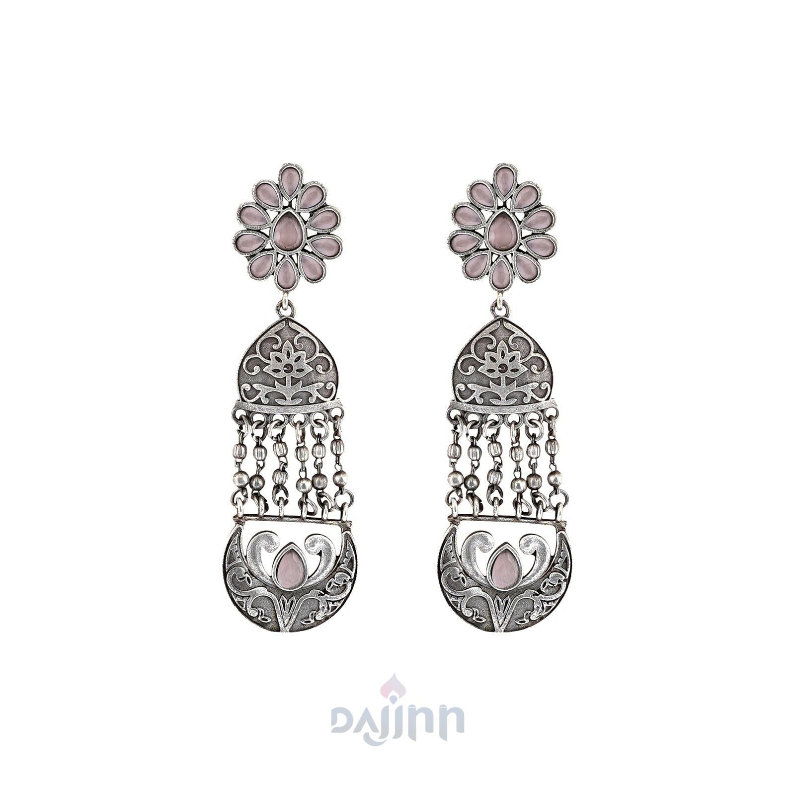 Dajinn Bina Floral Pink Silver Oxidised Earrings