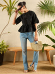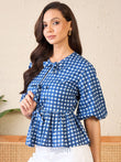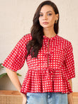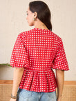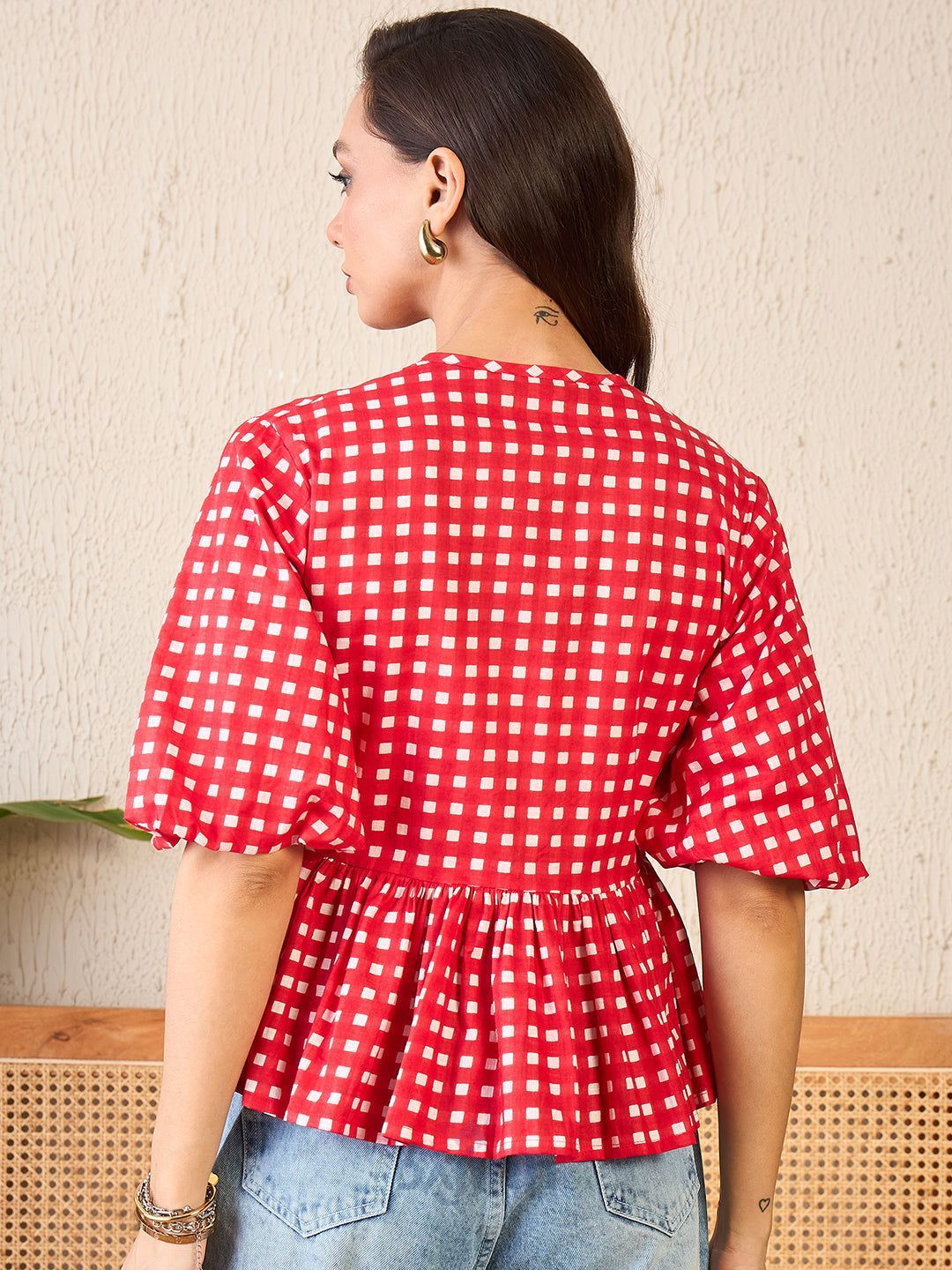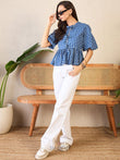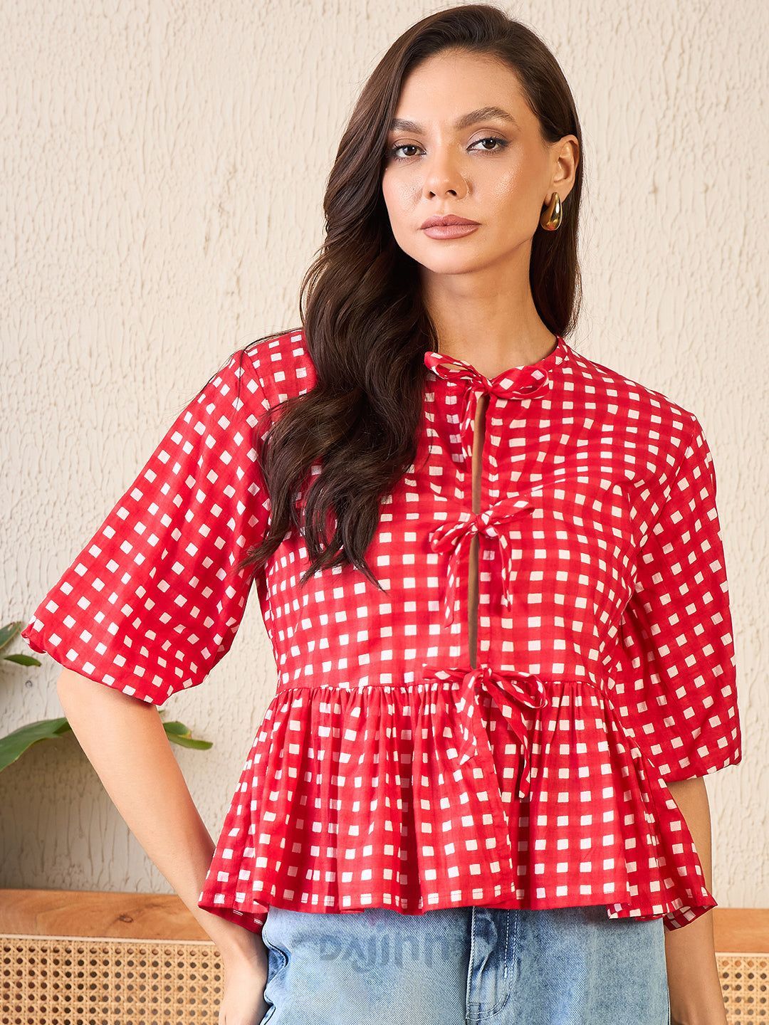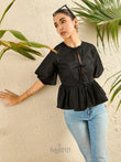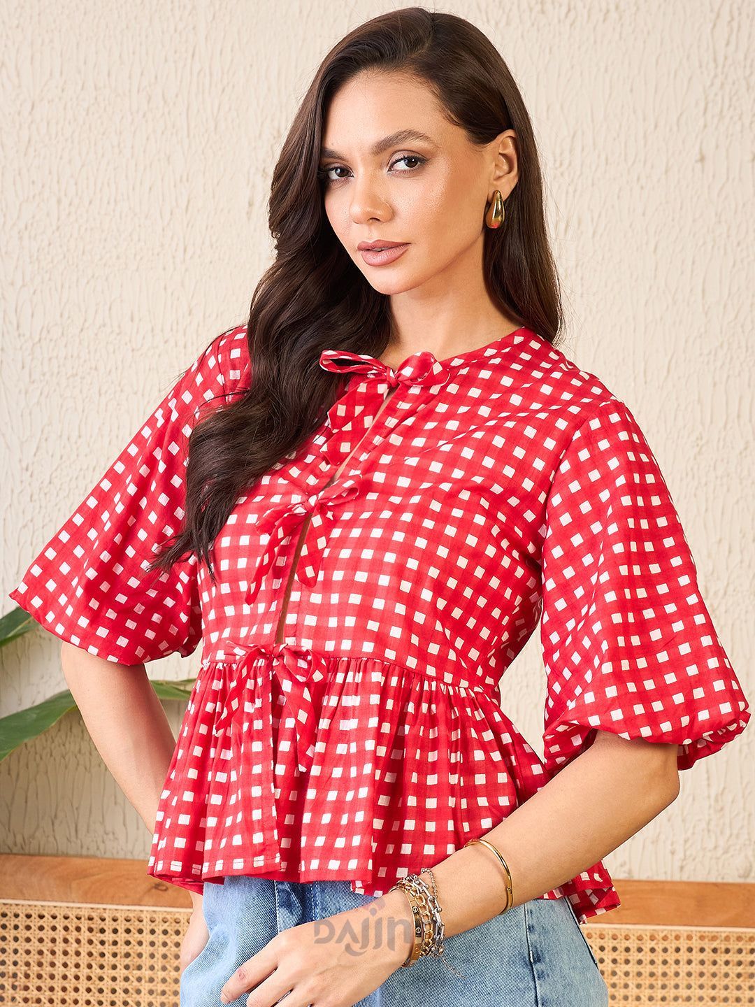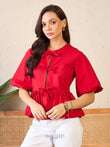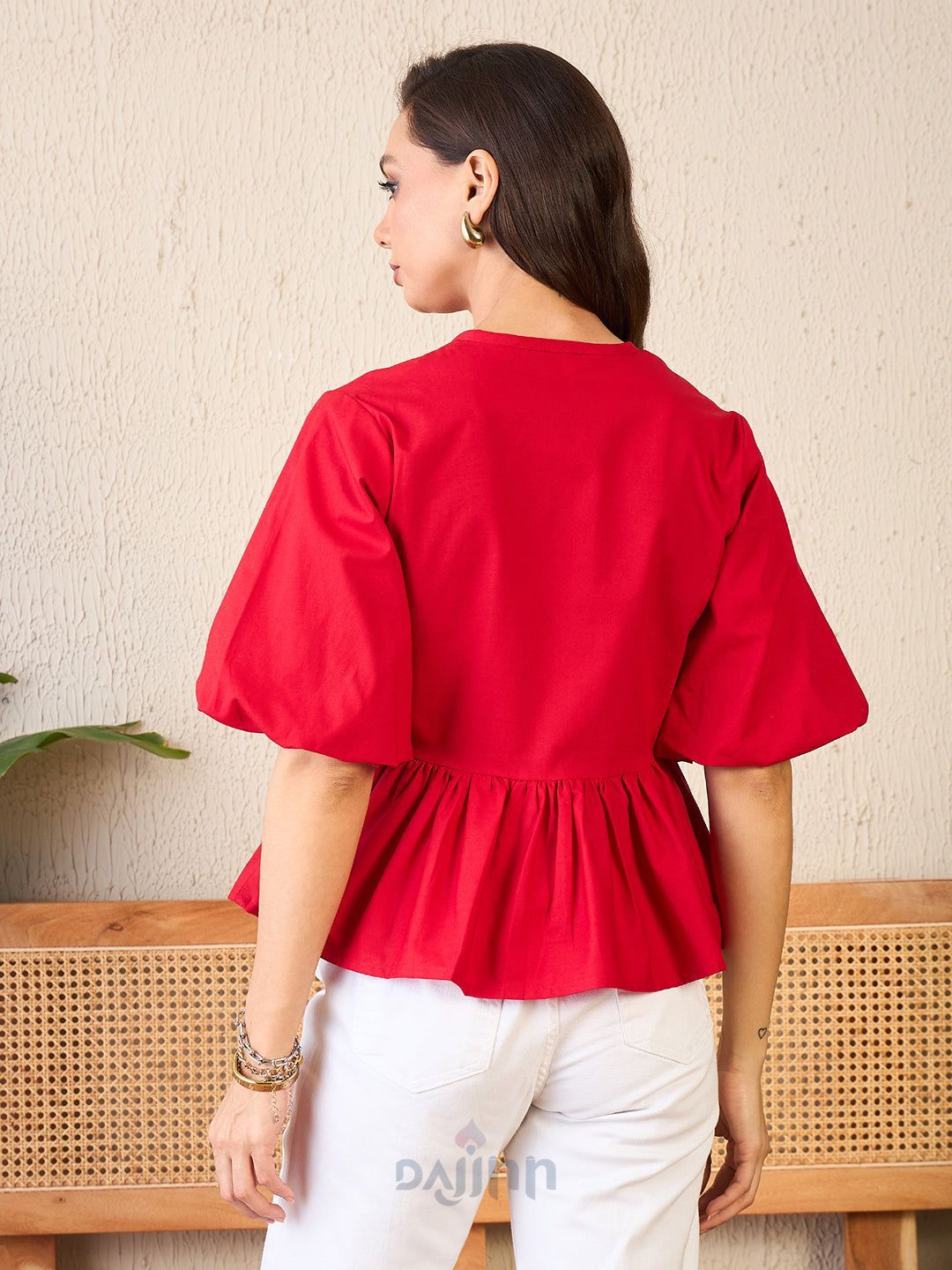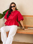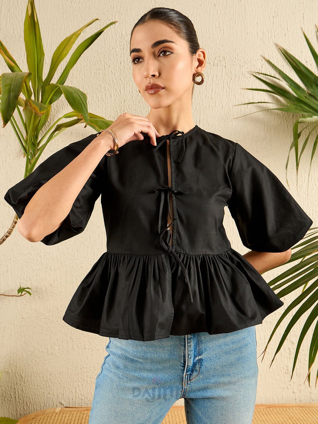Level up your everyday looks with the Bow peplum top with puff sleeves! The top features an open peplum shirt with bows and tie-up detailing. It is the trendiest, most pinterest-y top ever and is the perfect accompaniment to your blue jeans for a look that's cute, girly and oh so instagrammable. The premium fabric is wrinkle-free and colour bleeding resistant and machine washable thereby making it long lasting and easy to maintain.