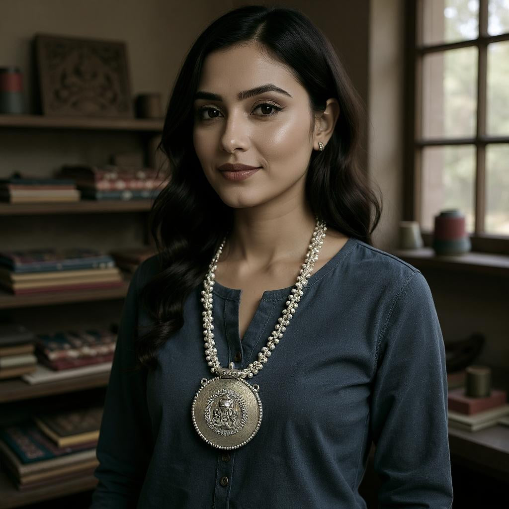Dajinn Divine Shakti Oxidized Brass Necklace for Women | Ethnic Attire Pendant | Traditional Indian Necklace