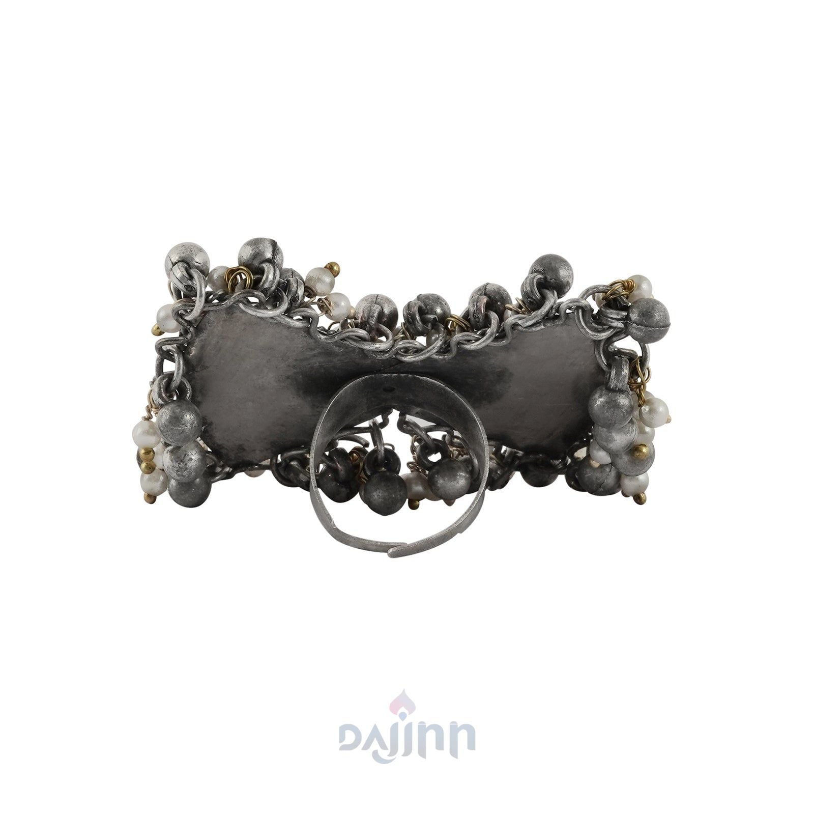 Our Dajinn Lopa Silver Oxidised Ring is brimming with details that add to its elegance. The ring is the kind you?d want to slip into, all day every day and the muted oxidized finish makes it possible to do so.