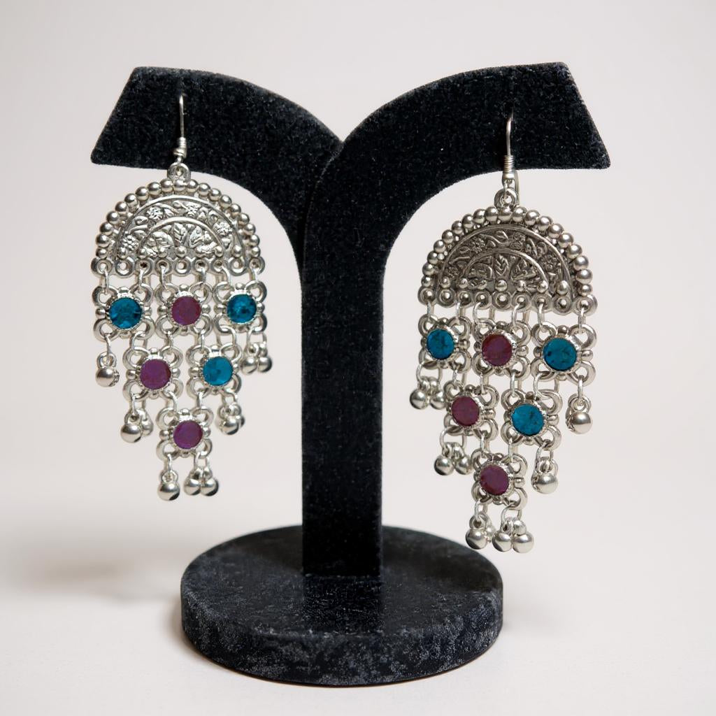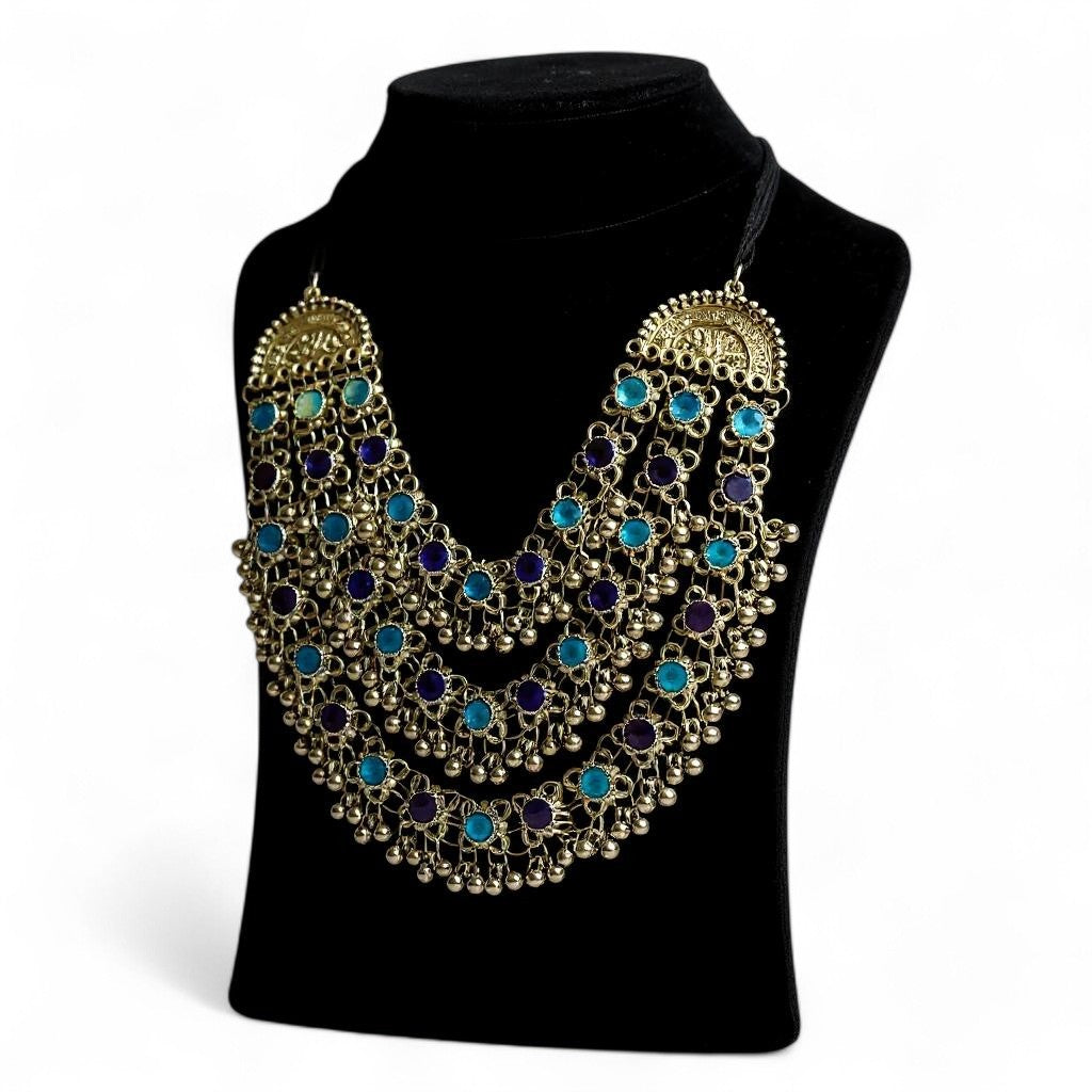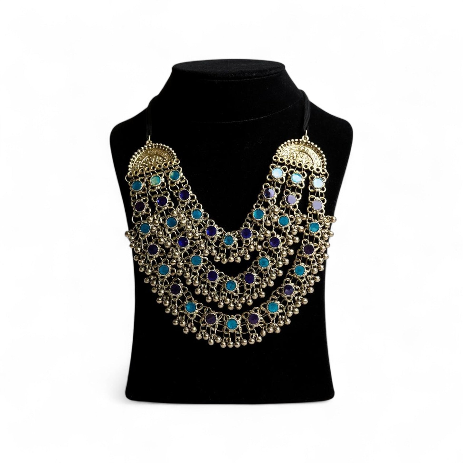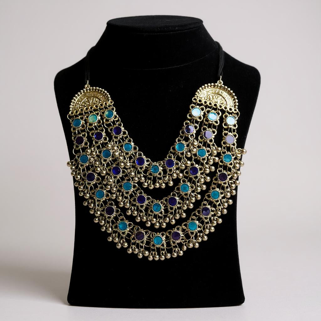 Dajinn Meher Collection Oxidized Brass Oxidized Traditional Ethnic Necklace with Earrings for Women and Girls Antique Indian Jewelry Set (Magical Rainbow)