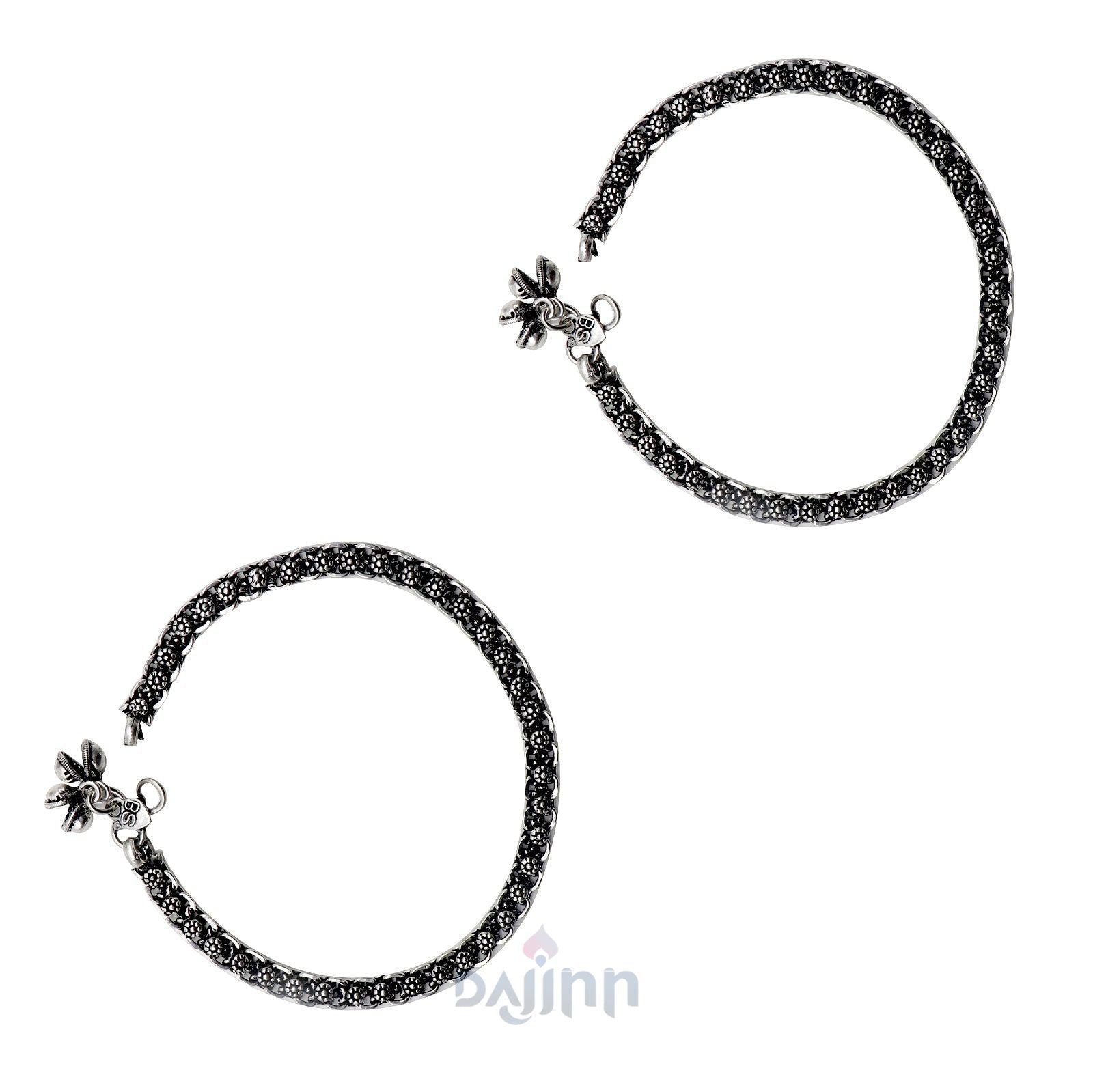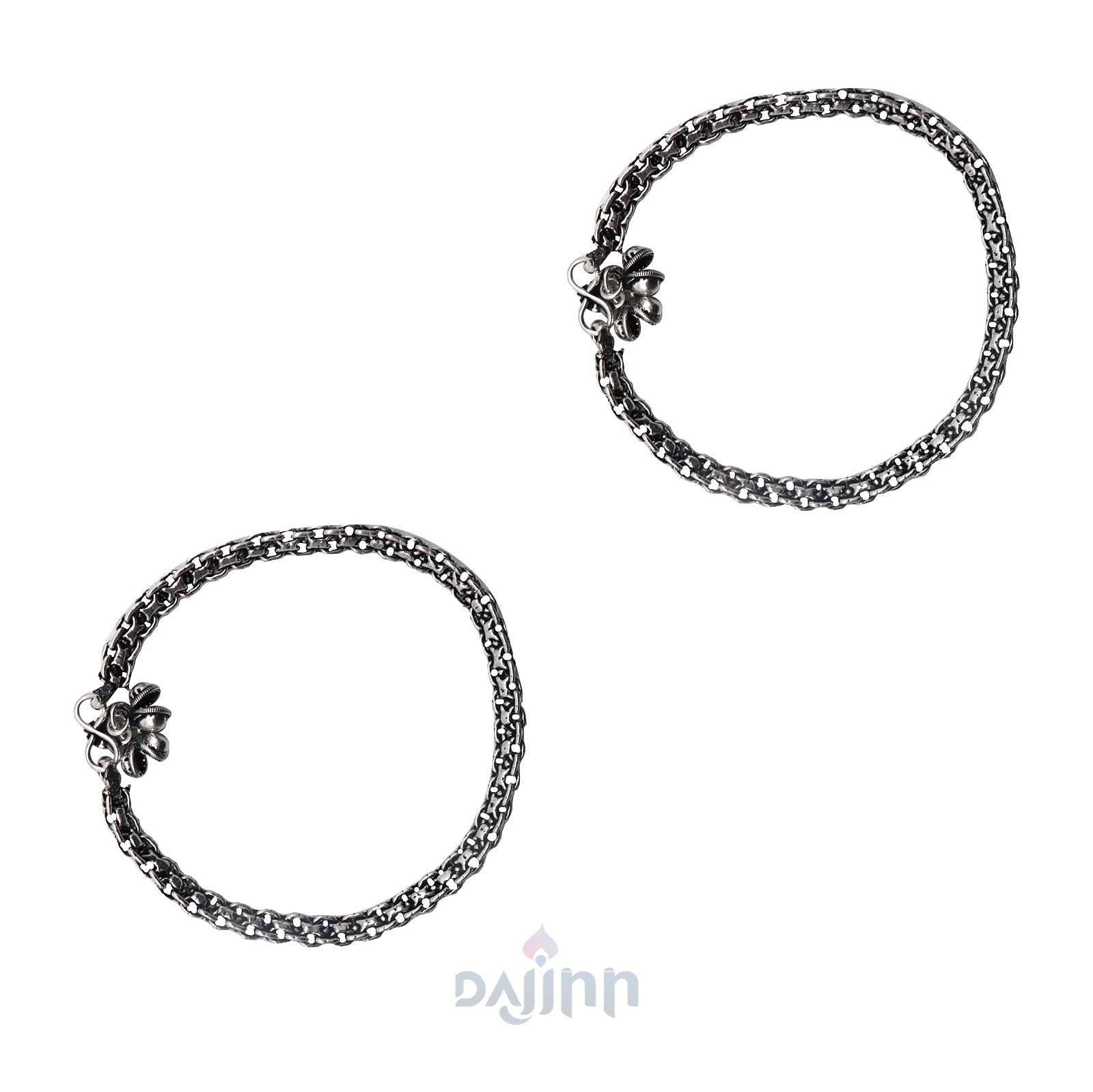 Dajinn Heena Linked Silver Oxidized Anklets |