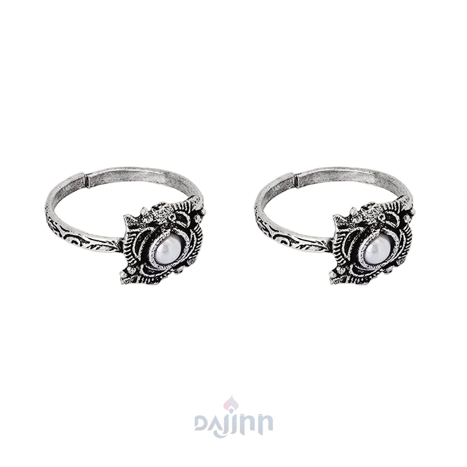 Dajinn Niya White Stone Silver Oxidised Toe Rings |
