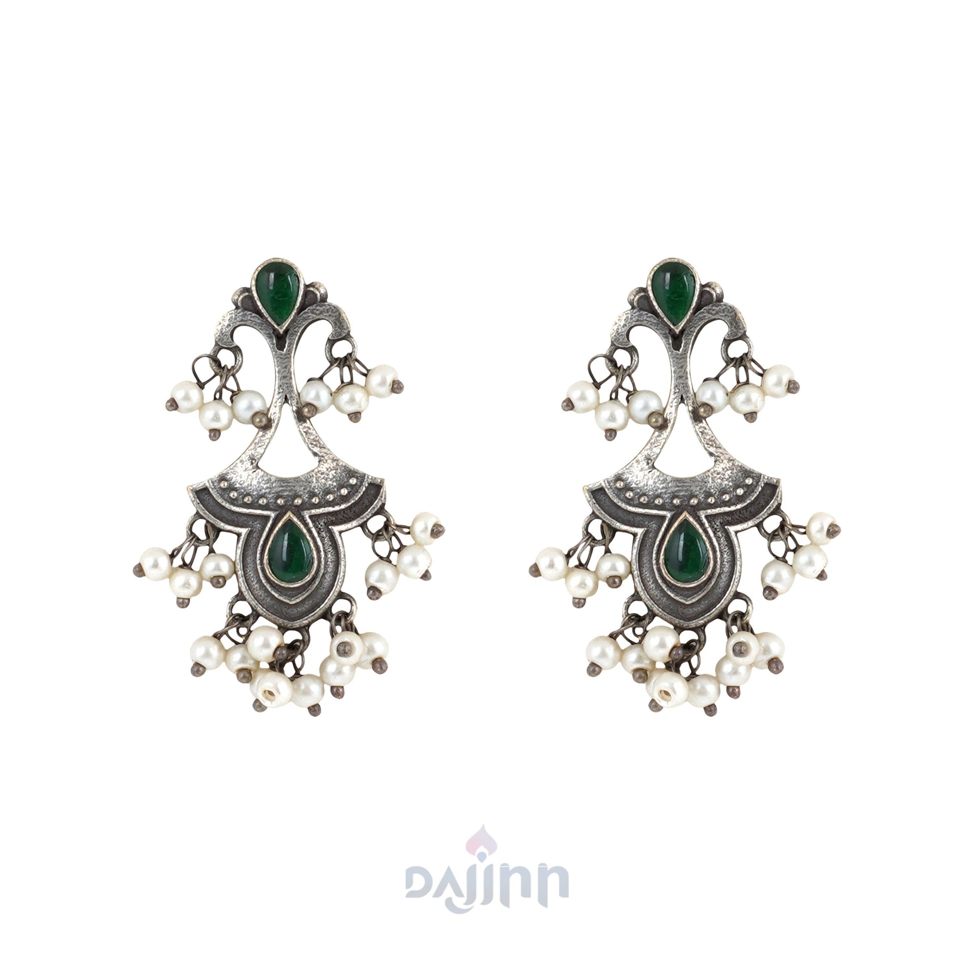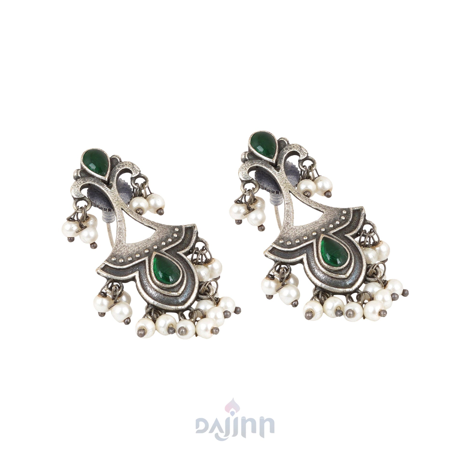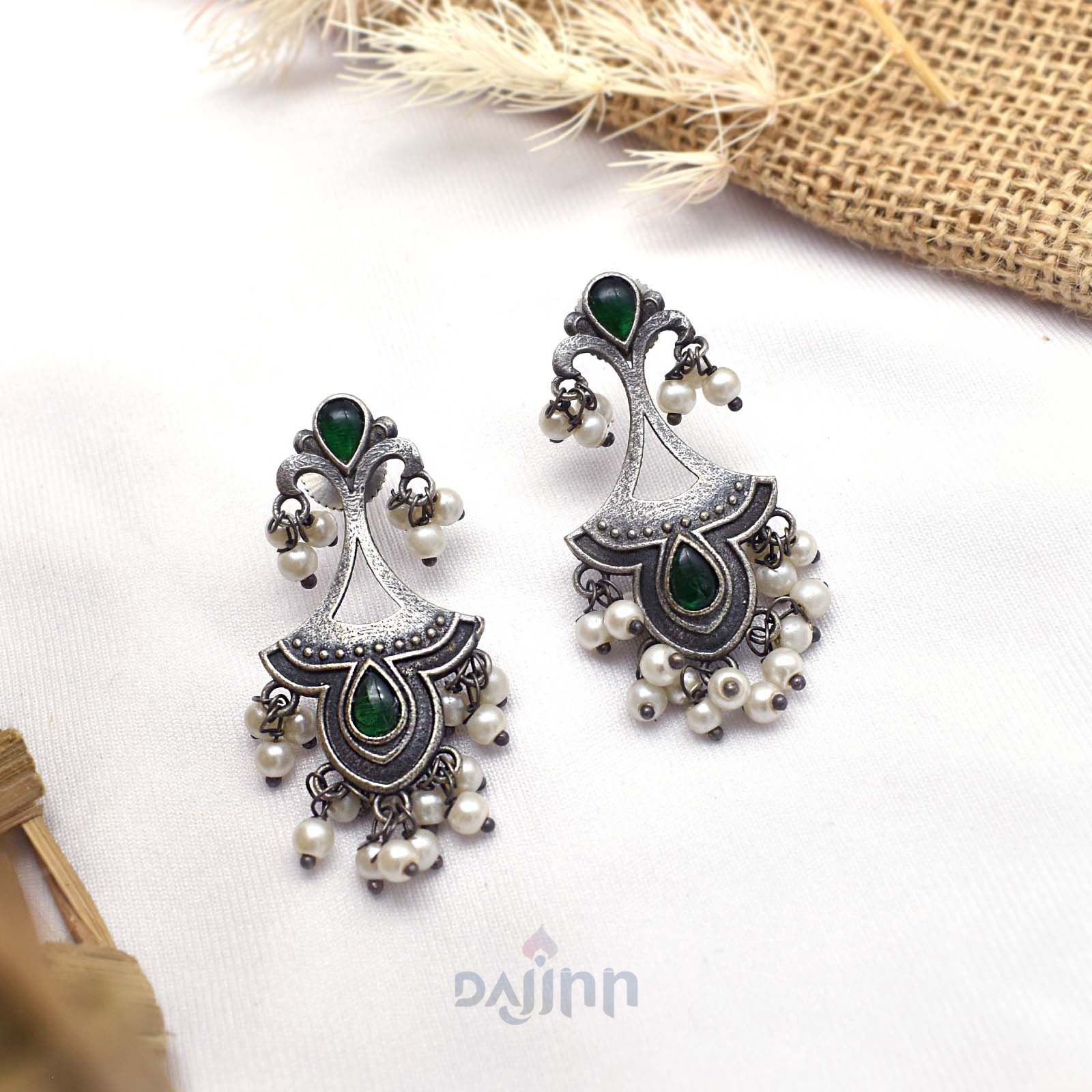 Dajinn Nilay Green Stone Silver Oxidised Earring