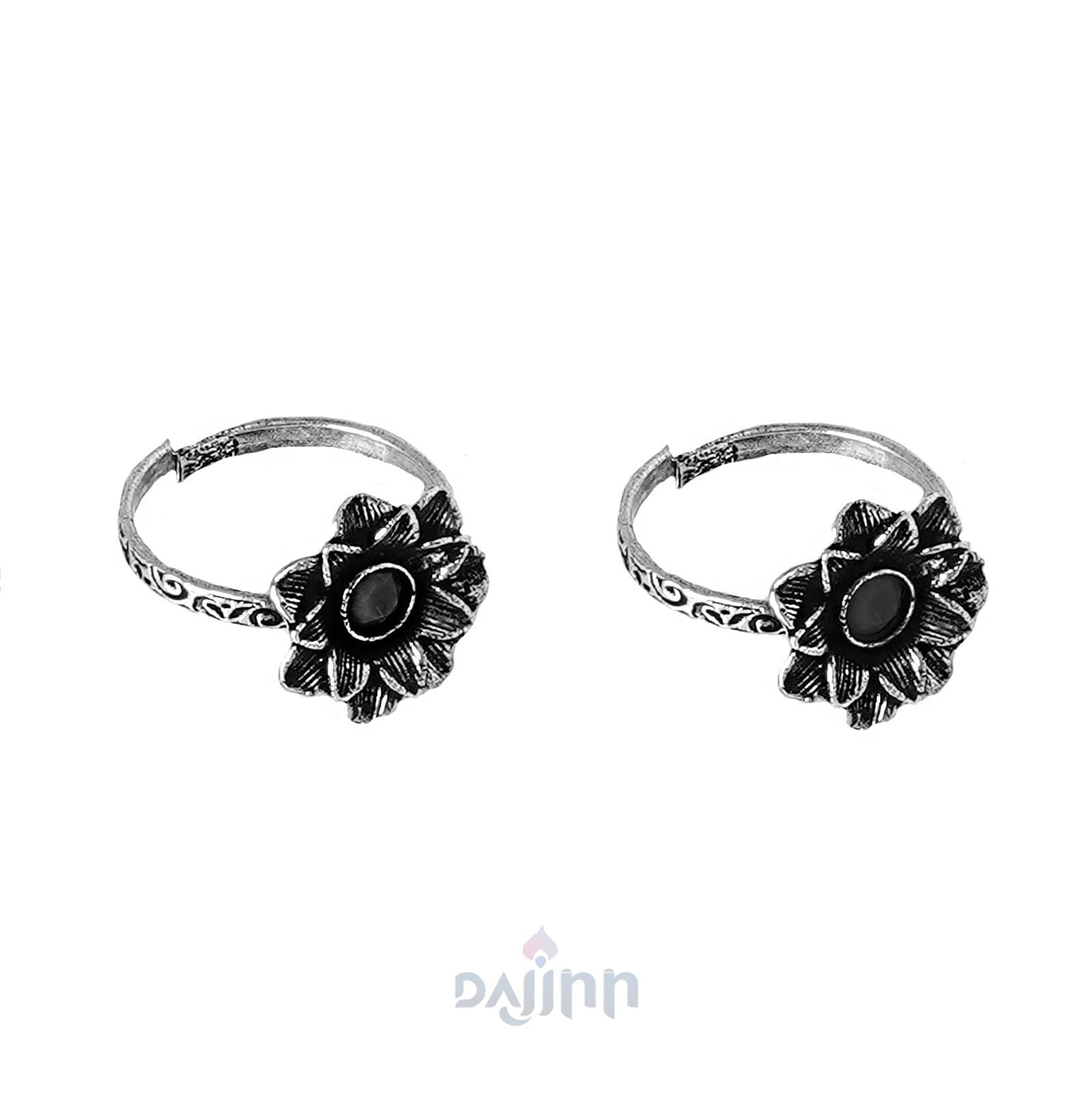 Dajinn Kayra Black Stone Silver Oxidised Toe Rings |