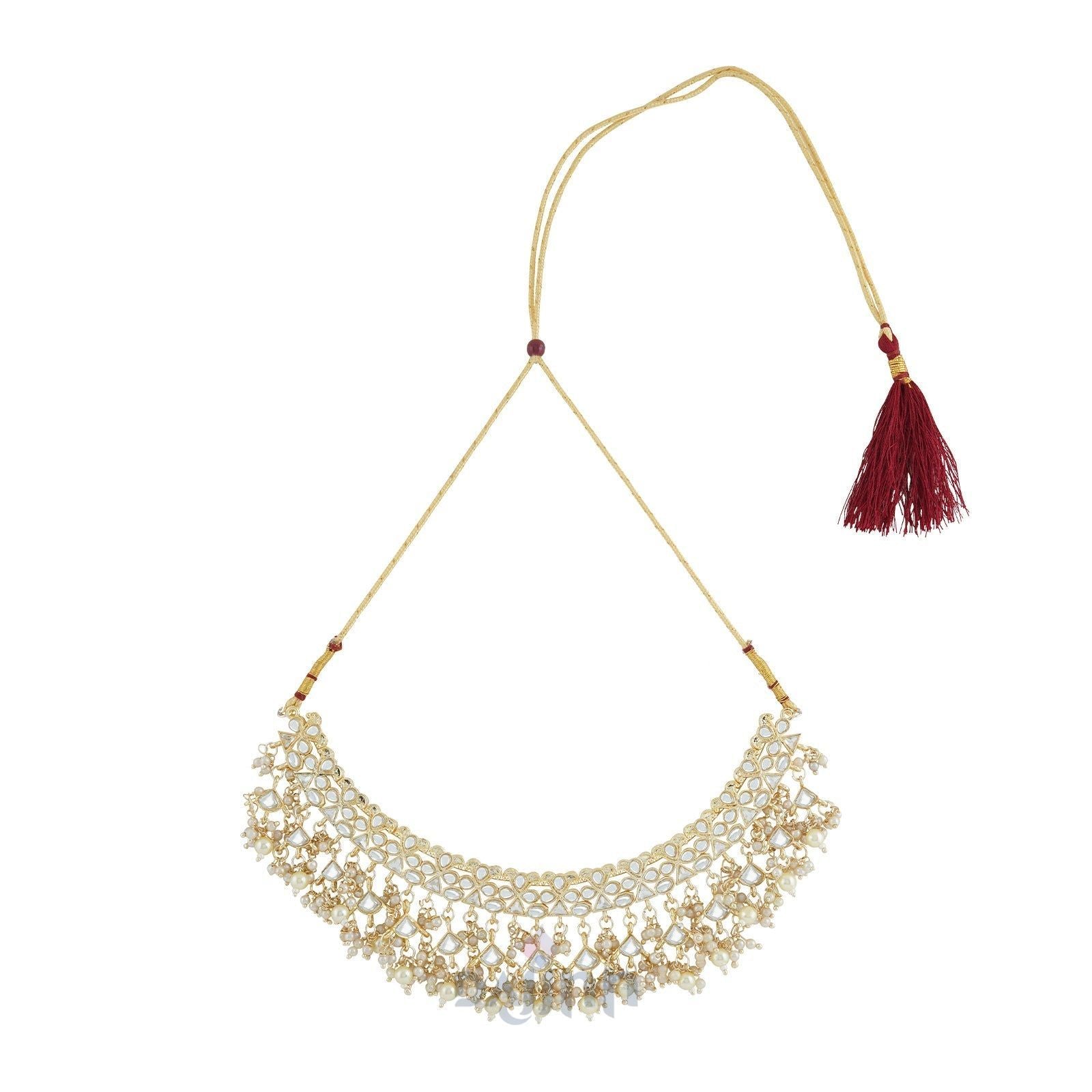 Every time you go out, this necklace set is sure to draw notice! This stunning necklace set has detailed designs with polki and pearl work. A flexible set that will brighten any situation.