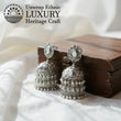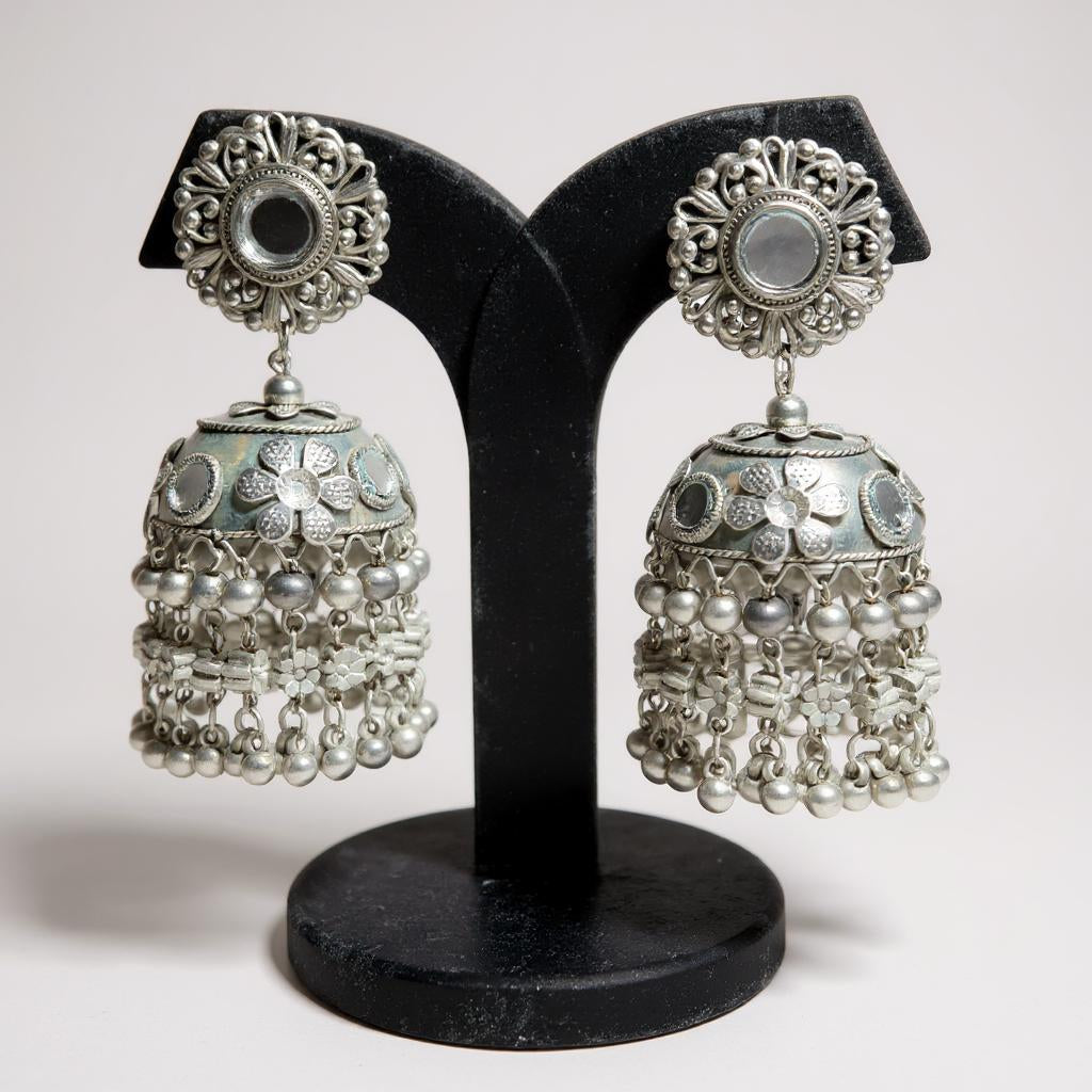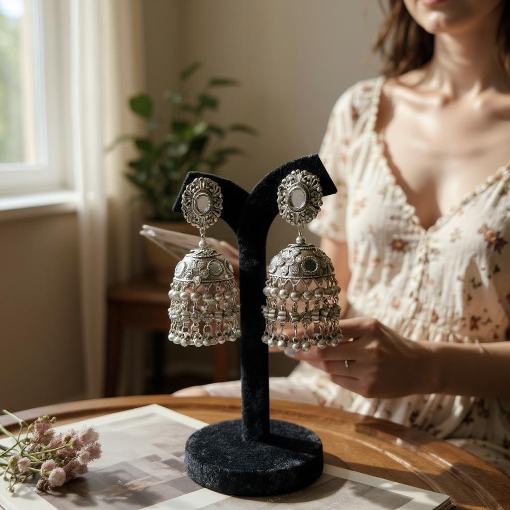 Dajinn Noor-E-Zaiba Collection Traditional Oxidised Silver-Plated Ethnic Earrings with Pearls for Women & Girls (Mehfil Mirror Jhumka)