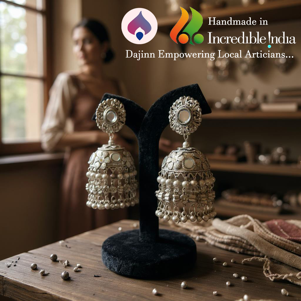 Enhance your ethnic charm with Dajinn’s Noor-E-Zaiba Collection, featuring exquisitely crafted oxidised silver-plated earrings adorned with delicate pearl drops. Designed for women who love traditional yet statement jewelry, these earrings pair perfectly with sarees, lehengas, anarkalis, and Indo-fusion outfits. Lightweight yet bold, they are ideal for weddings, festive occasions, parties, or as a thoughtful gift for loved ones. Handcrafted with intricate detailing, every pair reflects timeless Indian artistry blended with modern elegance – making them a must-have addition to your jewelry collection.