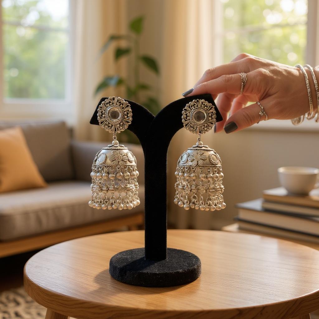- 🌸 Premium Design – Handcrafted oxidised silver earrings with intricate detailing & pearl accents 🤍