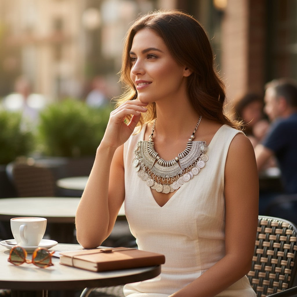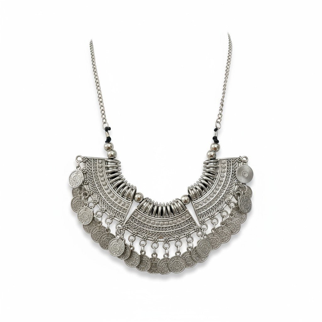 Dajinn Oxidized Silver Coin Necklace – Handcrafted Statement Heritage Jewelry