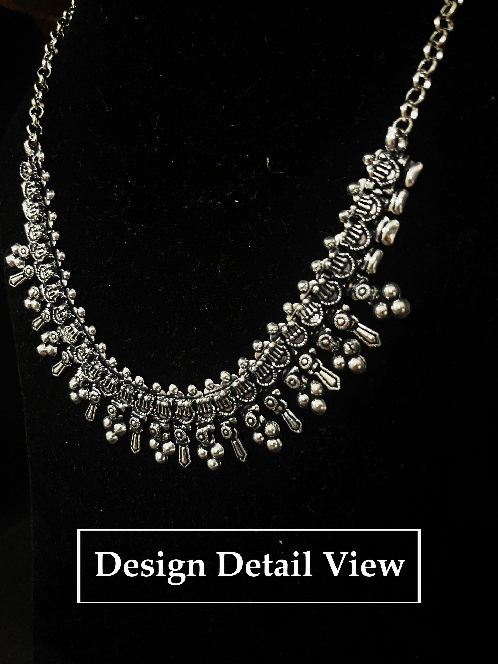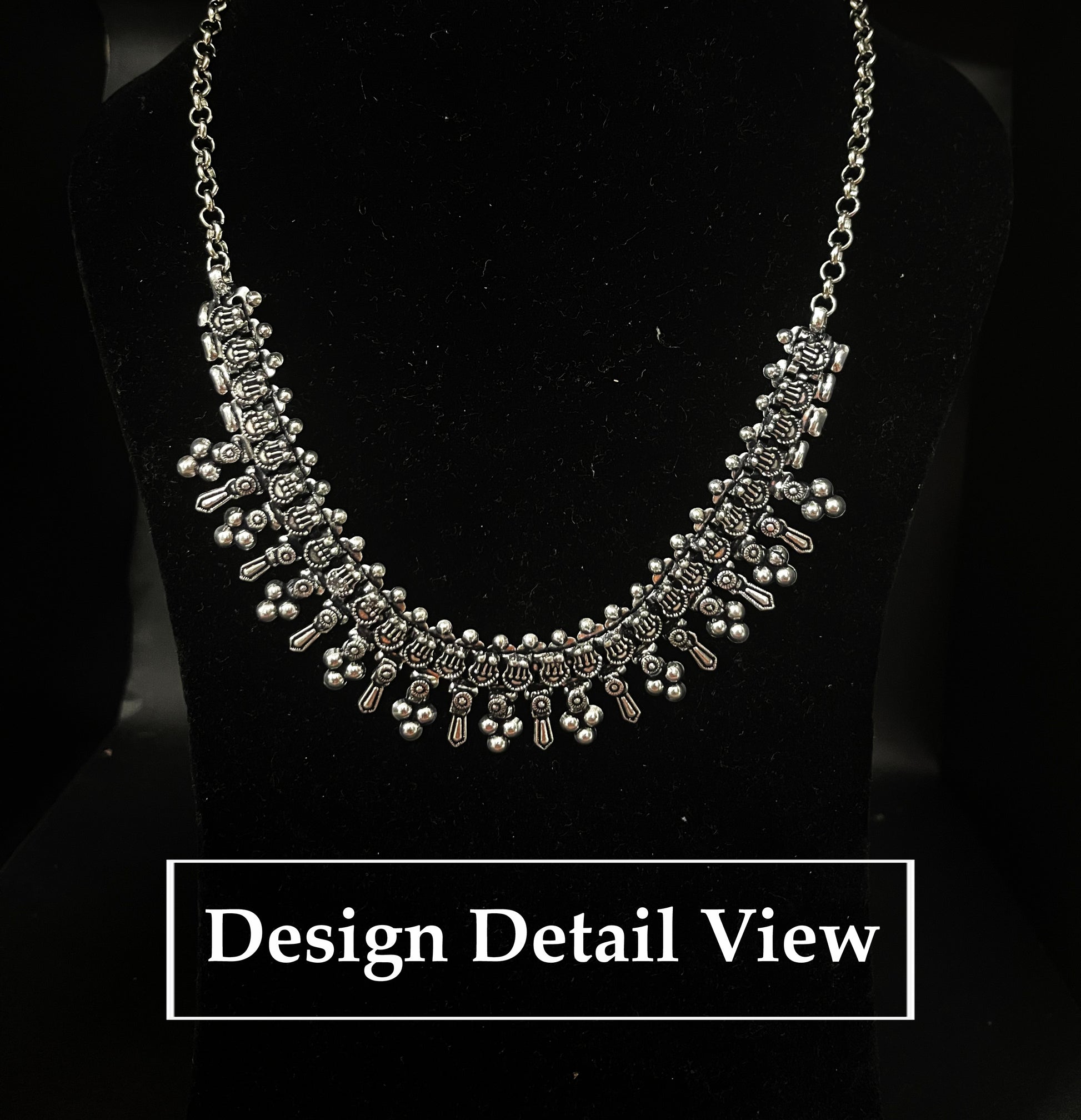 Dajinn Oxidized Silver Dangling Bead Choker Necklace – Handcrafted Ethnic Ornamented Jewelry