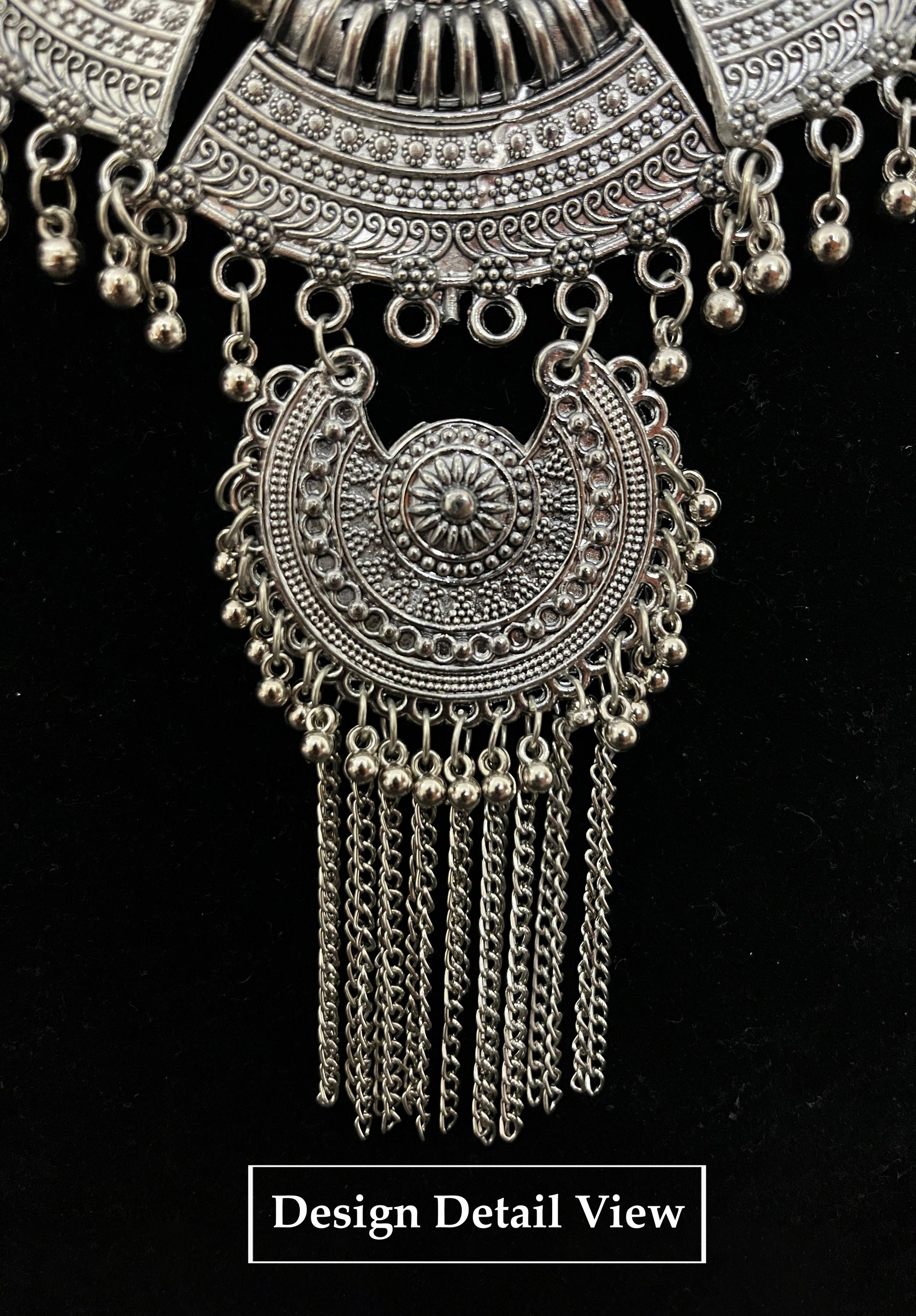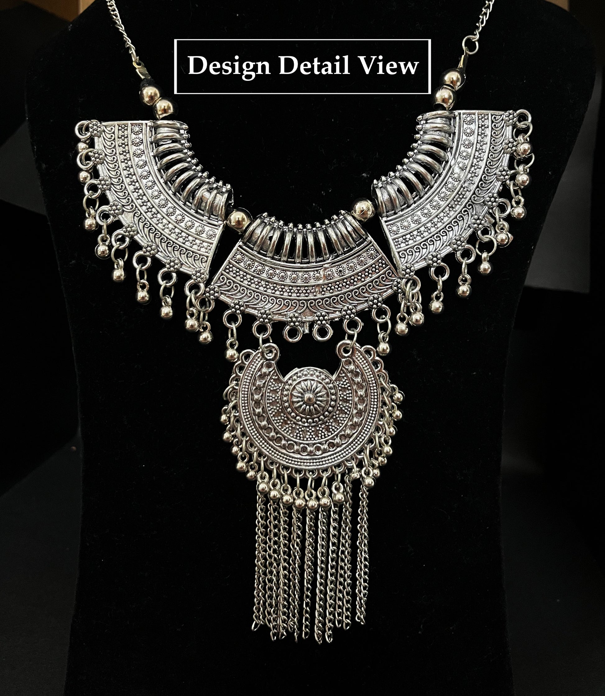 Dajinn Oxidized Silver Heritage Necklace – Handcrafted Fringe & Statement Pendant Design