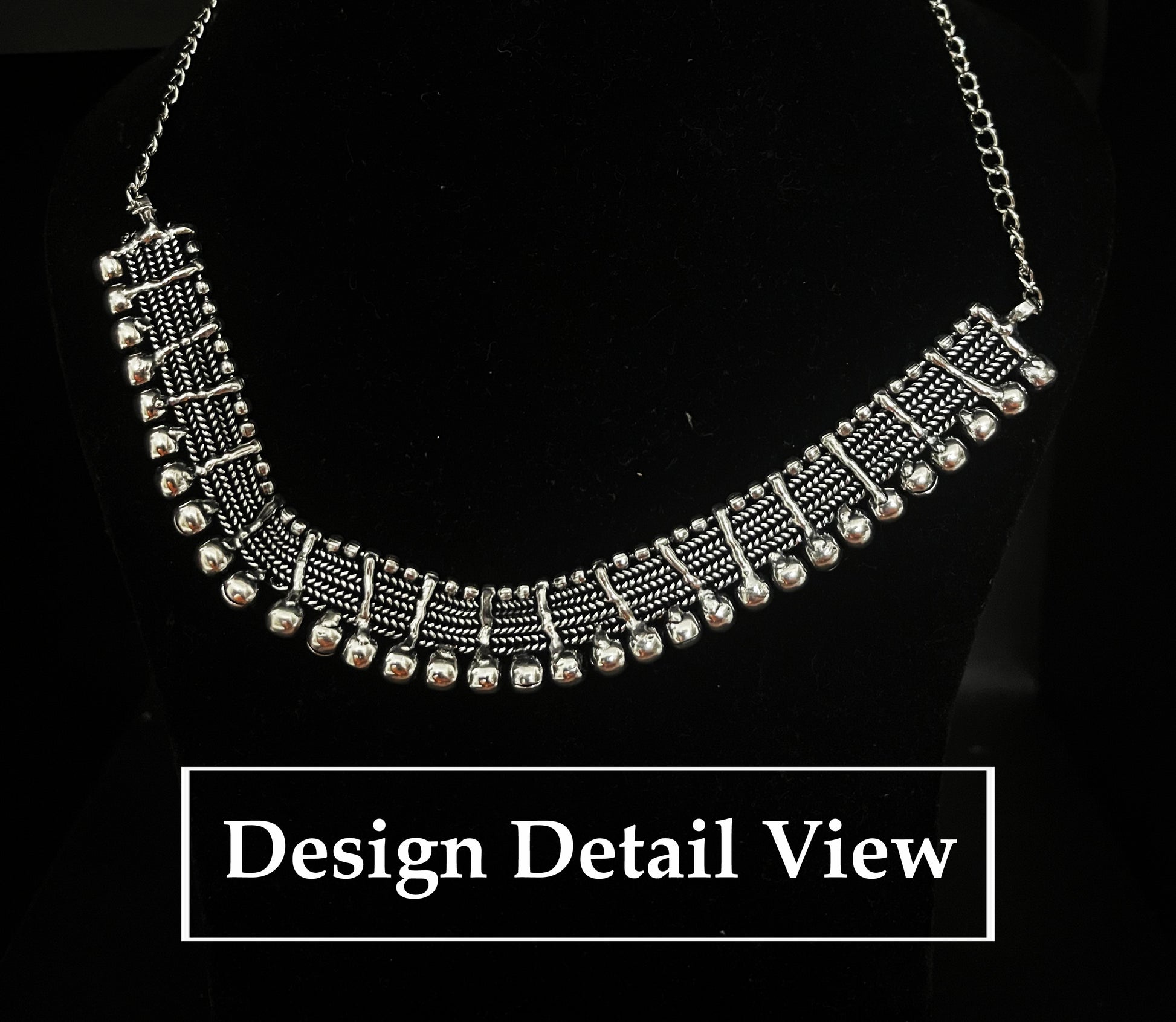 Dajinn Oxidized Silver Threadwork Choker Necklace – Handcrafted Minimal Layered Ball Jewelry