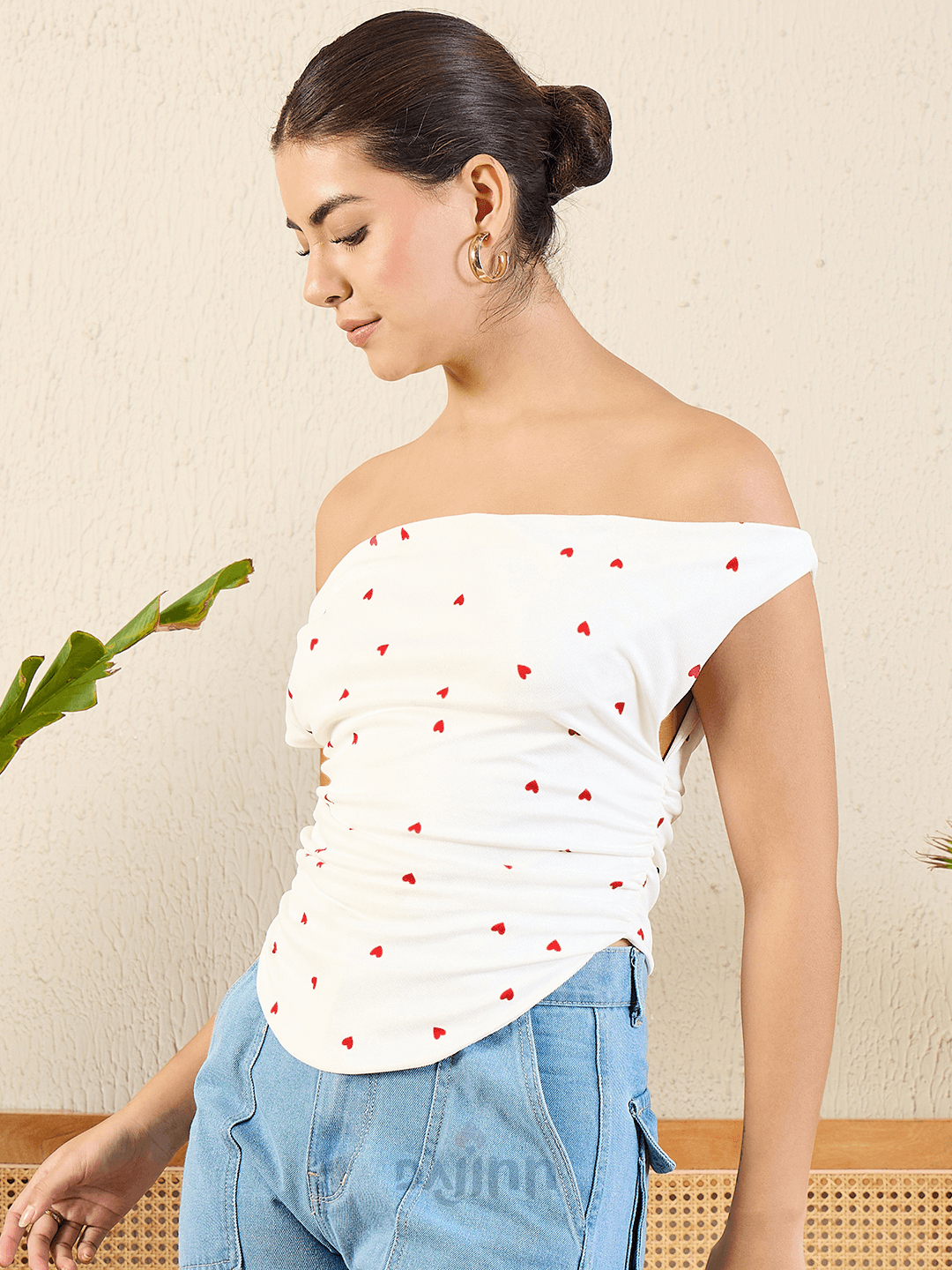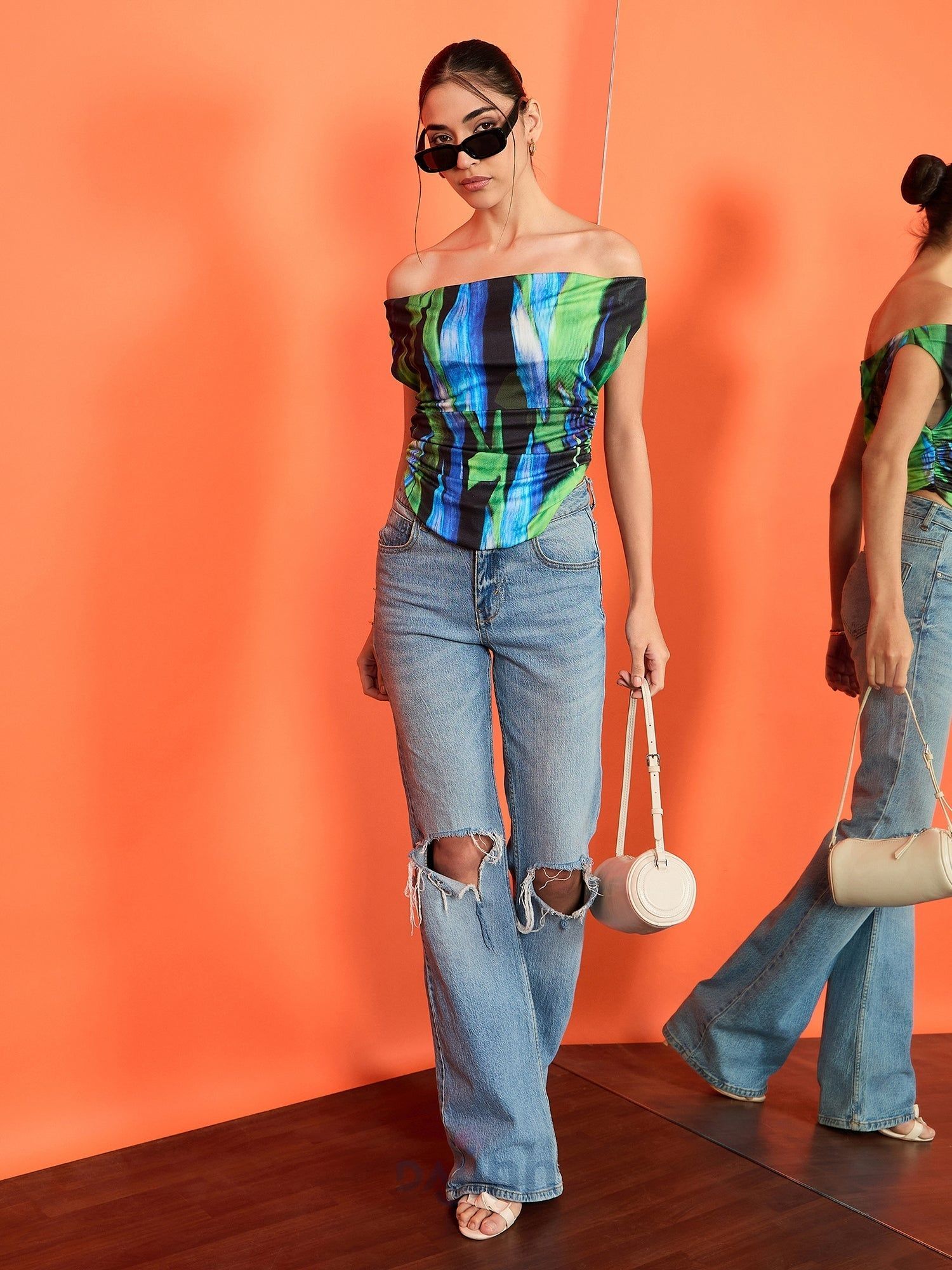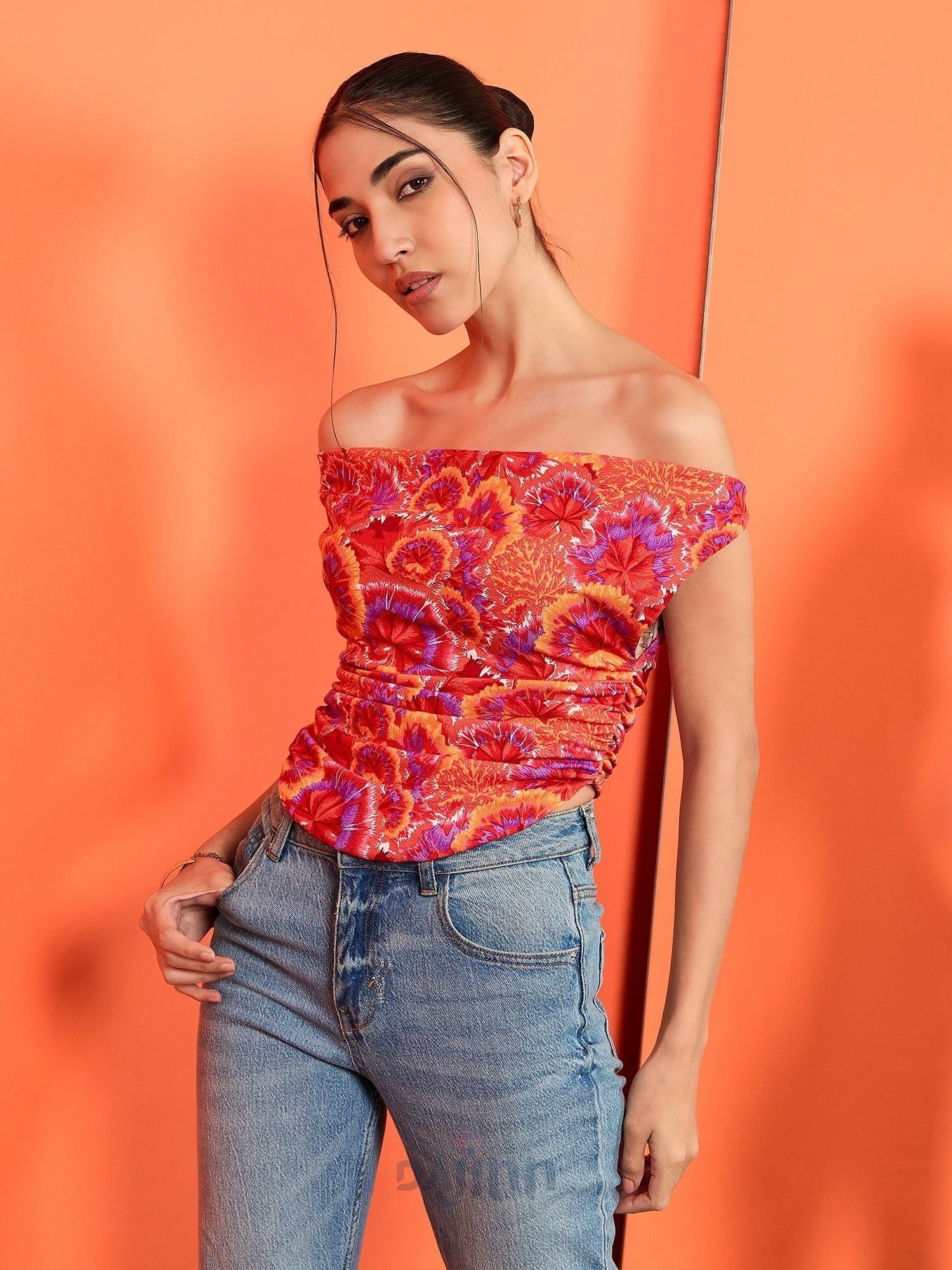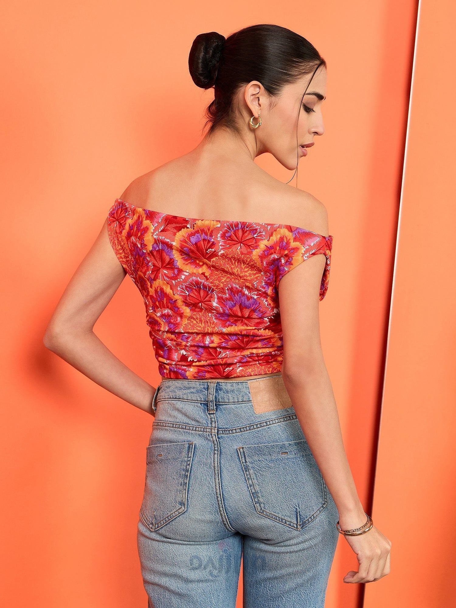 Dajinn Printed Cotton Stretchable Draped Crop Top