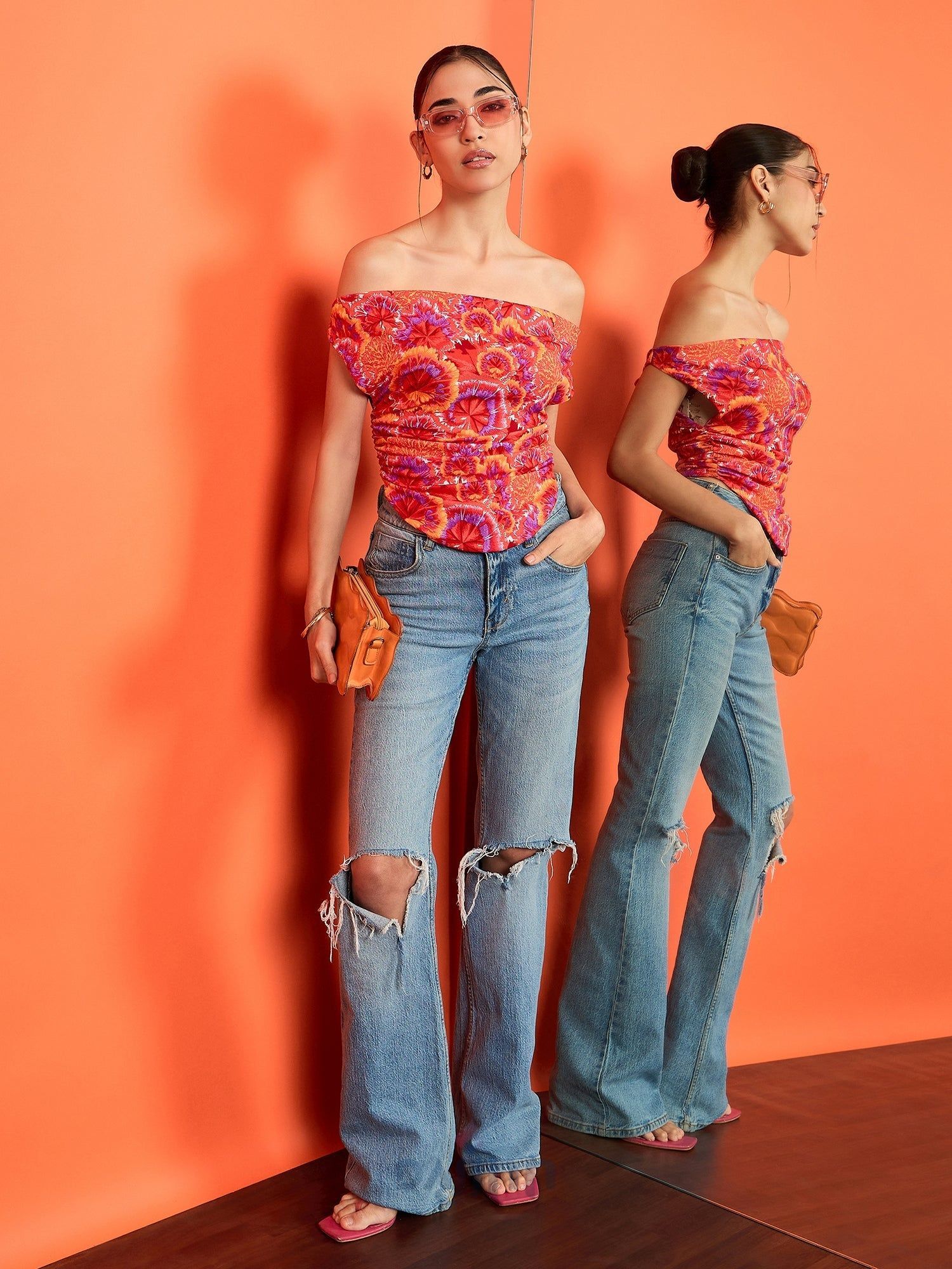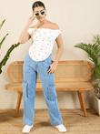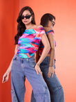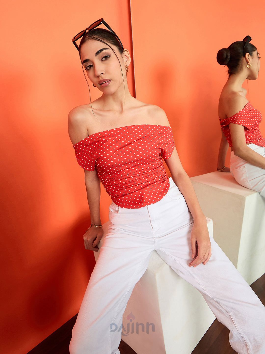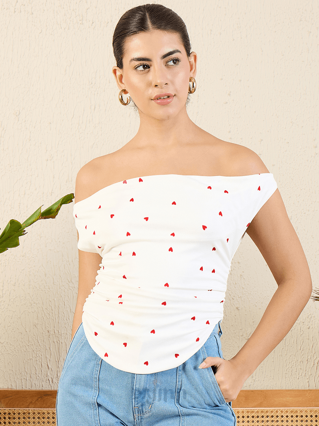 Dajinn Printed Cotton Stretchable Draped Crop Top
