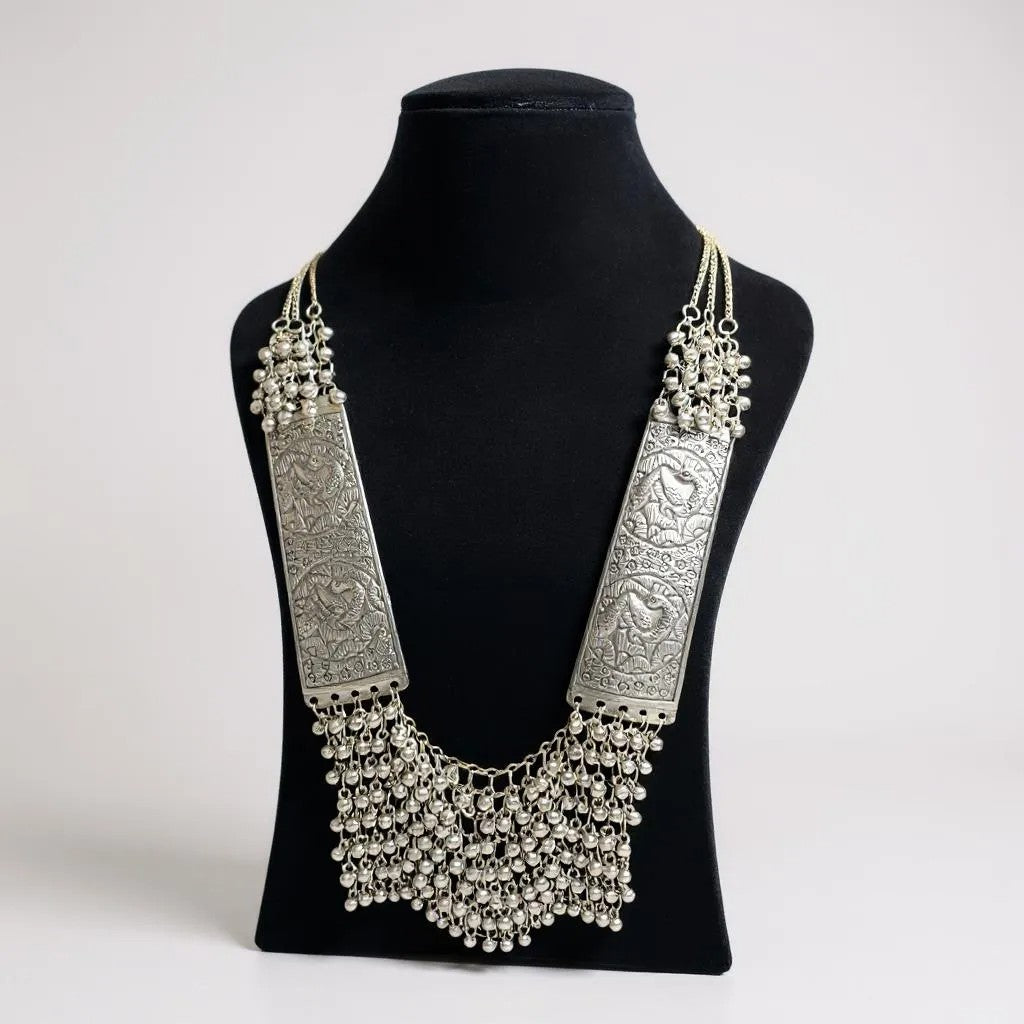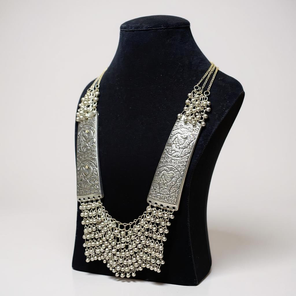 Dajinn Rajnartana Collection Traditional Oxidized Brass Ethnic Necklace for Women and Girls Antique Boho Tribal Jewelry for Weddings and Festivals - Nritya Ghungroo Set