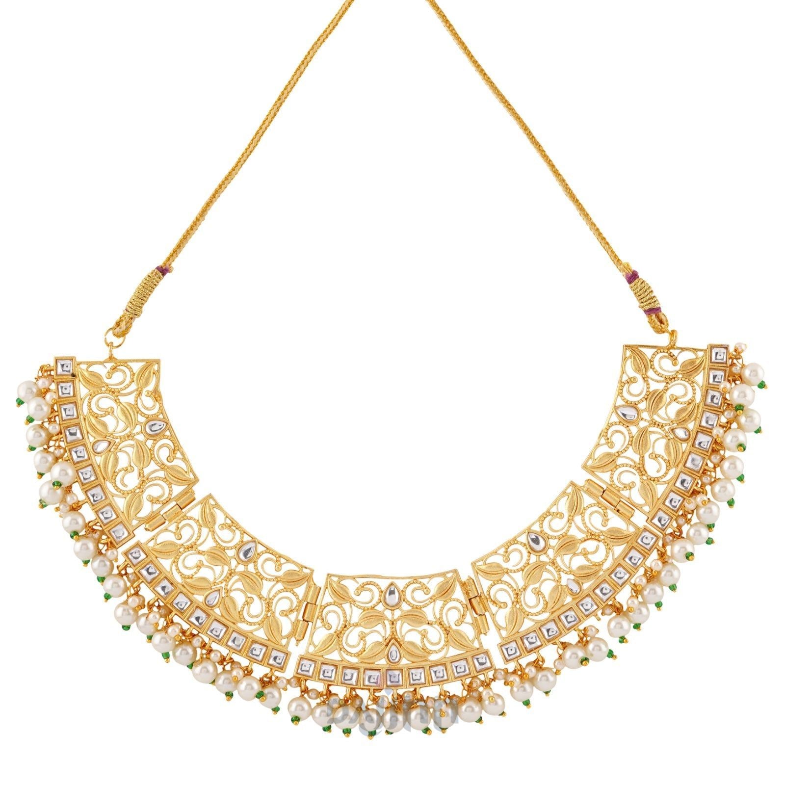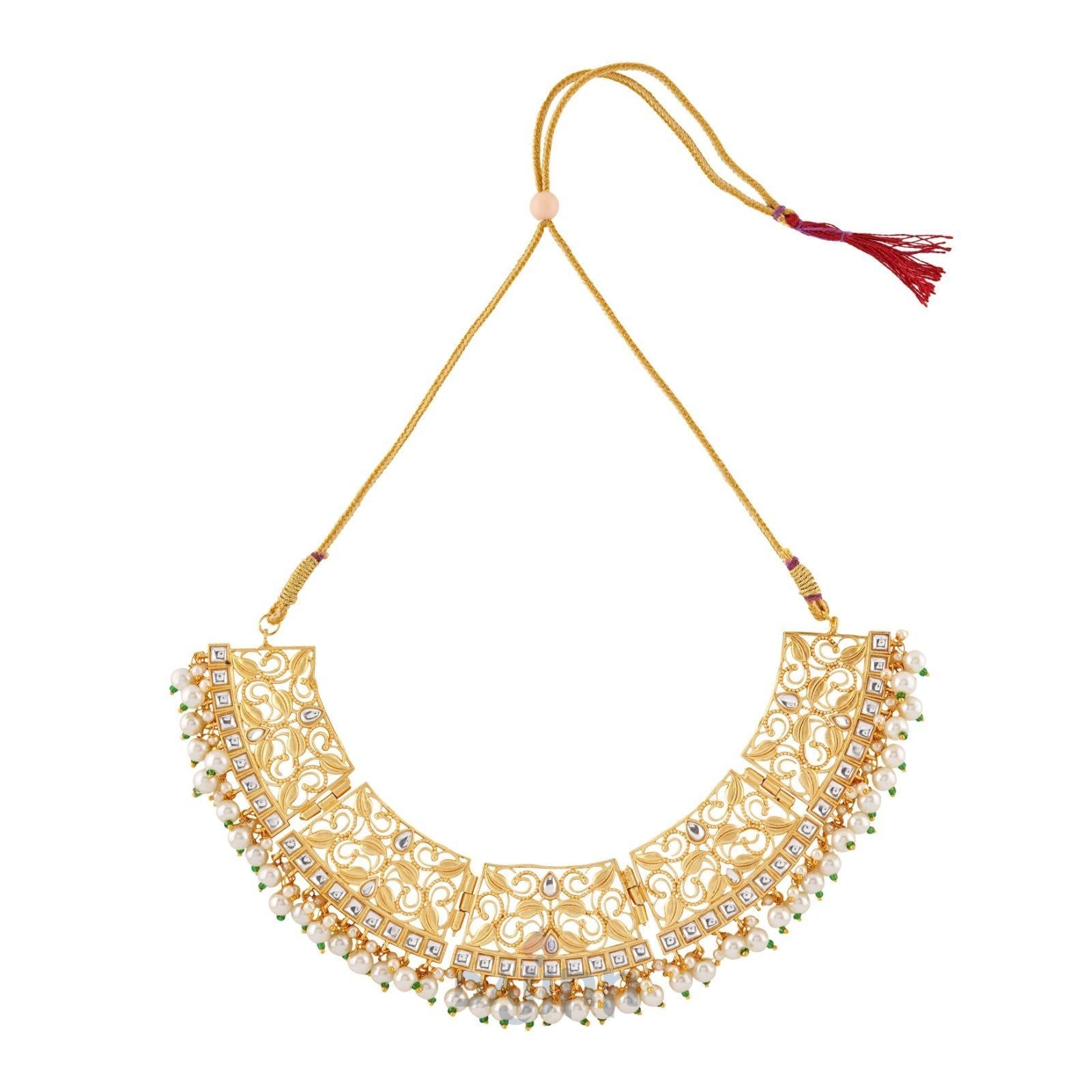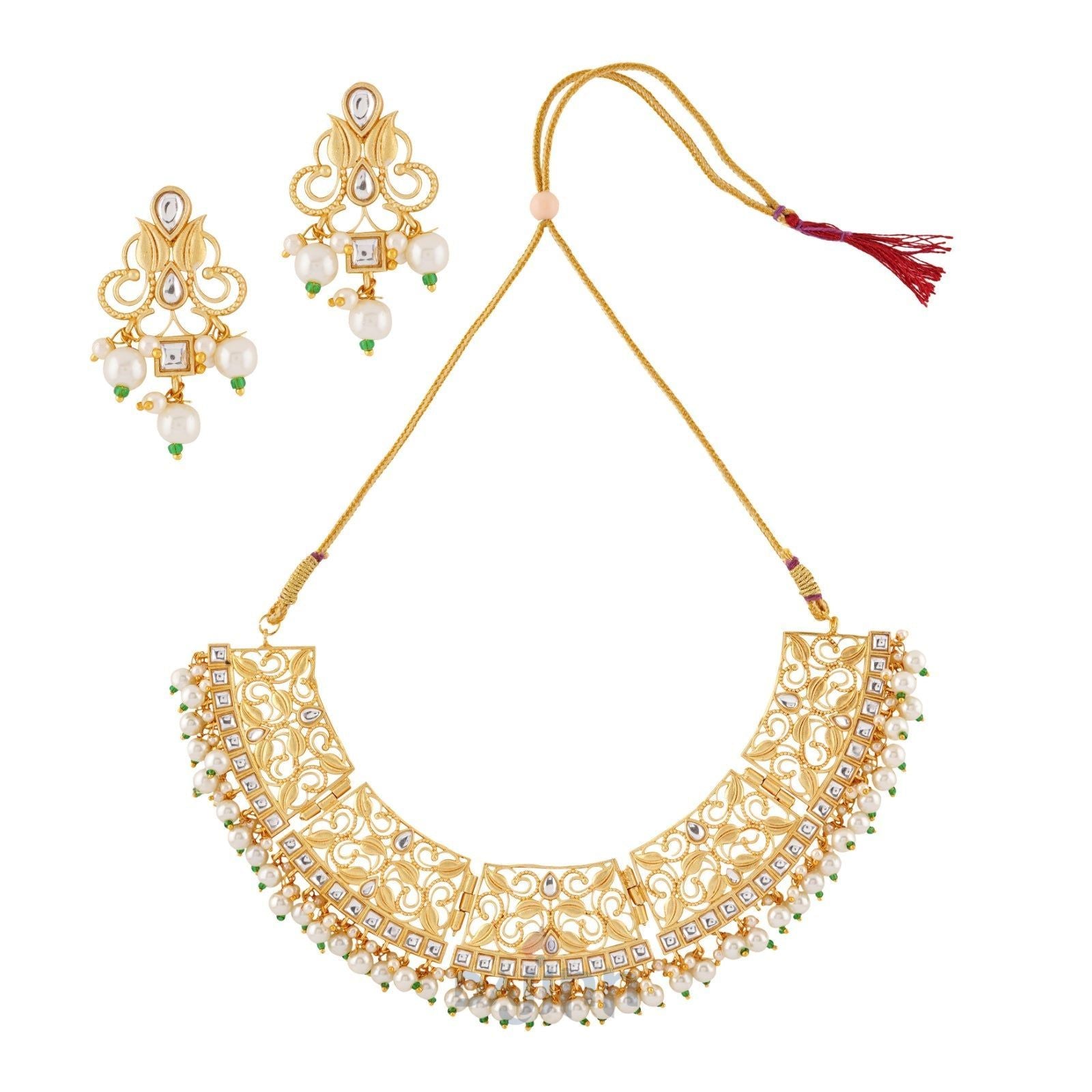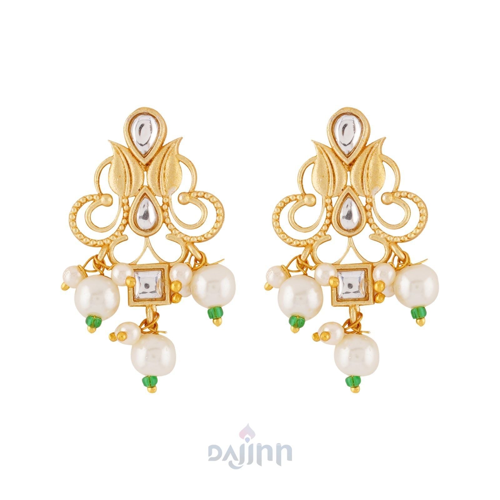 Step into your Desi Queen persona with our Dajinn Revika pearl and gold necklace and earring set, exuding regal charm with intricate detailing; a perfect gift to empower your fellow queen and embrace boho regency together.