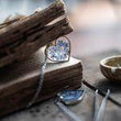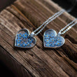 A perfect way to express your cliche love for your dear one with this heart shaped pendant encasing Forget-me-nots..